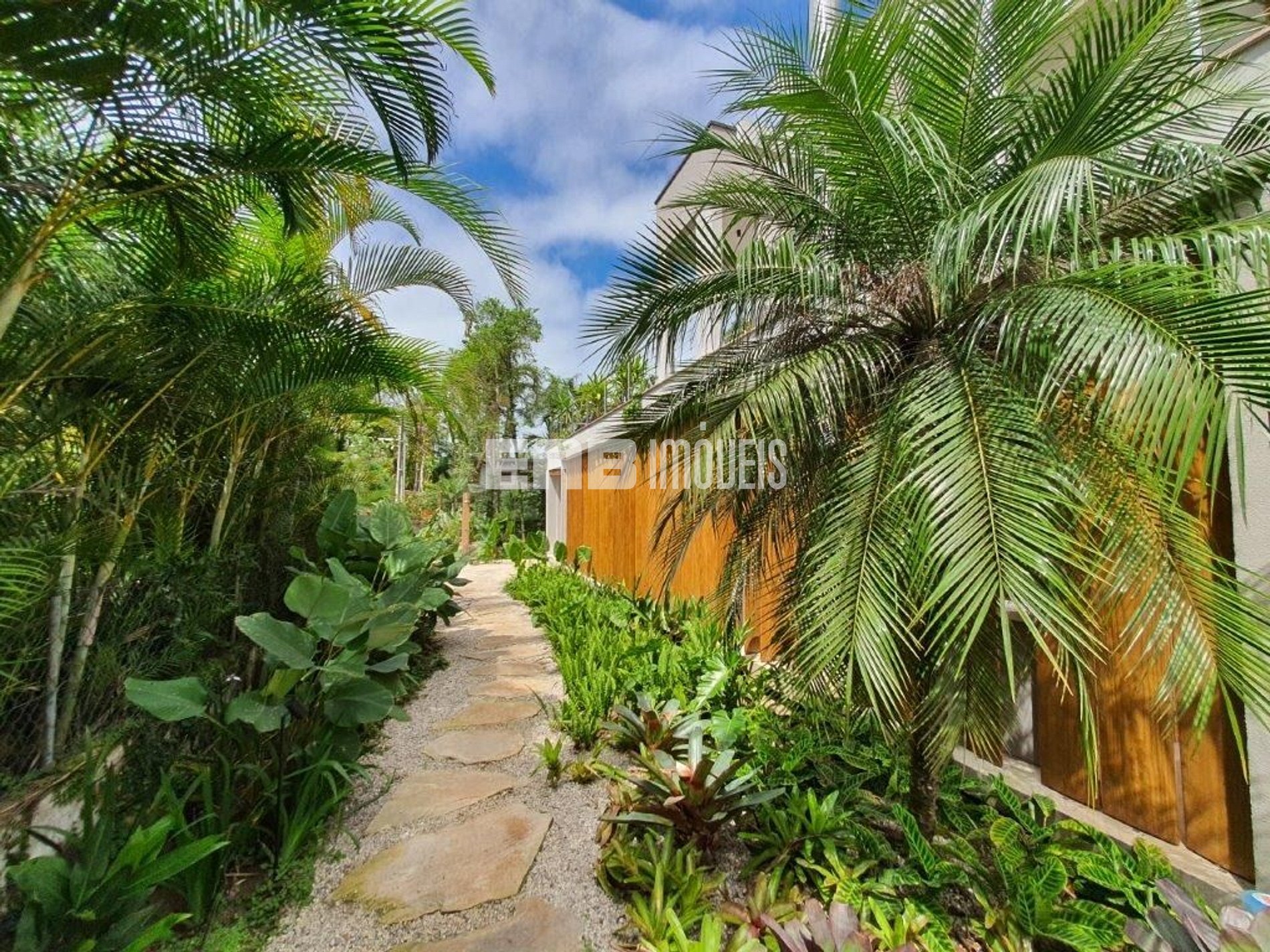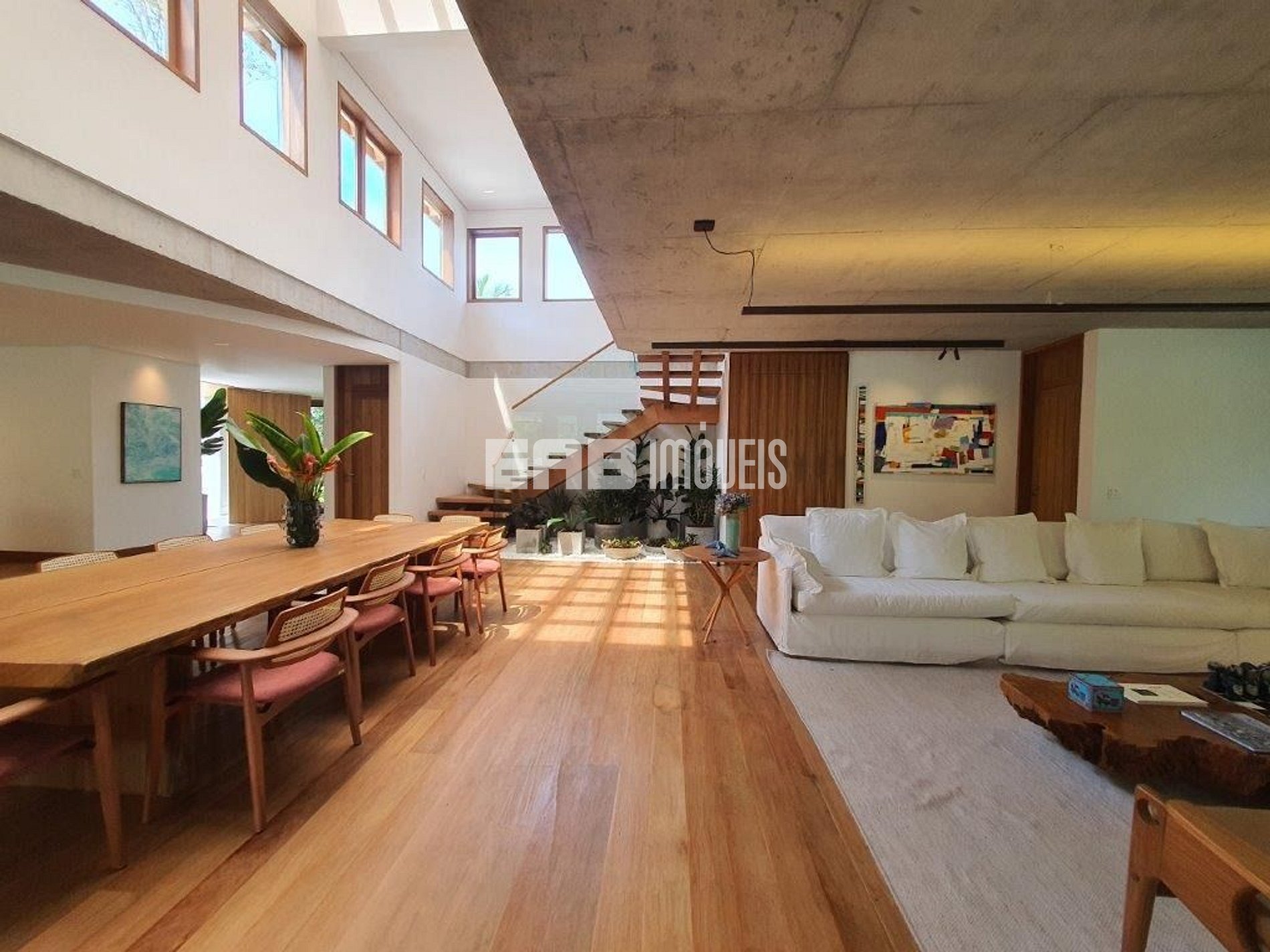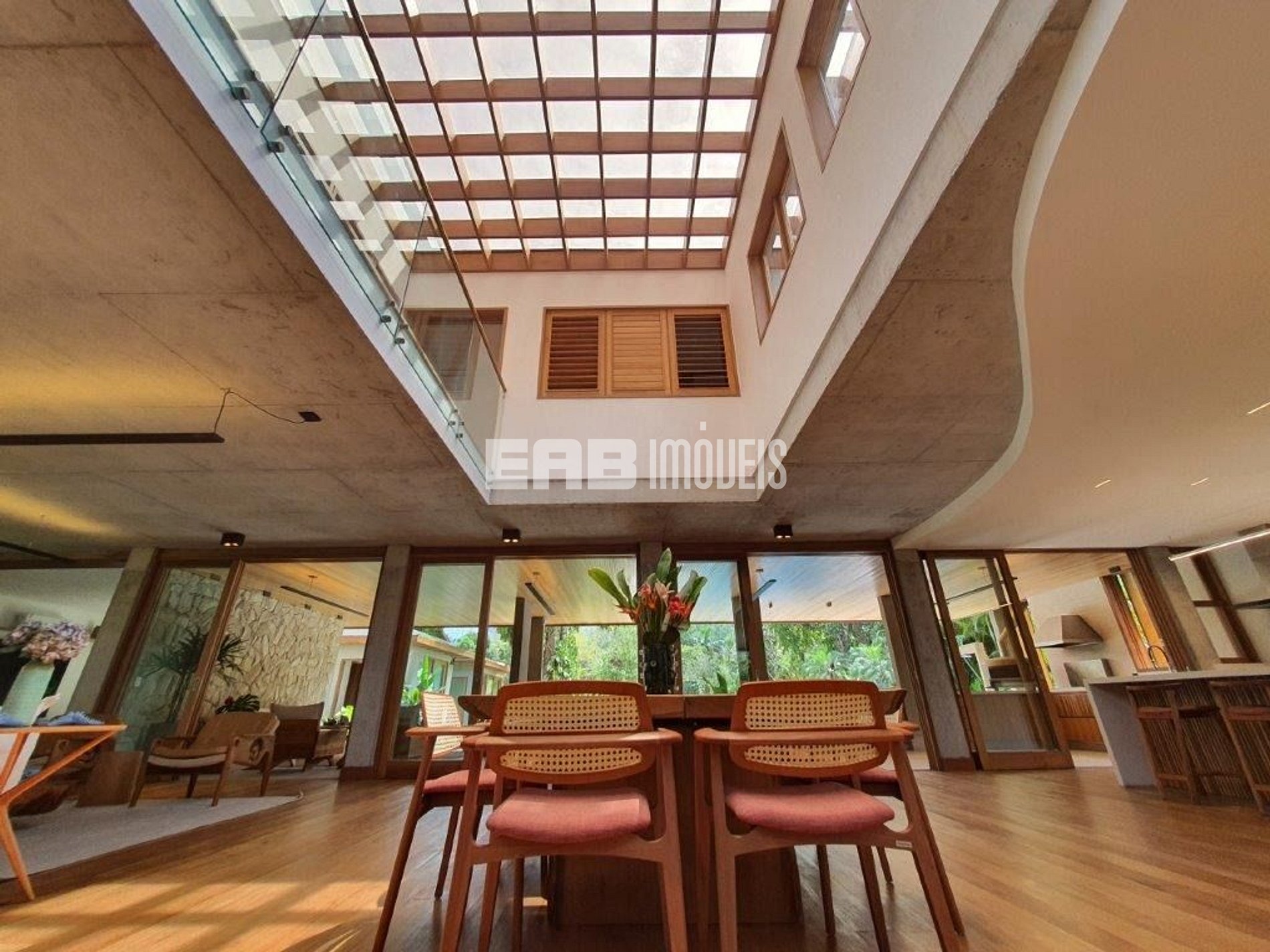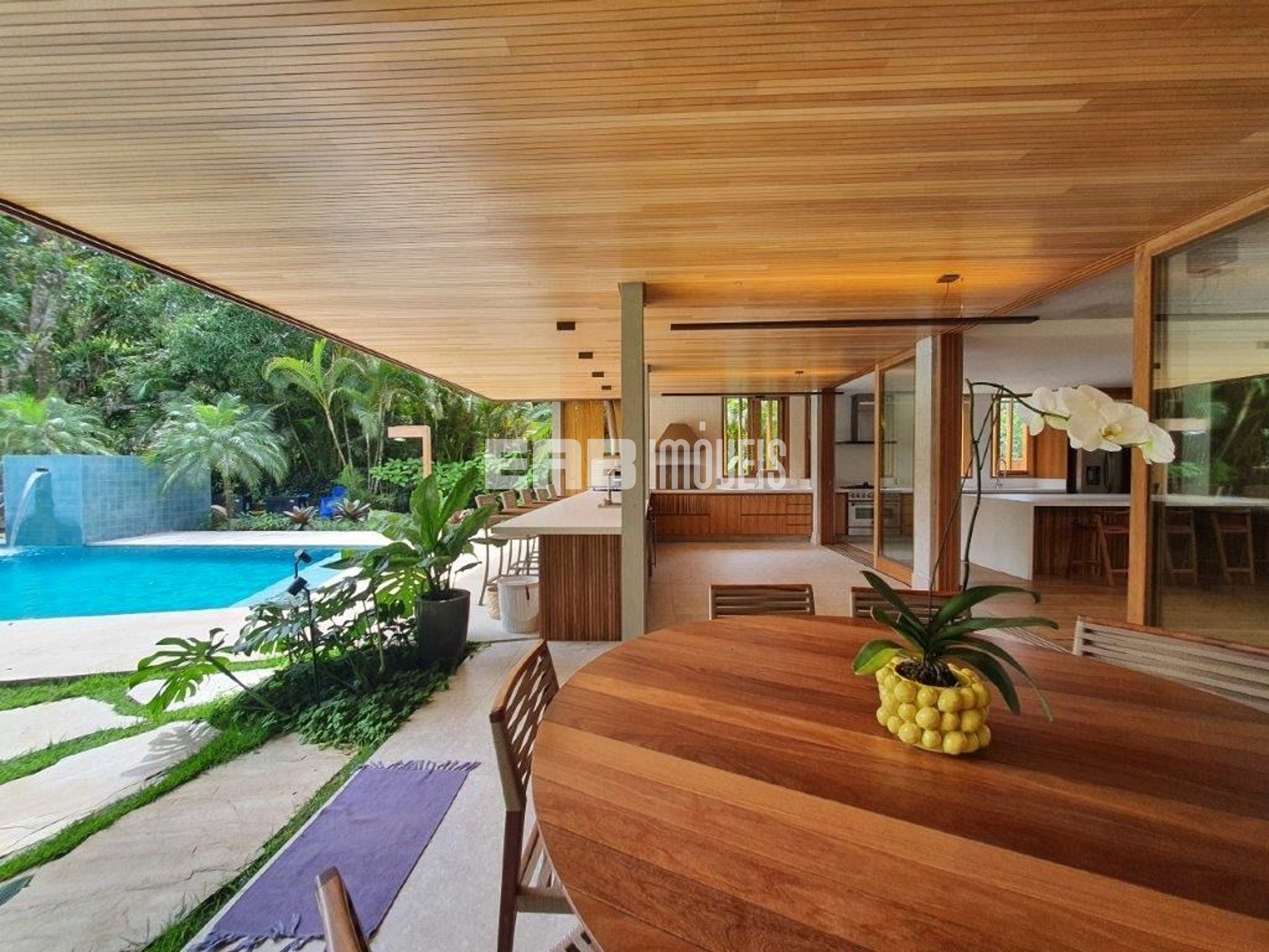 Os ambientes amplos e integrados se conectam a um jardim com paisagismo exuberante e decoração cheia de personalidade, proporcionando um espaço único para dias inesquecíveis a poucos passos do mar.