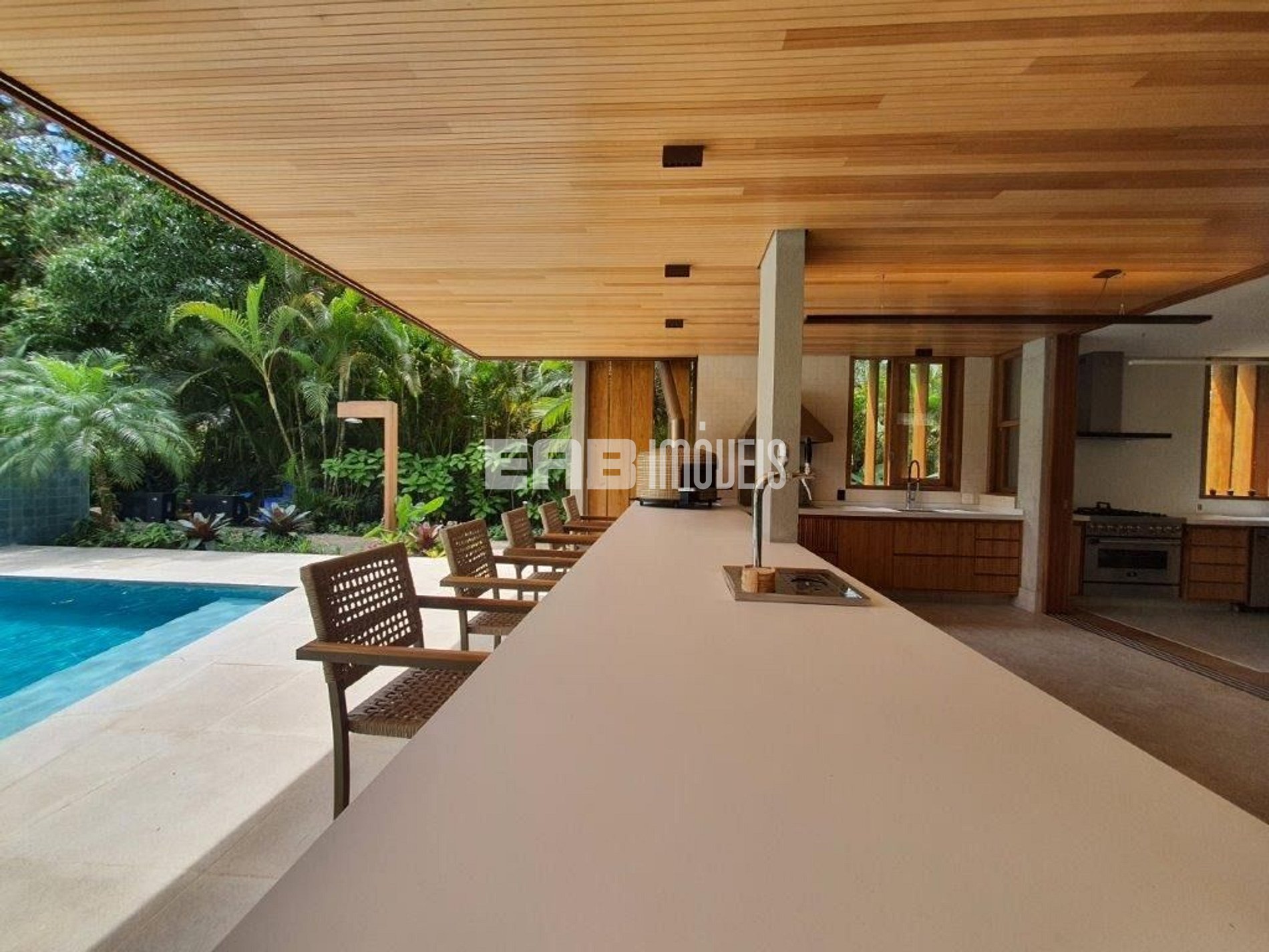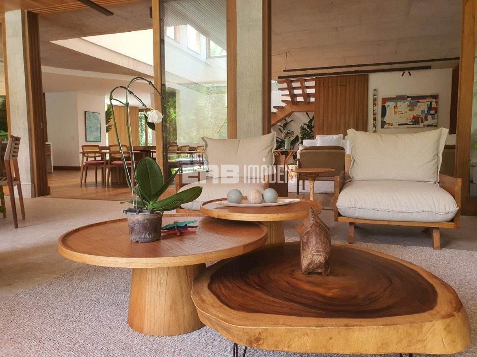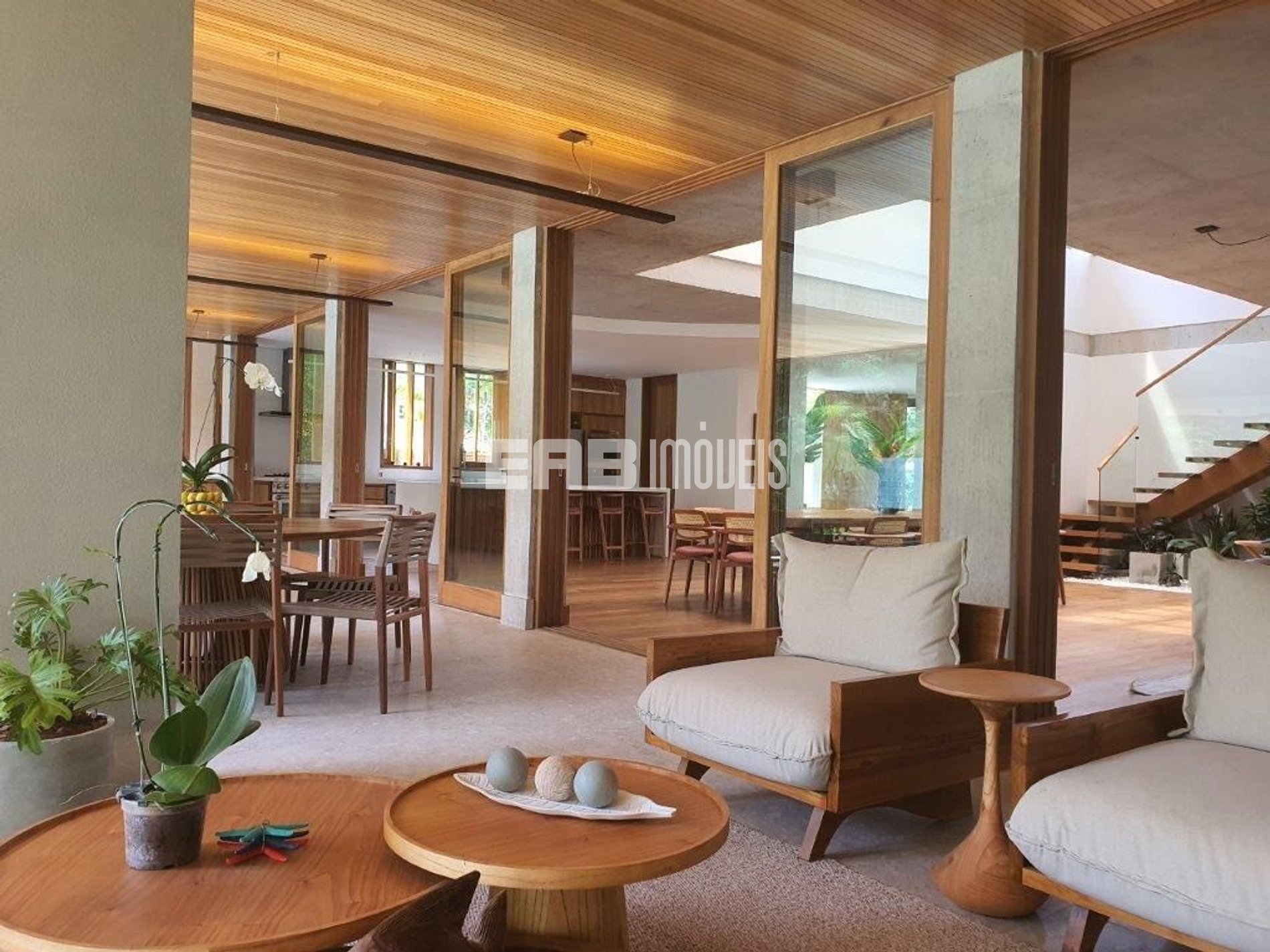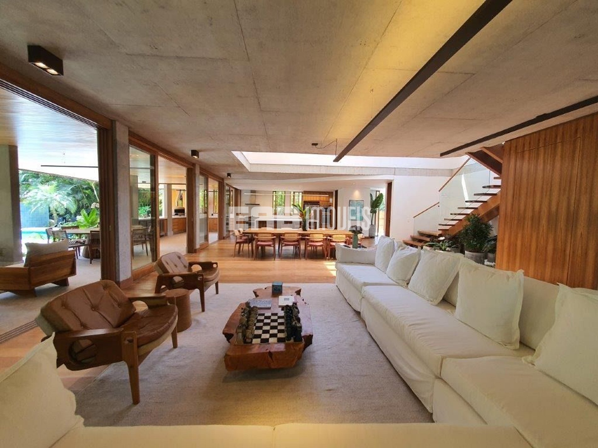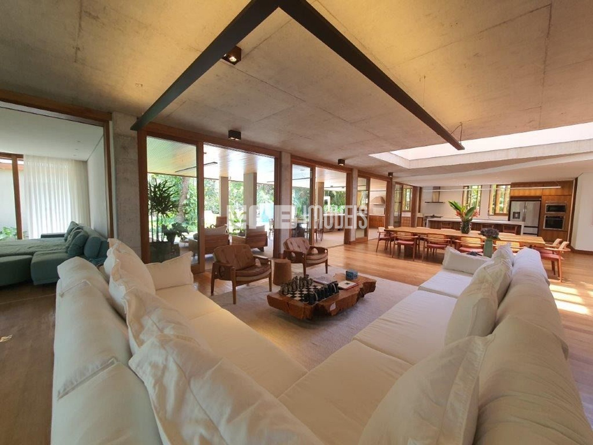 Os ambientes amplos e integrados se conectam a um jardim com paisagismo exuberante e decoração cheia de personalidade, proporcionando um espaço único para dias inesquecíveis a poucos passos do mar.