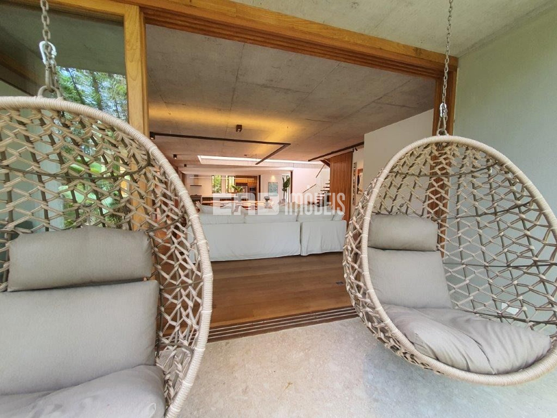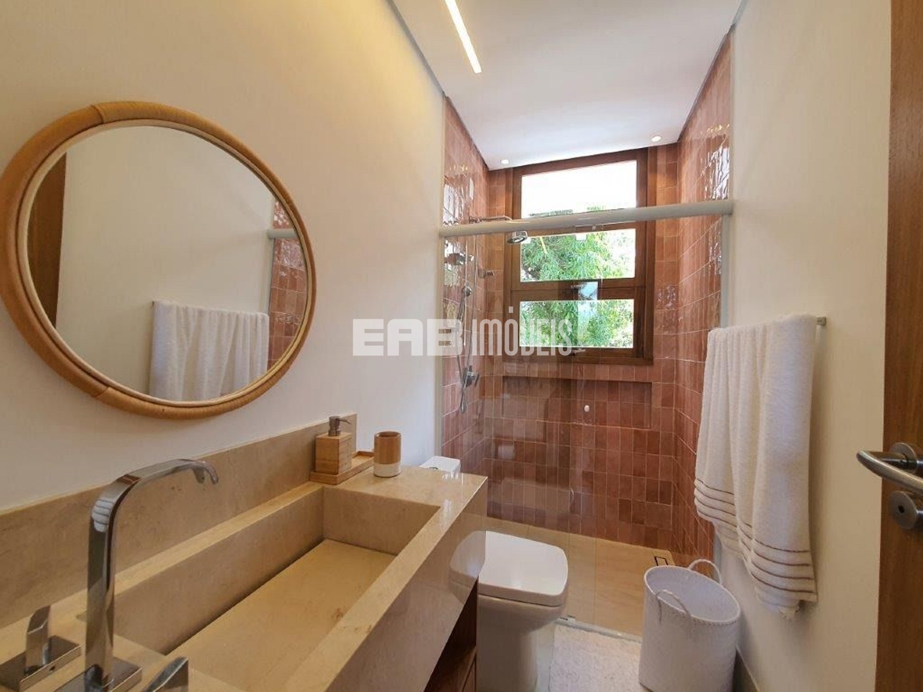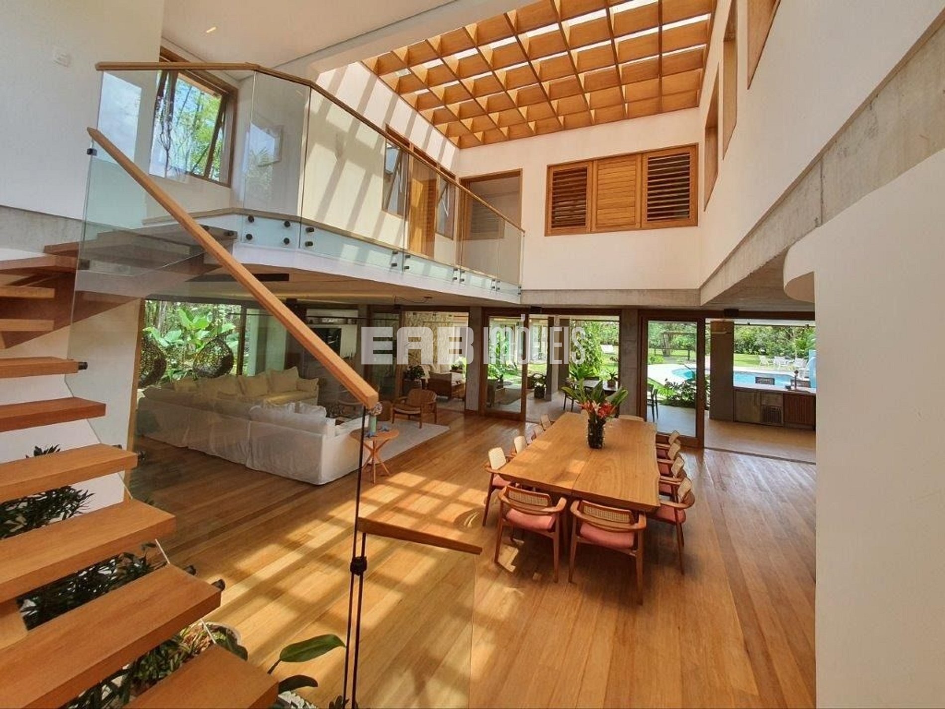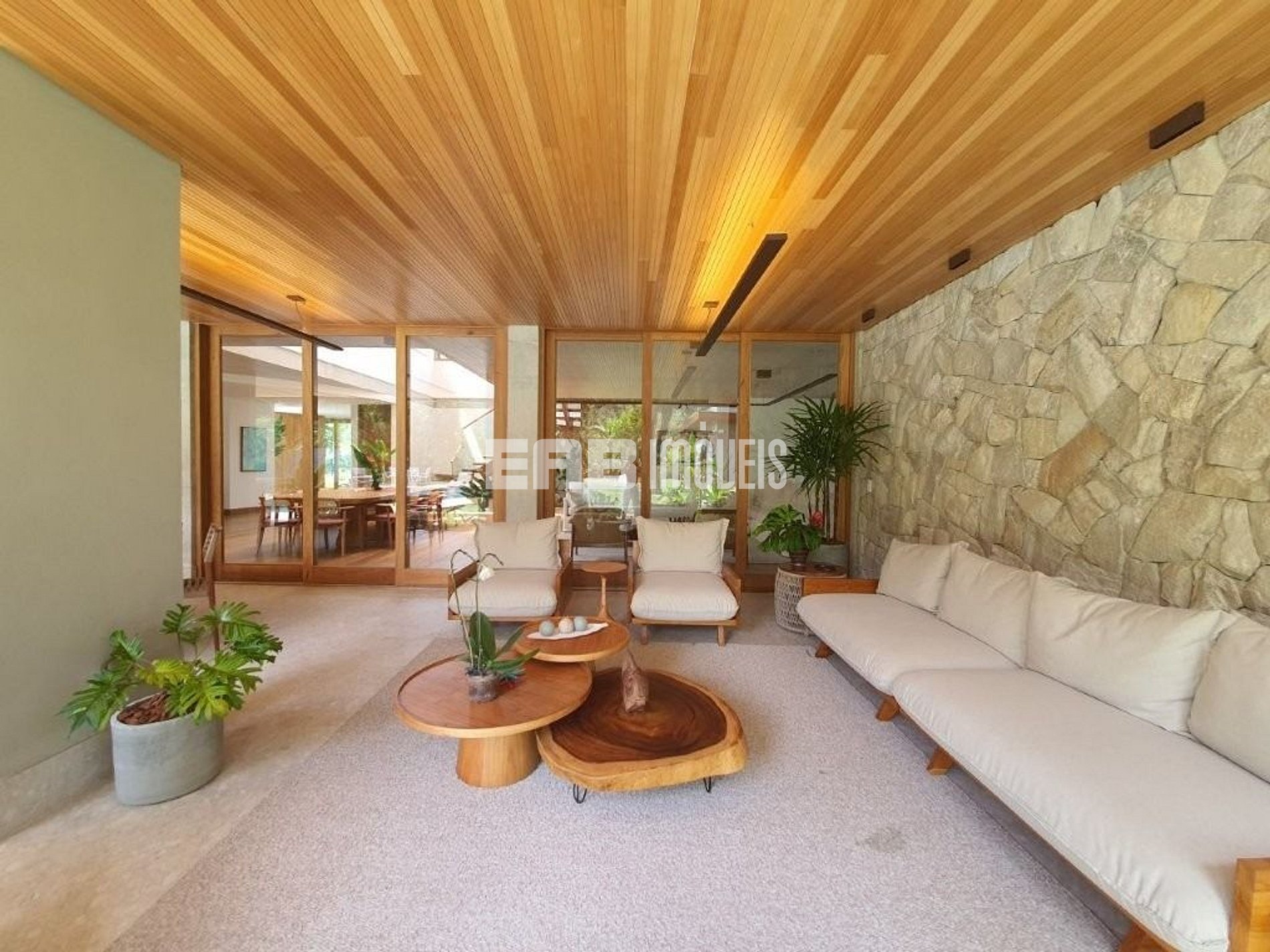 Os ambientes amplos e integrados se conectam a um jardim com paisagismo exuberante e decoração cheia de personalidade, proporcionando um espaço único para dias inesquecíveis a poucos passos do mar.