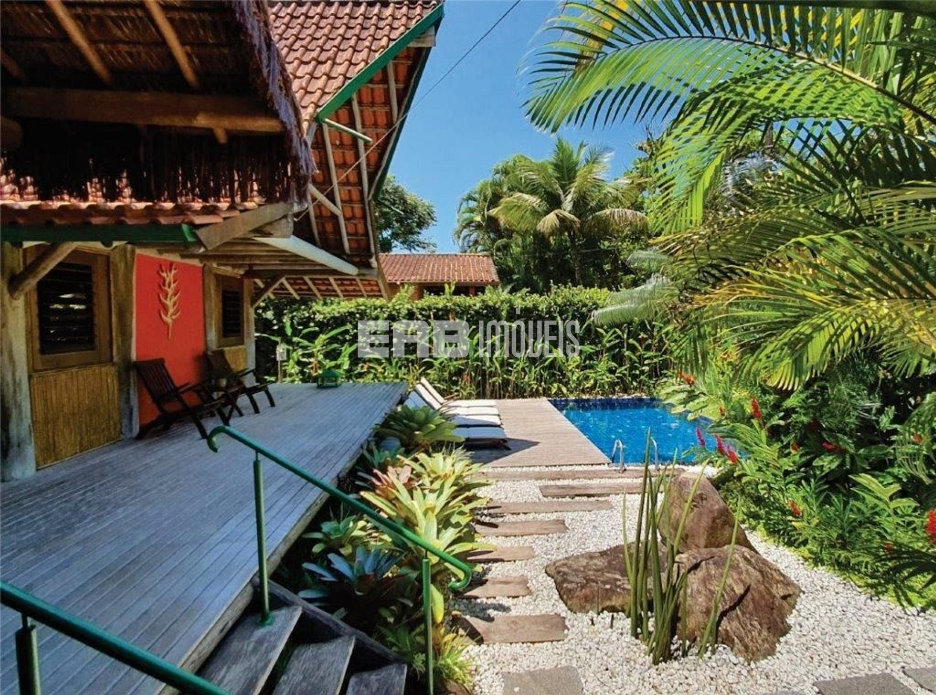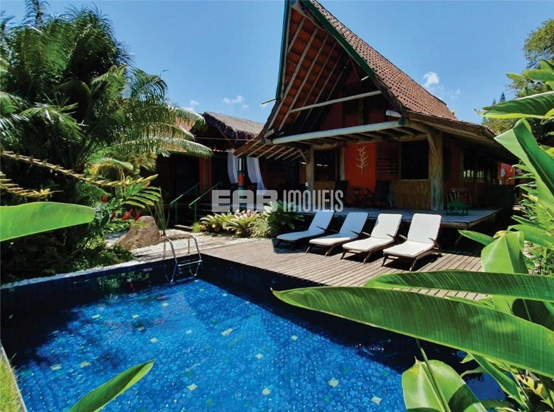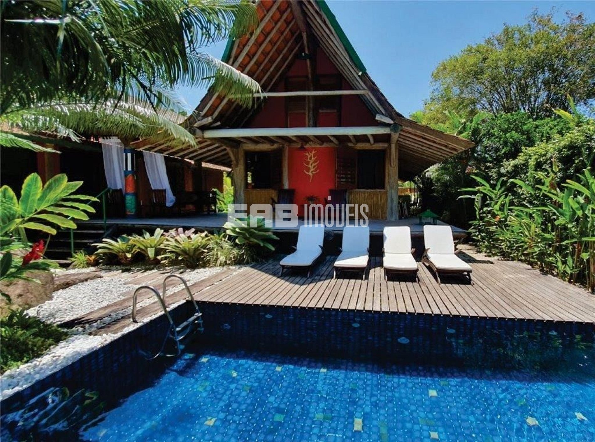 Com arquitetura típica do sudeste asiático, a casa é toda palafitada e distribui-se por dois bangalôs interligados por deck. Um verdadeiro recanto, a apenas 90m da praia de Itamambuca. Possui piscina com hidromassagem, rodeada por espreguiçadeiras com confortáveis almofadas e paisagismo tropical, que à noite ganha destaque devido à iluminação. Agradável espaço gourmet com churrasqueira. 4 suítes com ar condicionado.