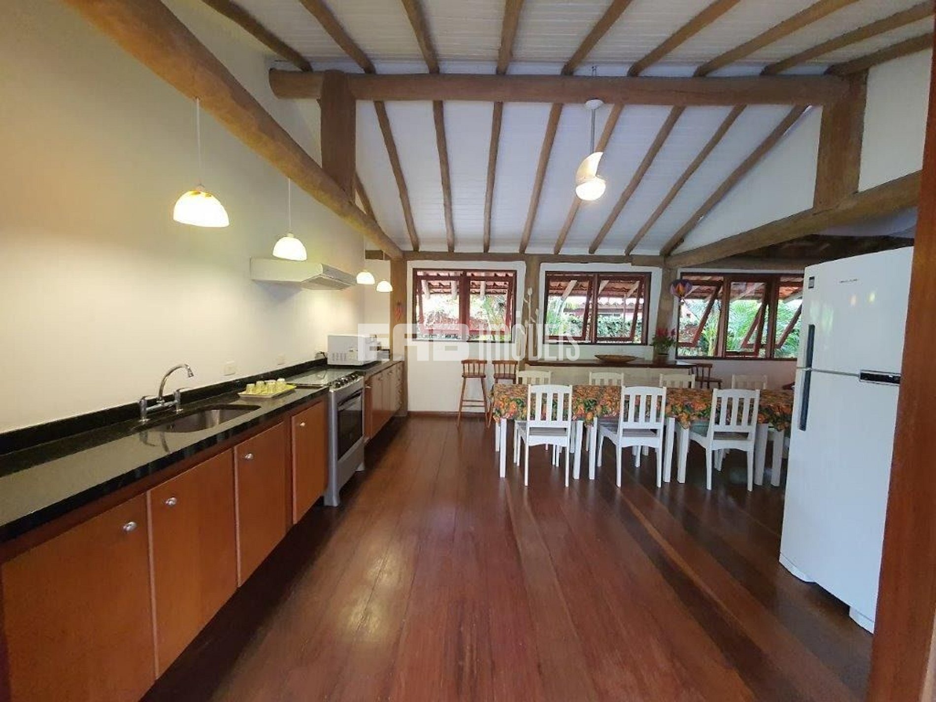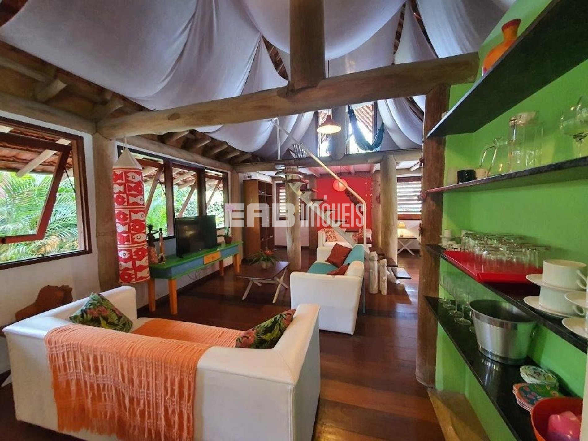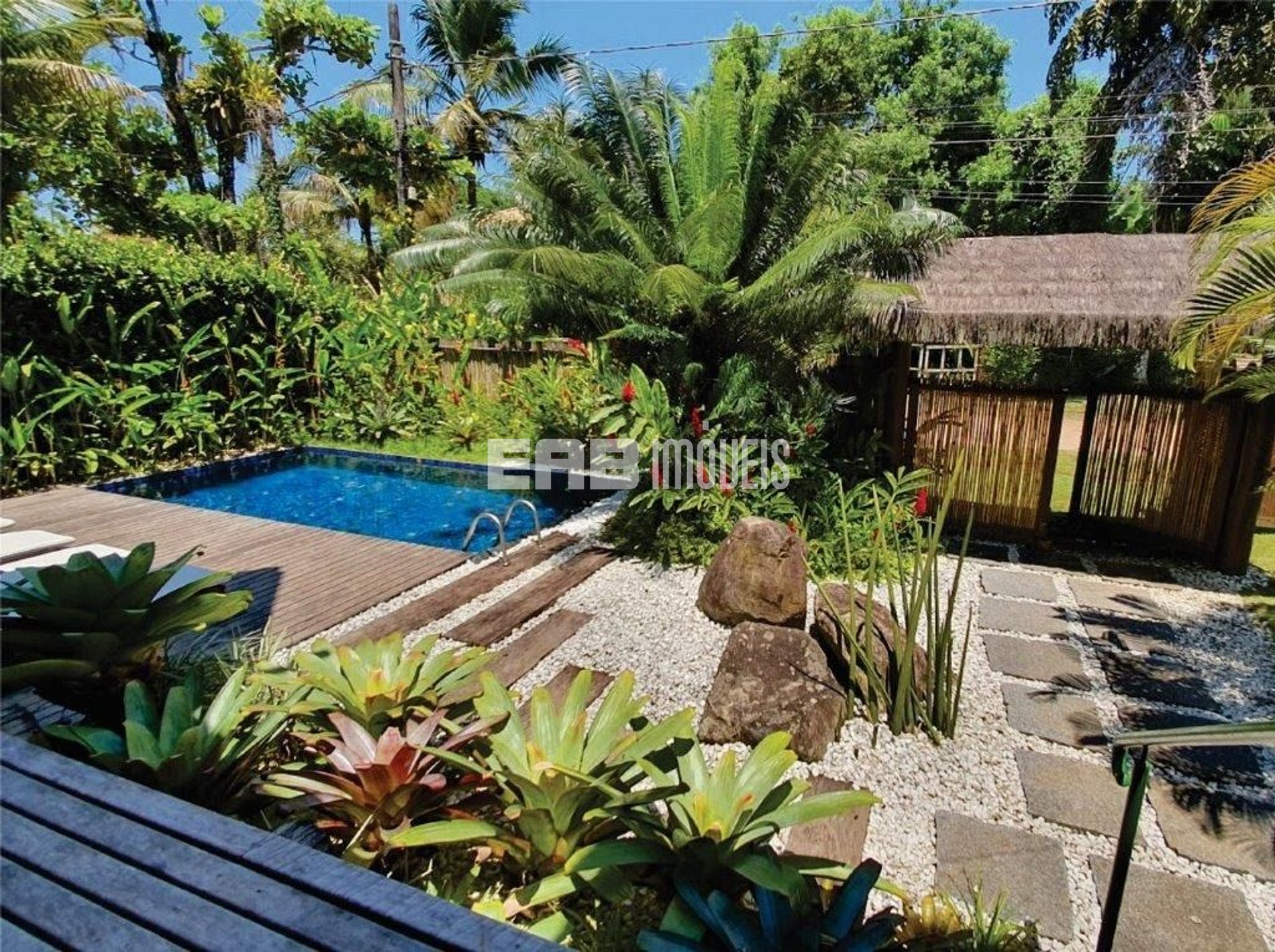Com arquitetura típica do sudeste asiático, a casa é toda palafitada e distribui-se por dois bangalôs interligados por deck. Um verdadeiro recanto, a apenas 90m da praia de Itamambuca. Possui piscina com hidromassagem, rodeada por espreguiçadeiras com confortáveis almofadas e paisagismo tropical, que à noite ganha destaque devido à iluminação. Agradável espaço gourmet com churrasqueira. 4 suítes com ar condicionado.
