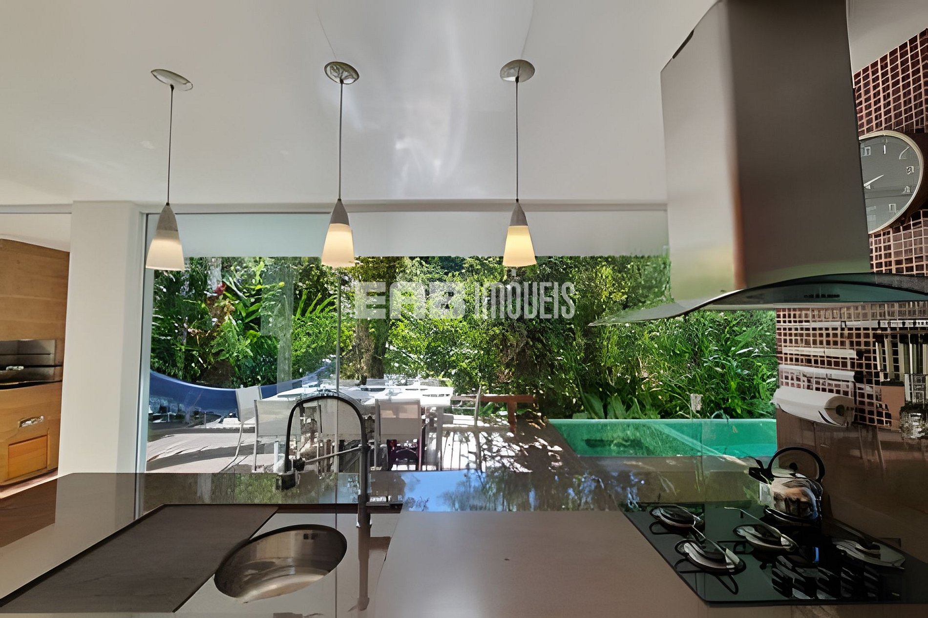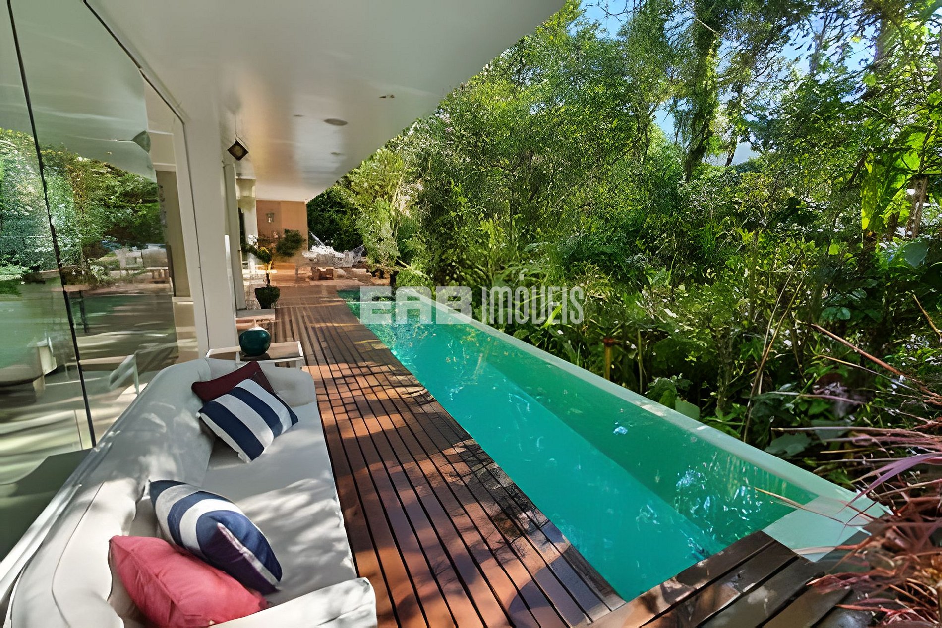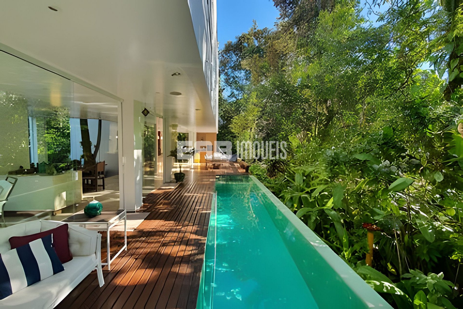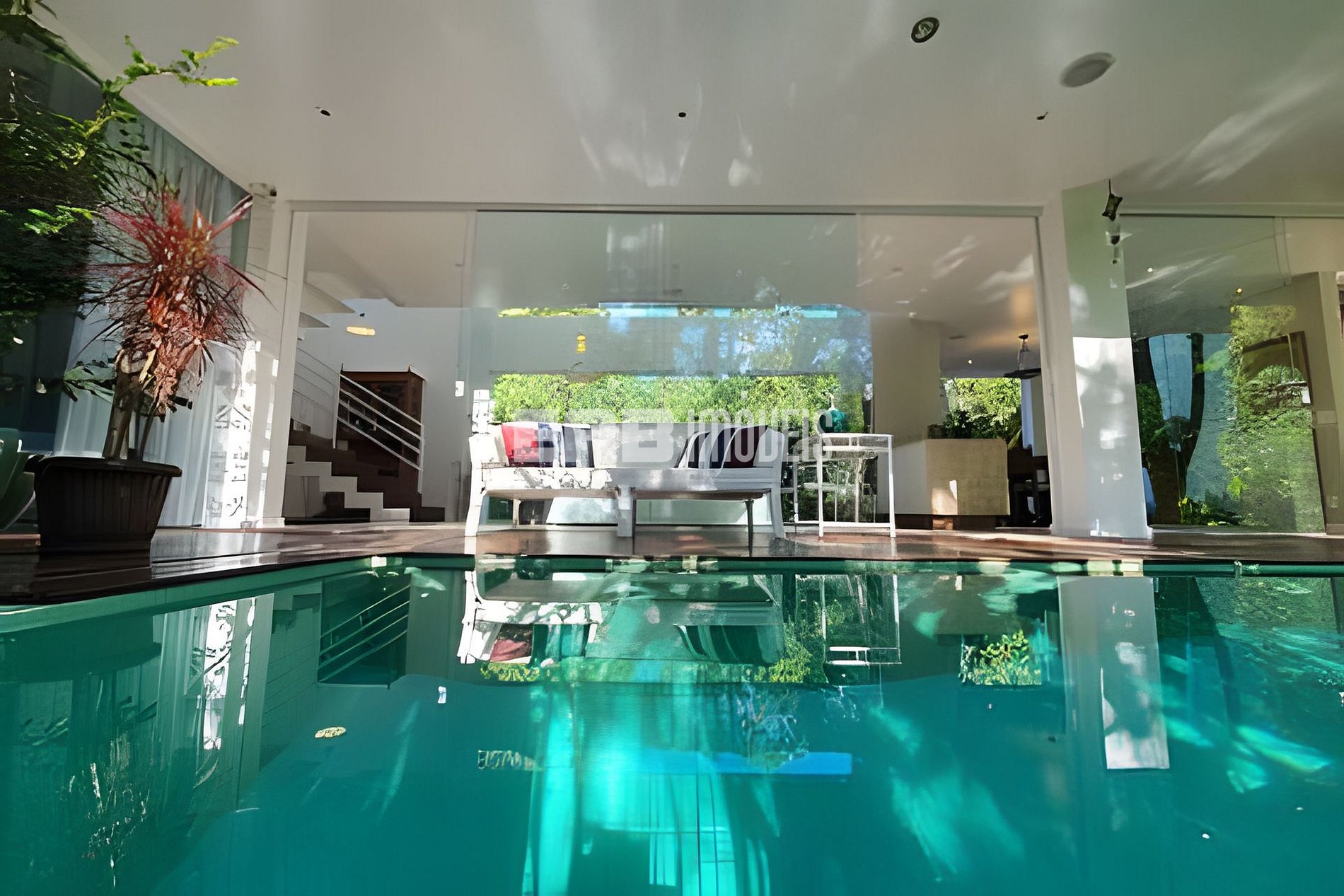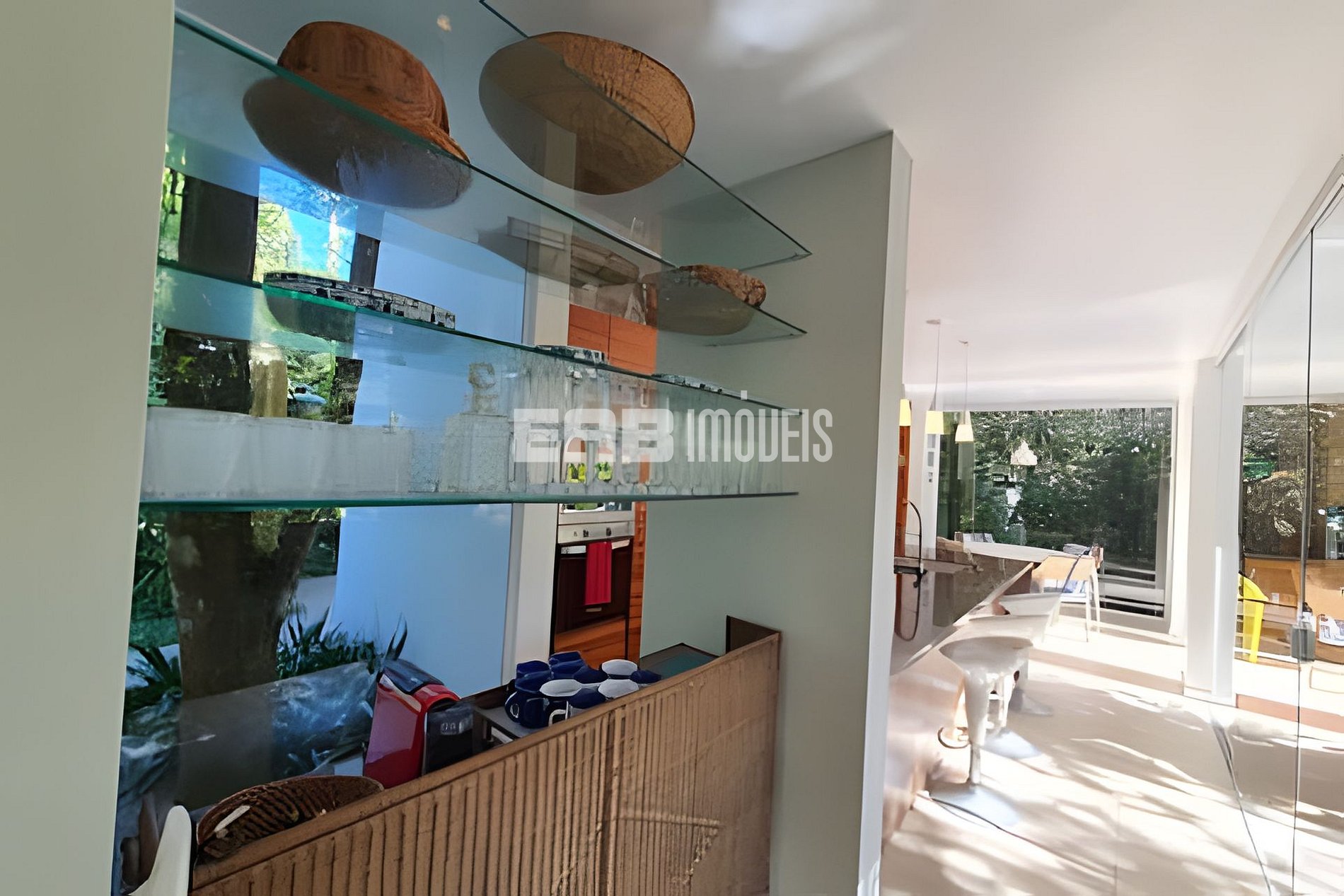 Com uma arquitetura marcada por amplas paredes de vidro, a natureza parece invadir os ambientes, criando uma experiência única de conexão com o entorno.