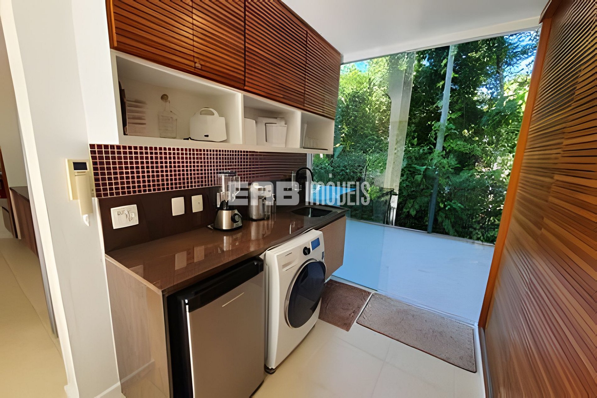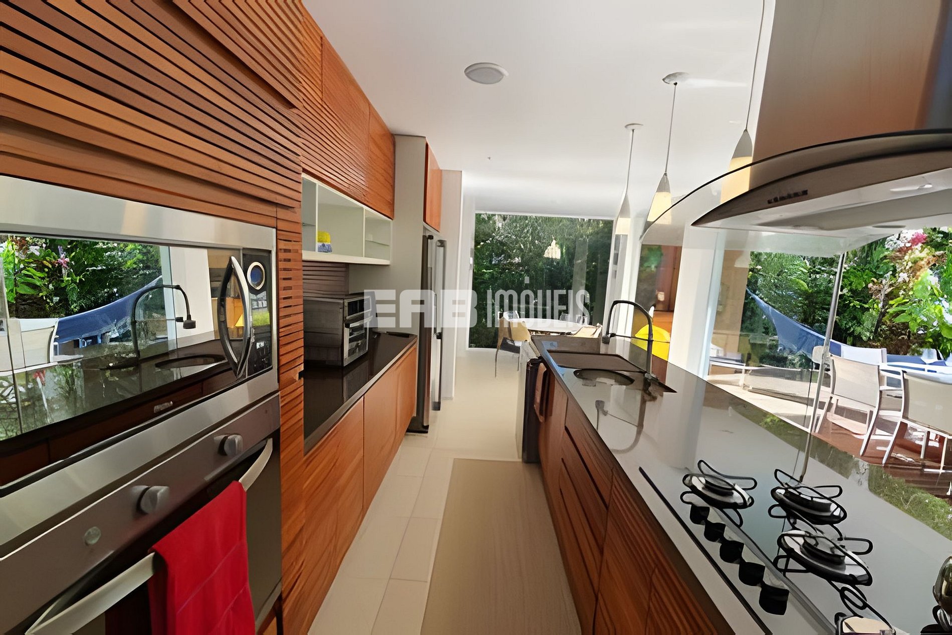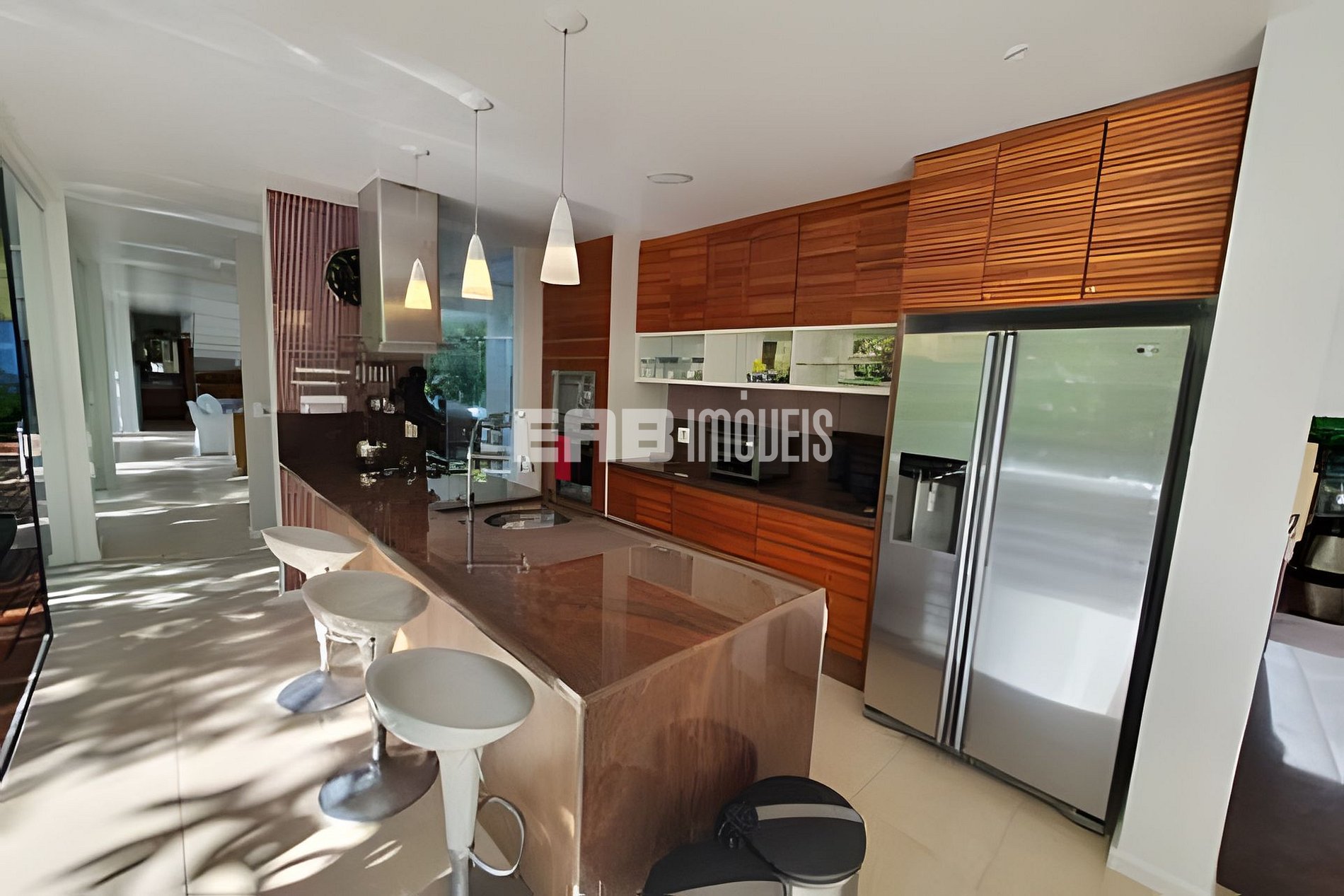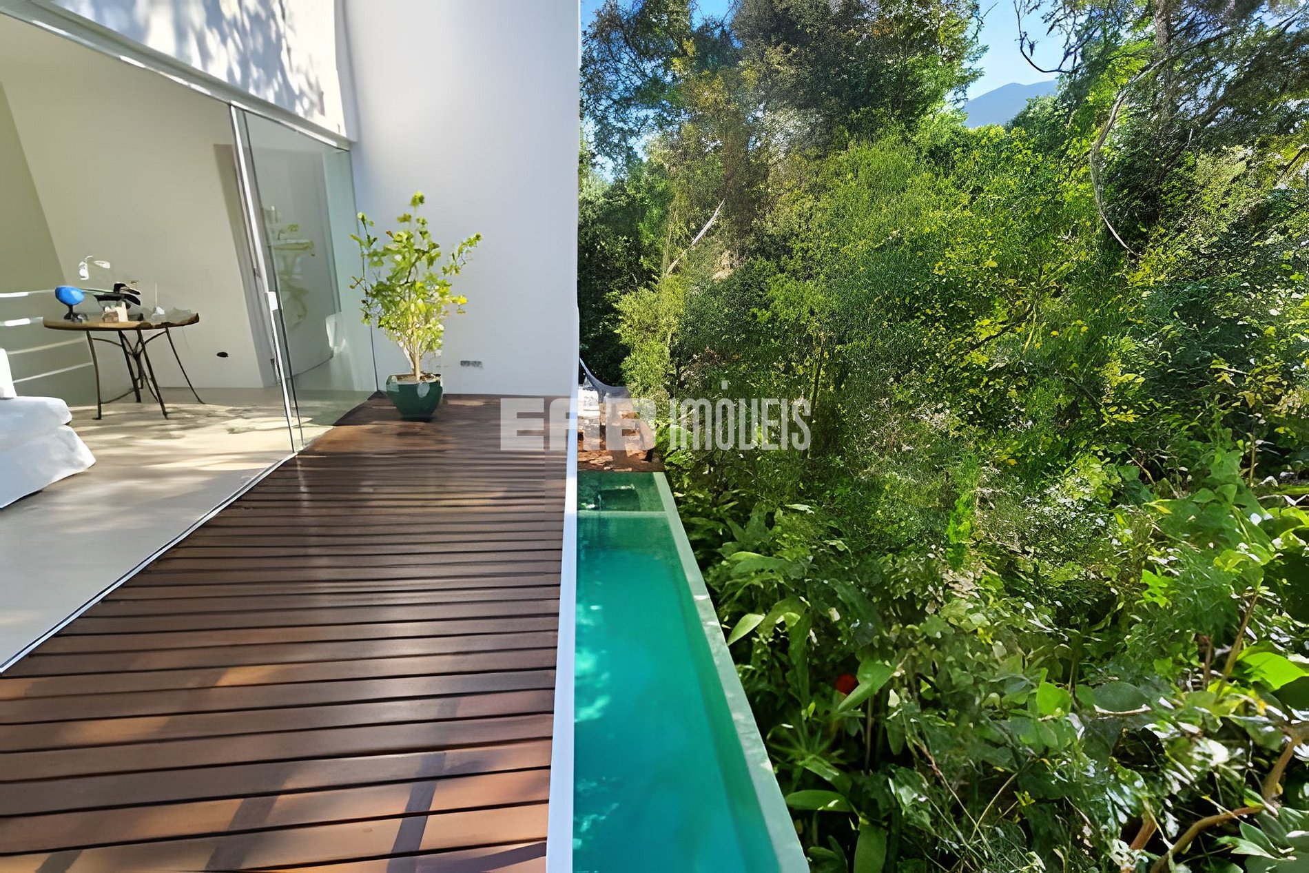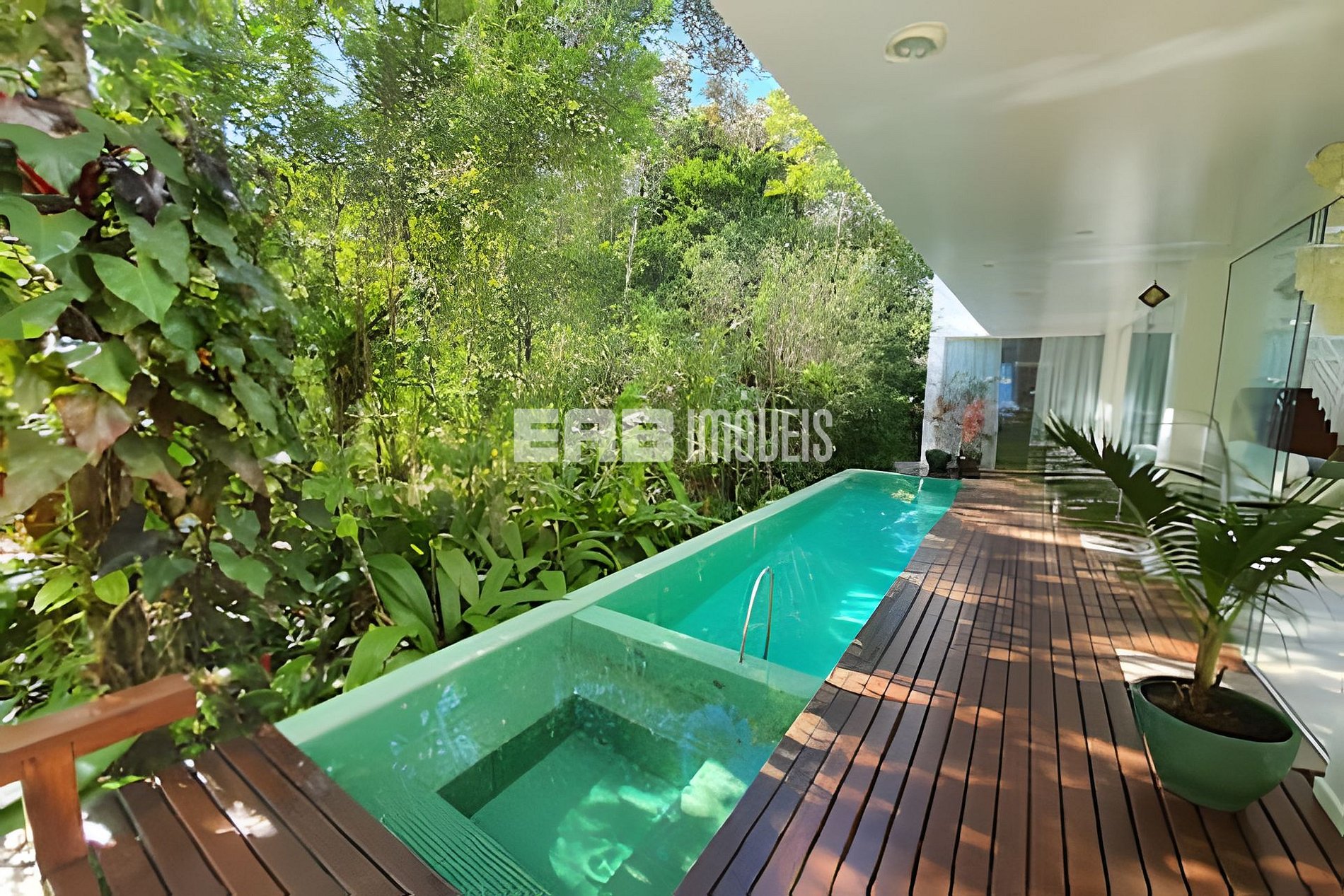 Com uma arquitetura marcada por amplas paredes de vidro, a natureza parece invadir os ambientes, criando uma experiência única de conexão com o entorno.