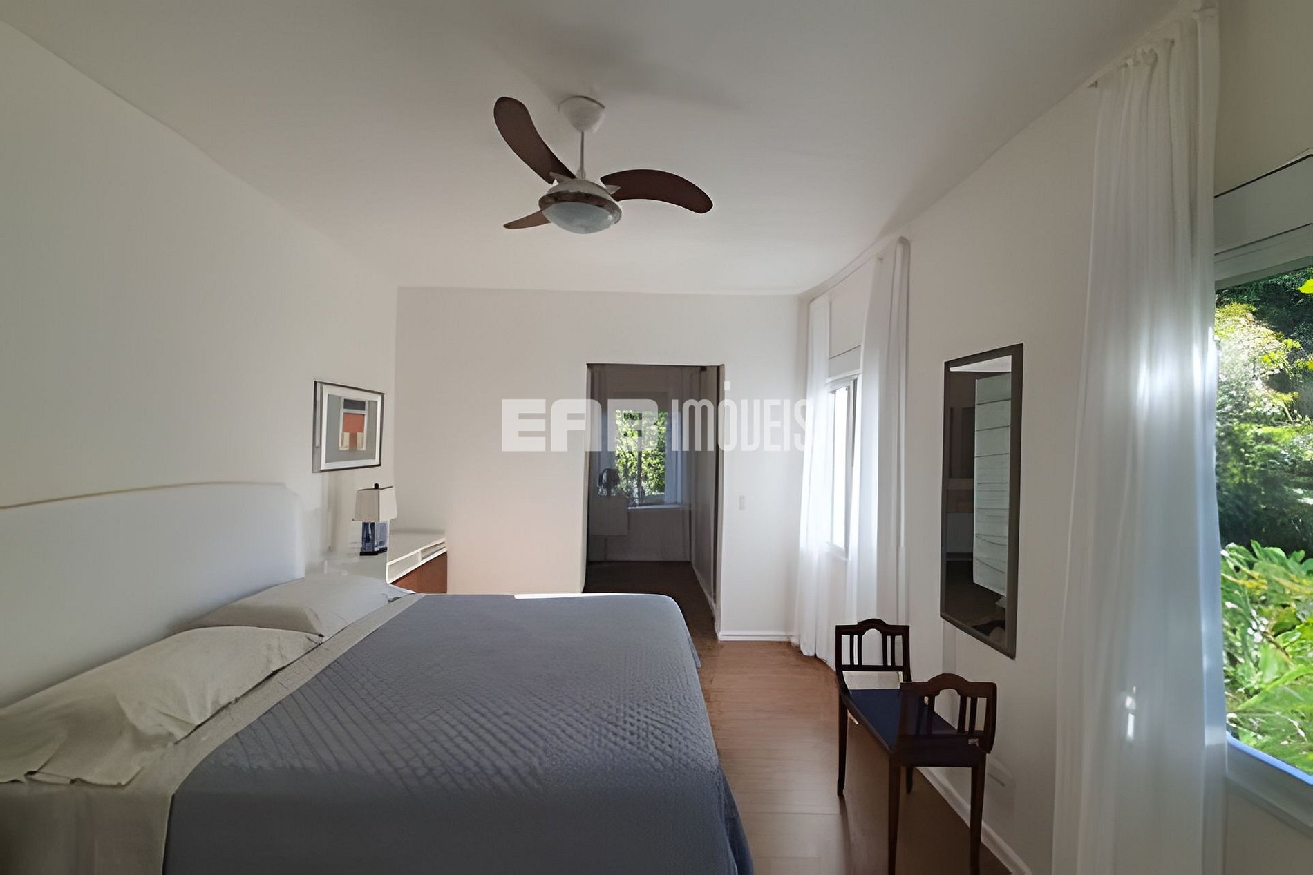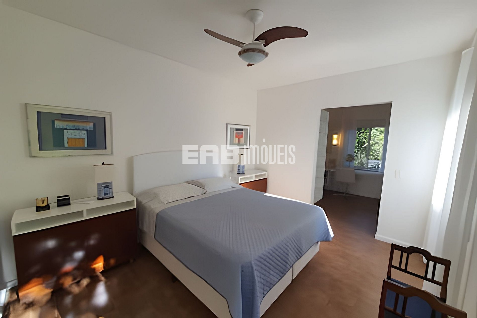 Quarto 2 (suíte): 1 cama de casal queen, ventilador de teto, ar condicionado