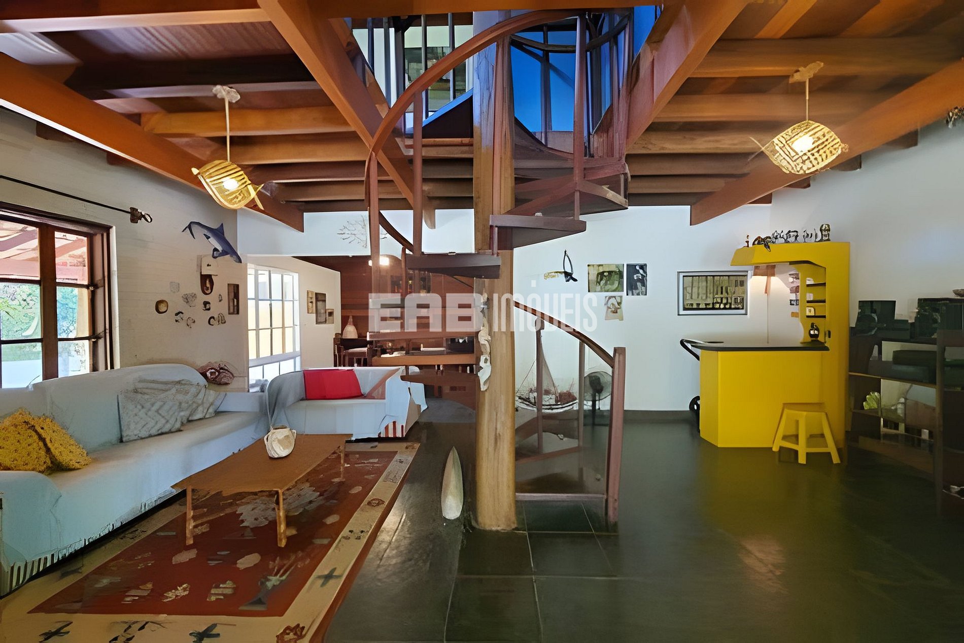 Casa de praia decorada com temas náuticos, muito bem equipada. São três suítes no piso inferior e uma suíte no piso superior, além do mezanino. A cerca de 400m da praia de Itamambuca, desfruta de uma linda vista para as montanhas. A área social conta com sala integrada à cozinha americana e delicioso espaço gourmet.