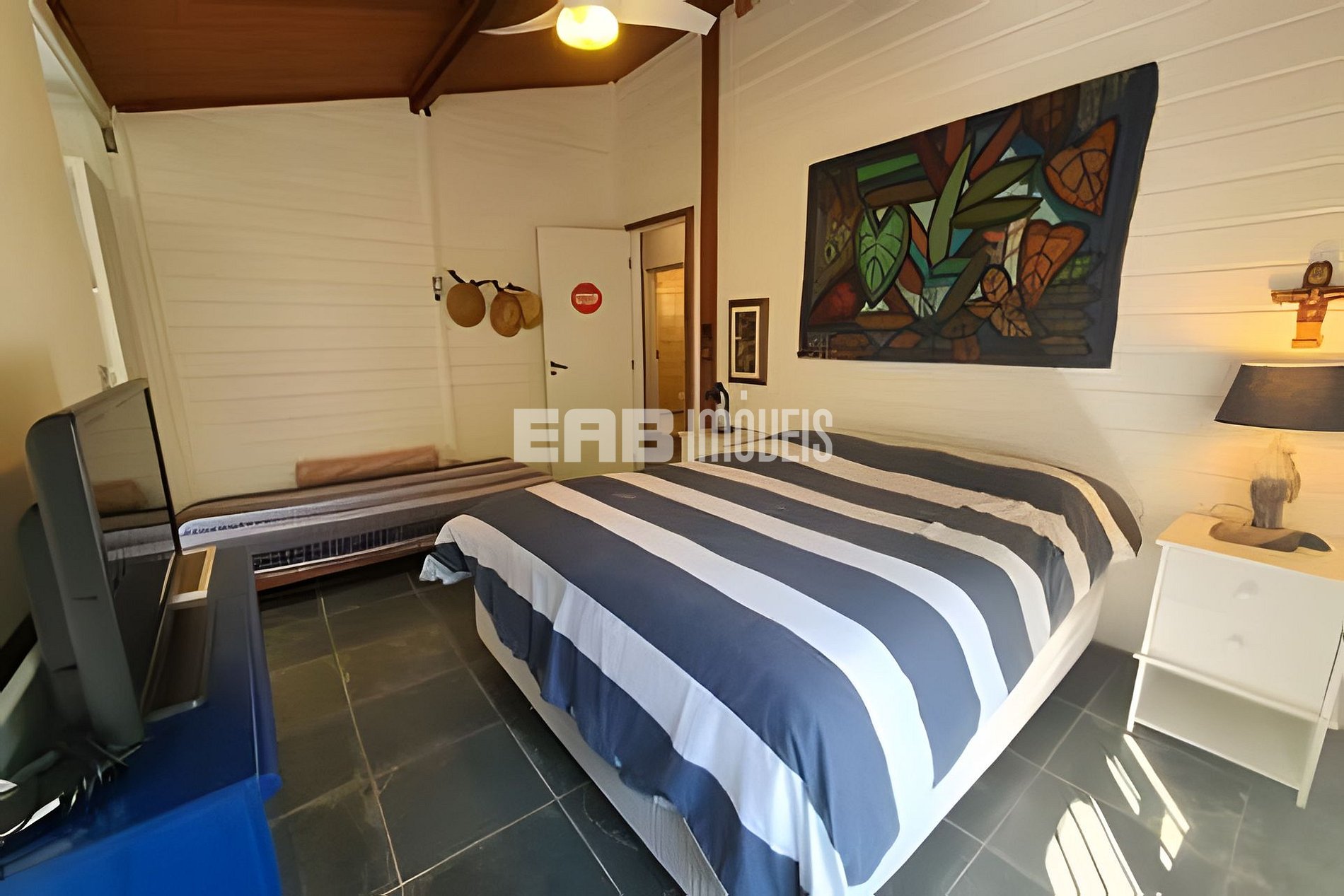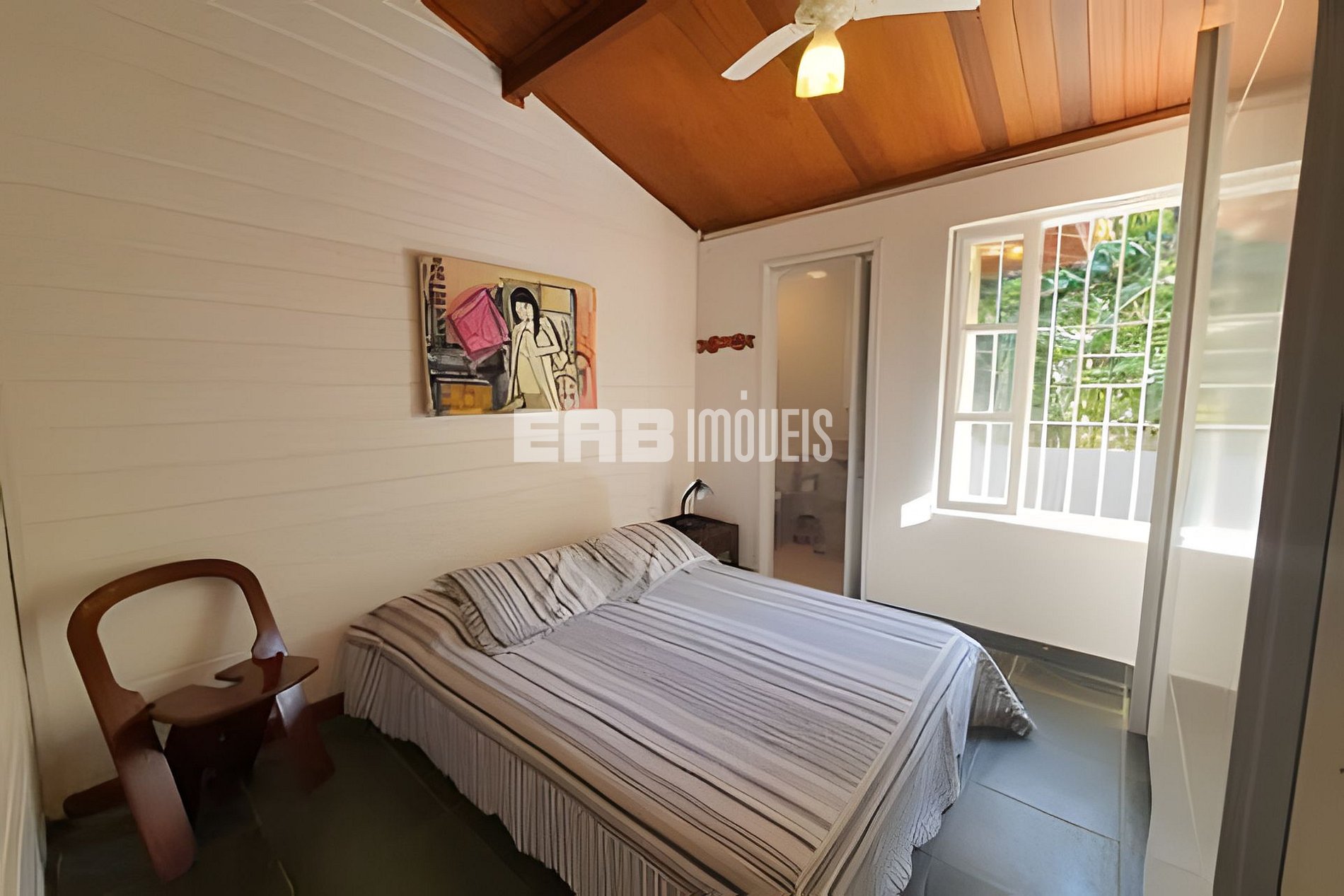 Quarto 4 (suíte): 1 cama de casal queen, ventilador de teto, ar condicionado