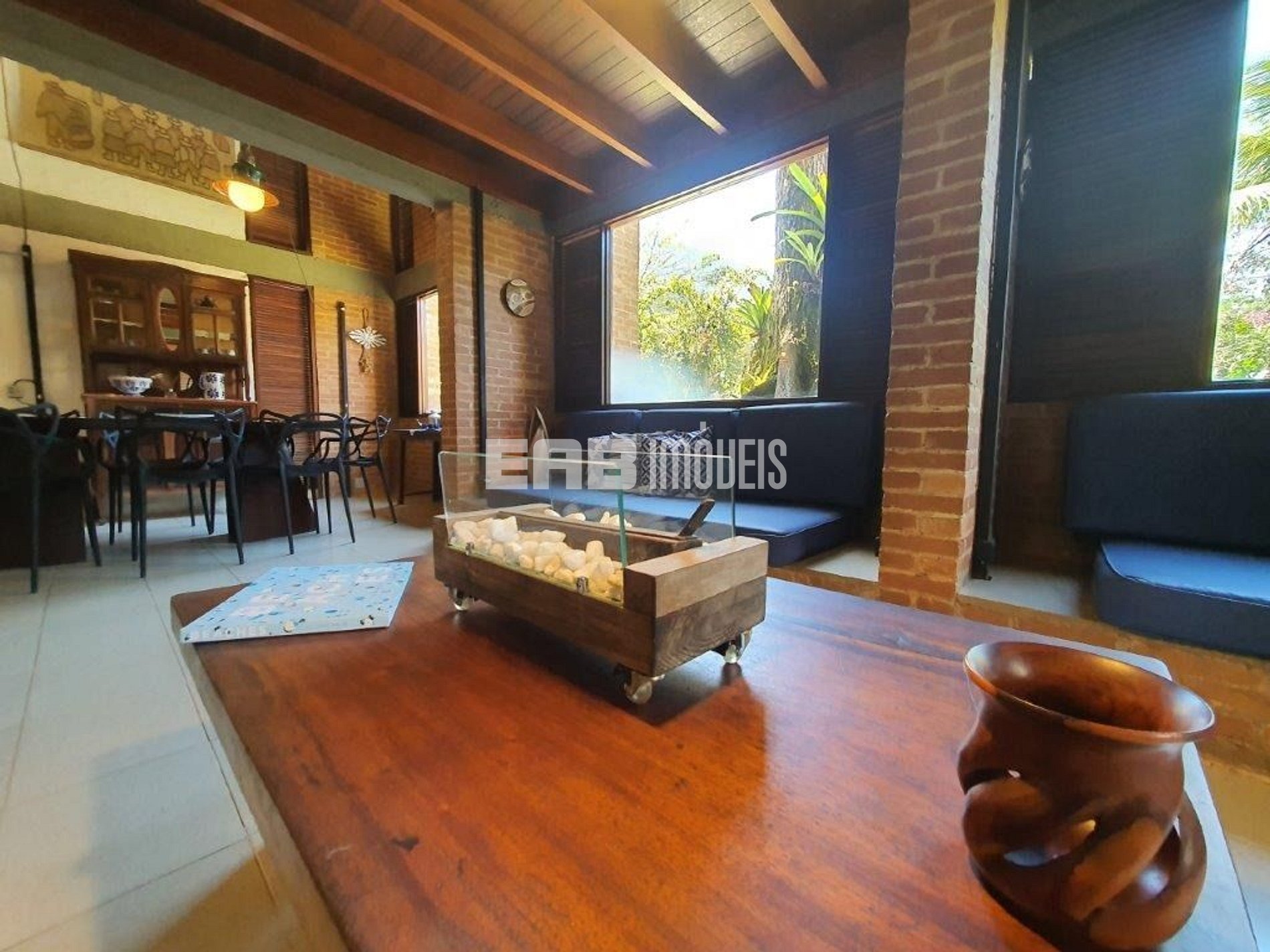 Com estilo rústico-industrial, esta casa é uma opção para suas férias. Na área externa, você pode relaxar na rede da varanda, mergulhar na piscina e preparar um churrasco com amigos ou família.