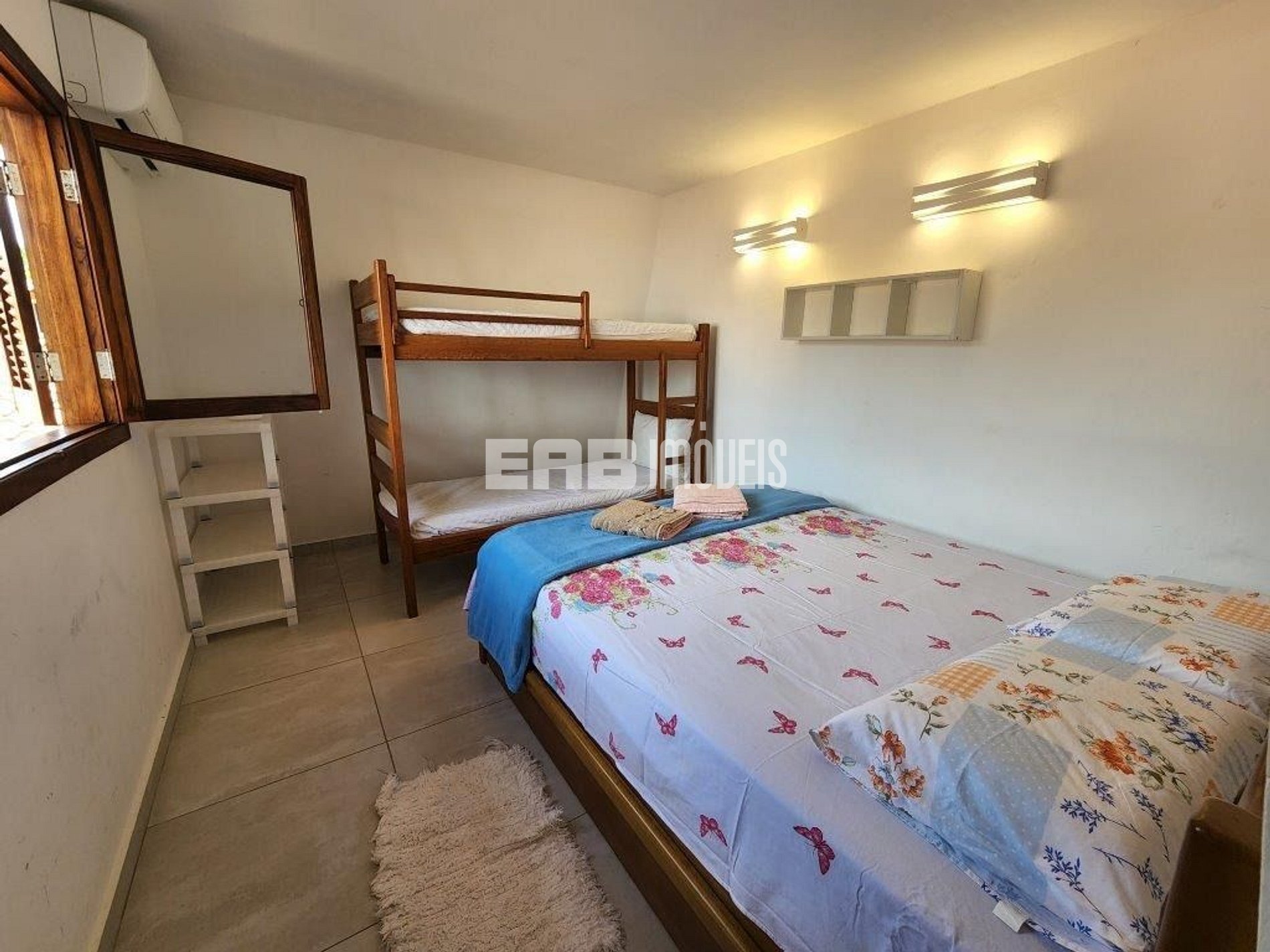 Quarto 2 (suíte): 1 cama de casal padrão, 1 cama auxiliar de solteiro, 1 beliche e ar condicionado