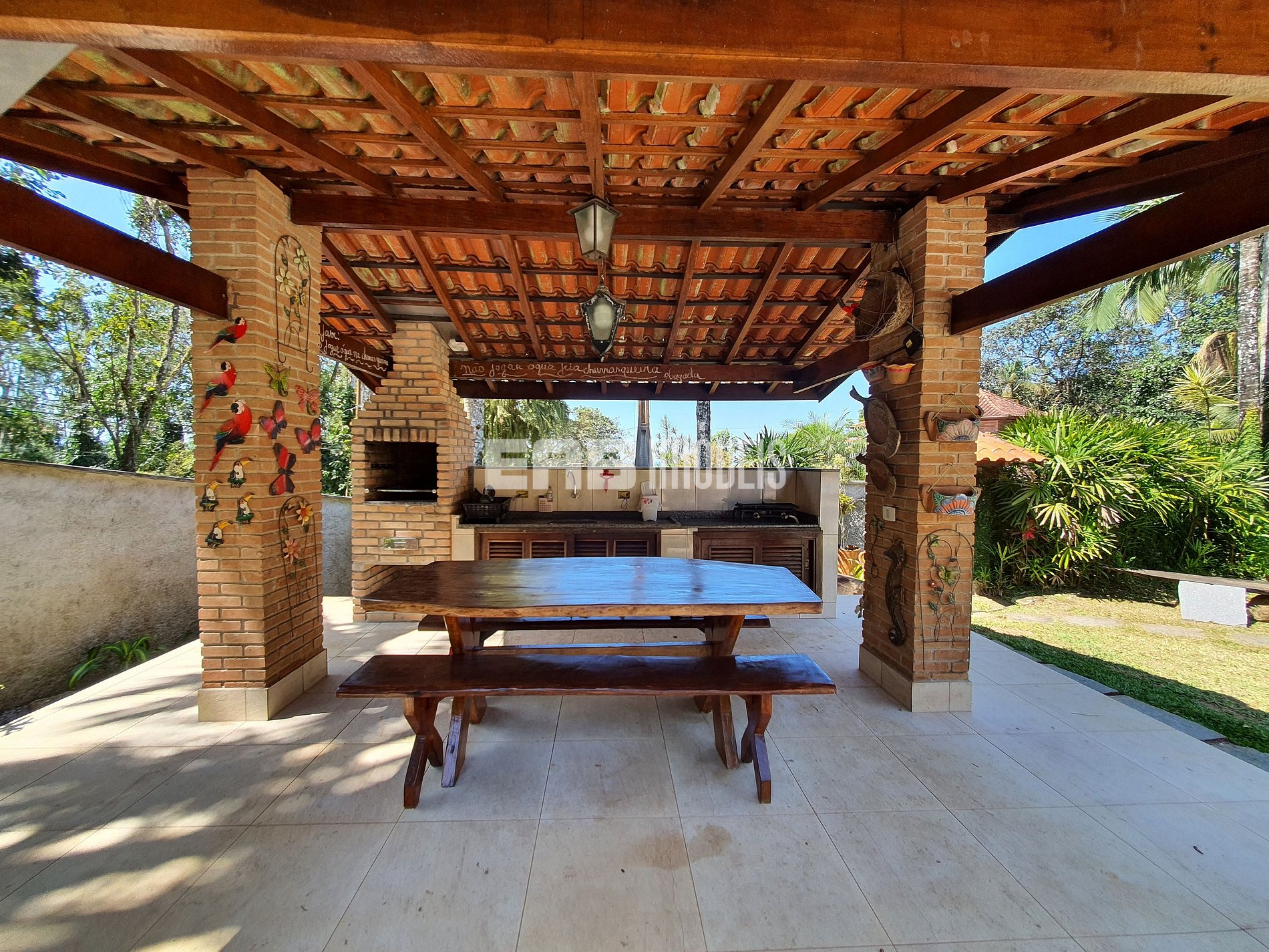 Você está a um clique da melhor férias em família. Linda casa com vista para o mar, encravada em amplo terreno da Mata Atlântica, com total conforto. Na sala, móveis rústicos dão um ar de fazenda.