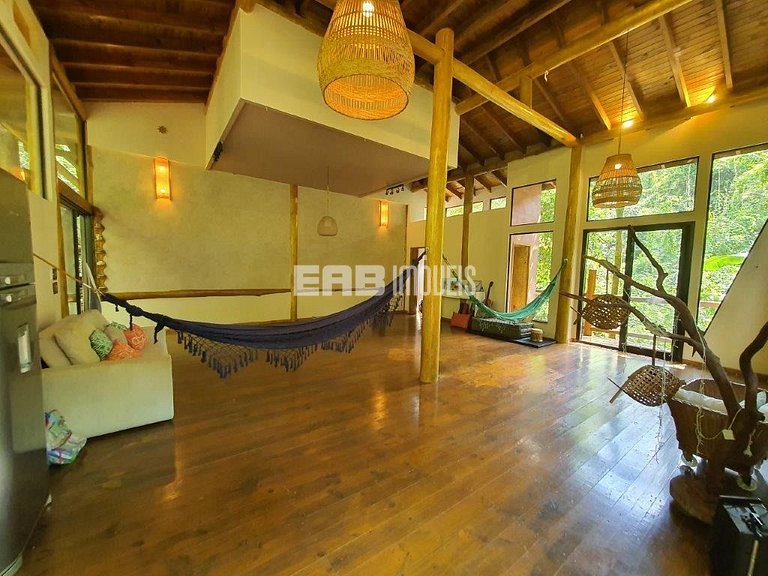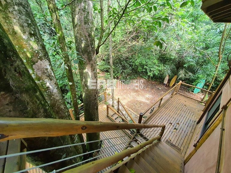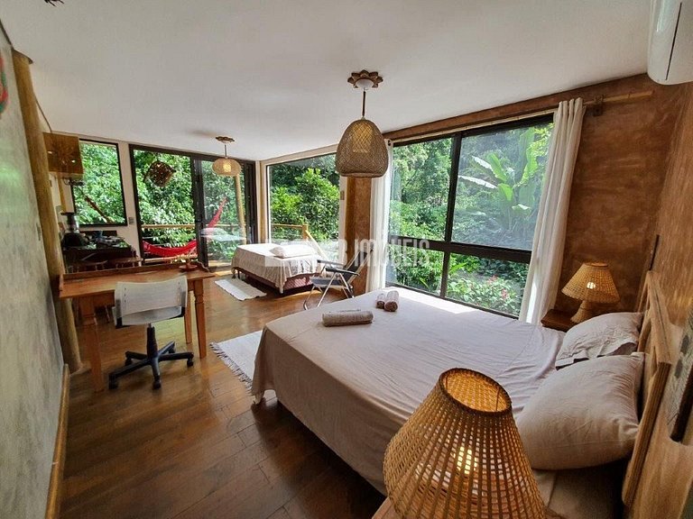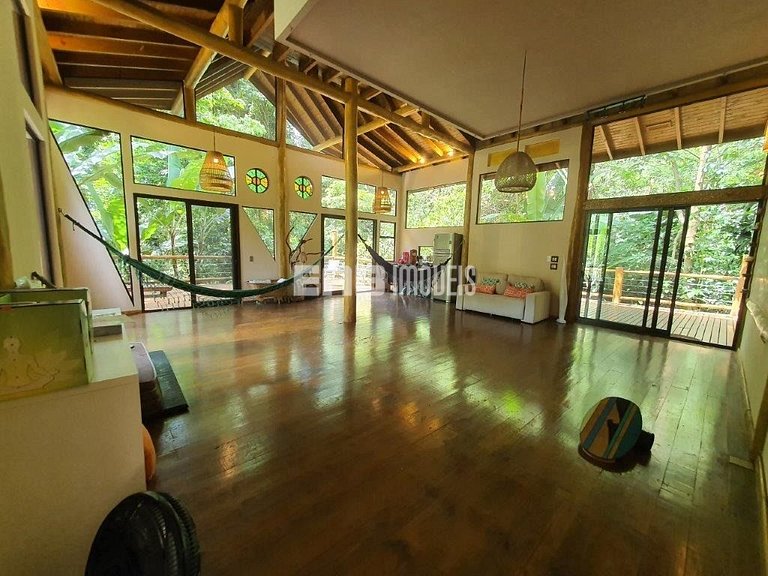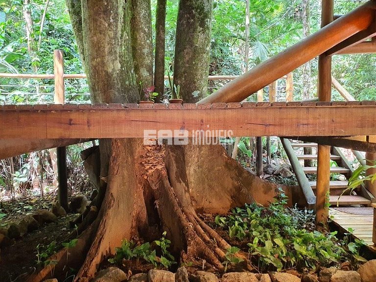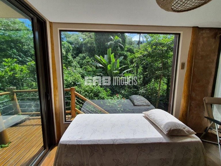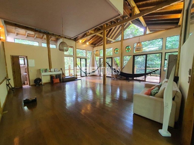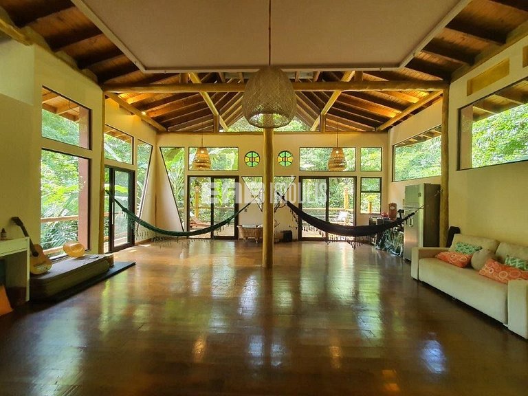 Com uma arquitetura única, esta casa permite vivenciar a Mata Atlântica ao seu redor em todos os ambientes, com espaços ao ar livre ou amplas aberturas de vidro.