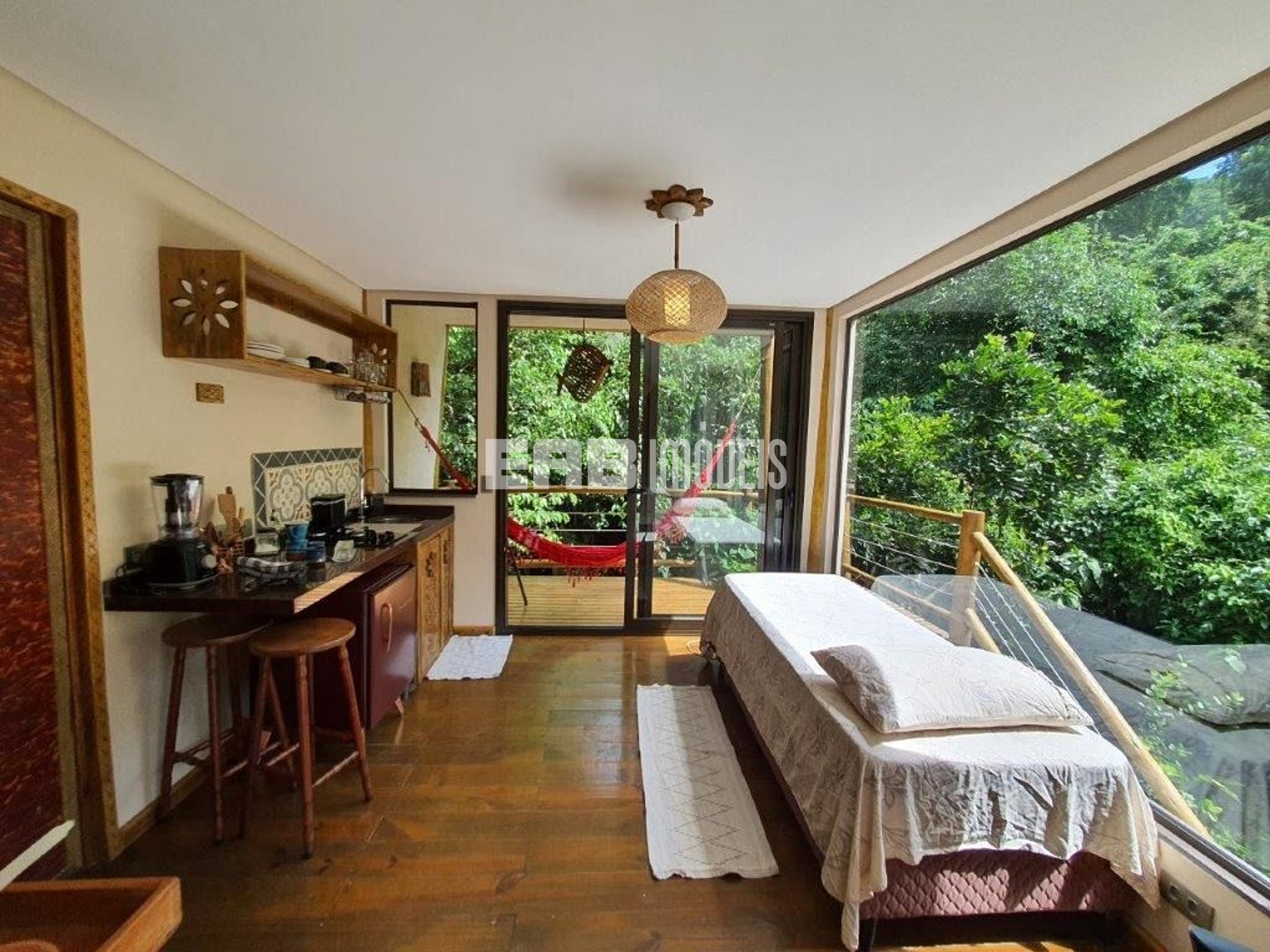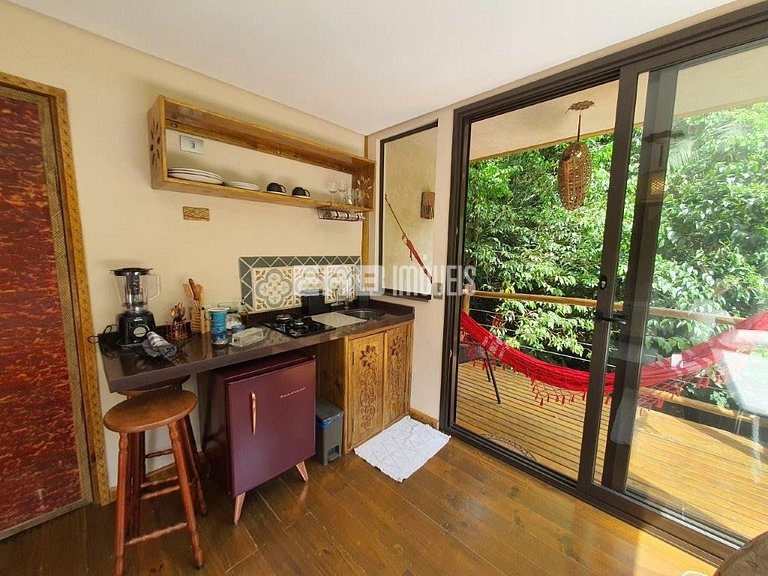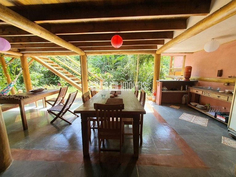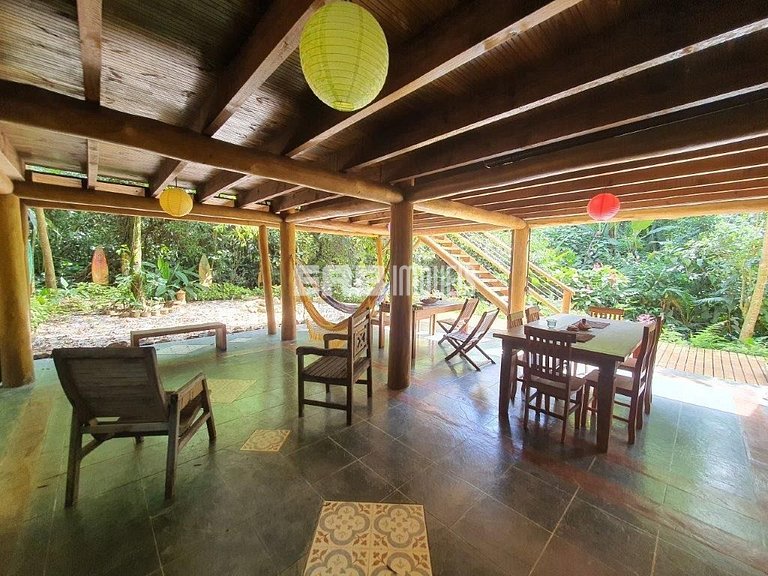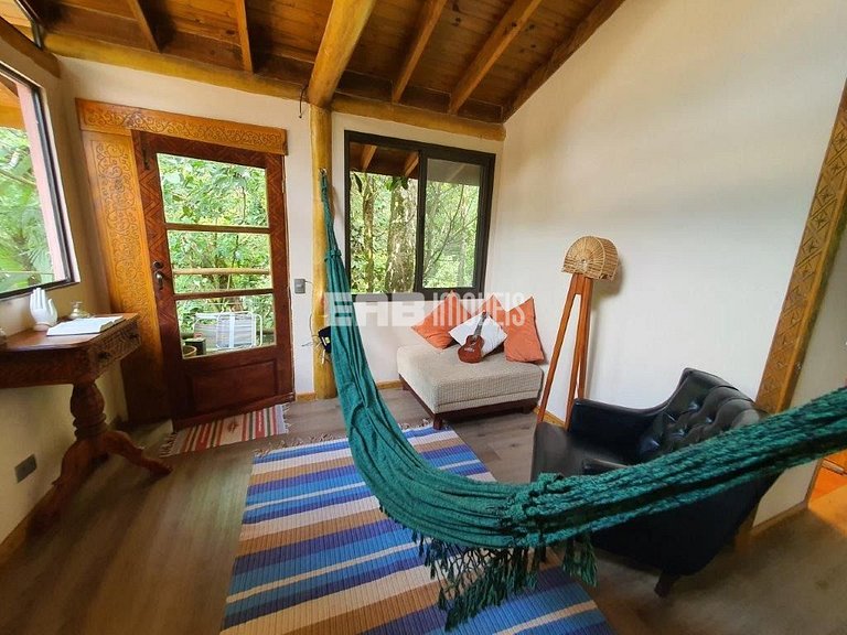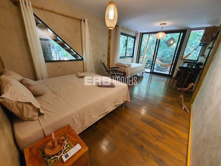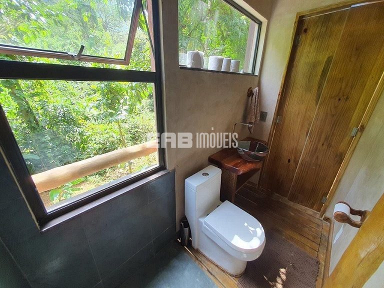 Com uma arquitetura única, esta casa permite vivenciar a Mata Atlântica ao seu redor em todos os ambientes, com espaços ao ar livre ou amplas aberturas de vidro.