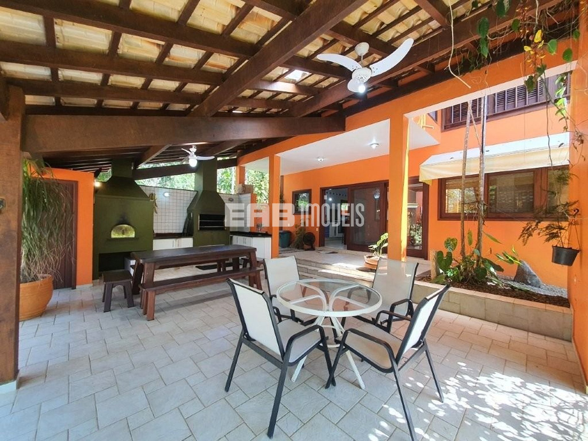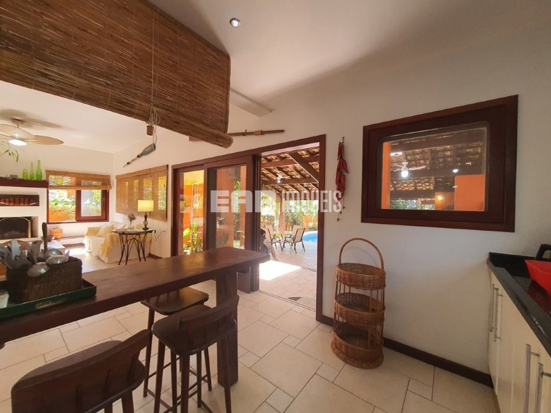 Localizada no Félix, esta casa possui jardim com caminho para a areia da praia, além de duas piscinas (adulto e infantil), churrasqueira e forno de pizza. Luxuosa e acolhedora, recebe os hóspedes com muito conforto.