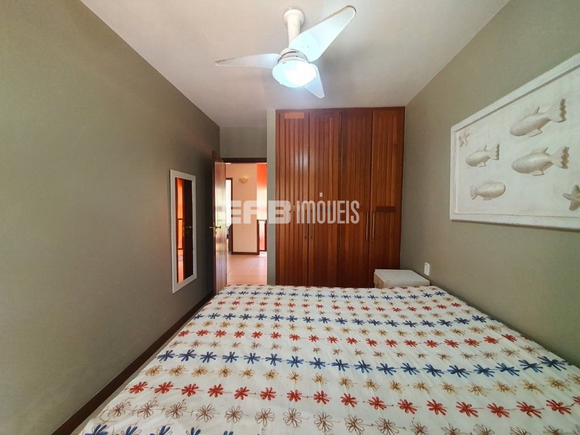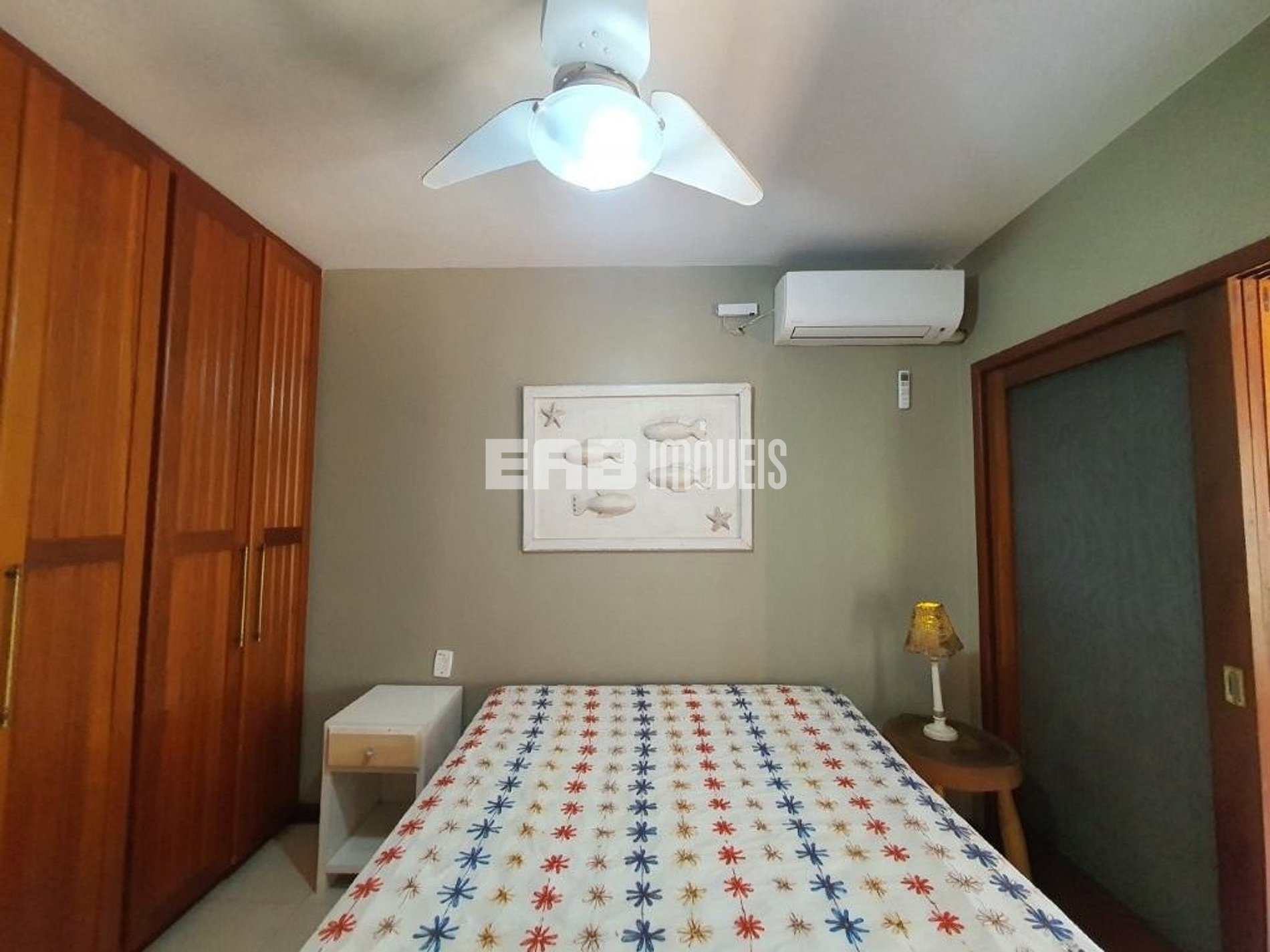 Quarto 2 (suíte): 1 cama de casal queen, ventilador de teto, ar condicionado