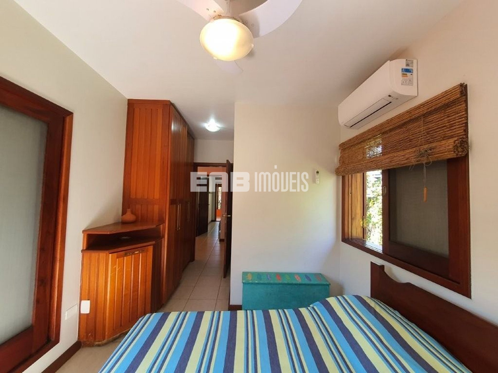 Quarto 4: 1 cama de casal, 1 cama de solteiro, ventilador de teto, ar condicionado