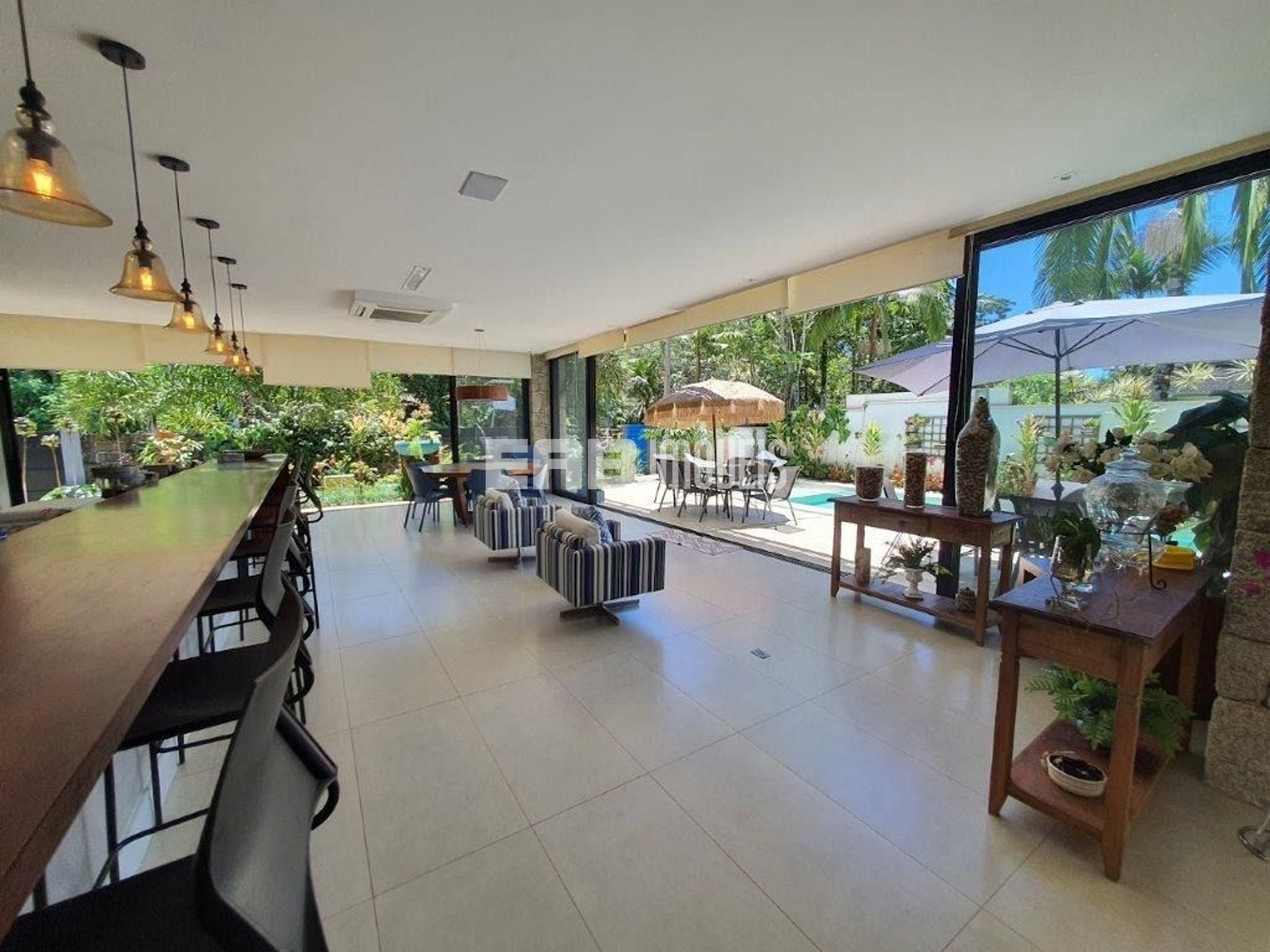 Casa moderna, com 6 suítes, ar condicionado, piscina e espaço gourmet completo, no canto esquerdo de Itamambuca.