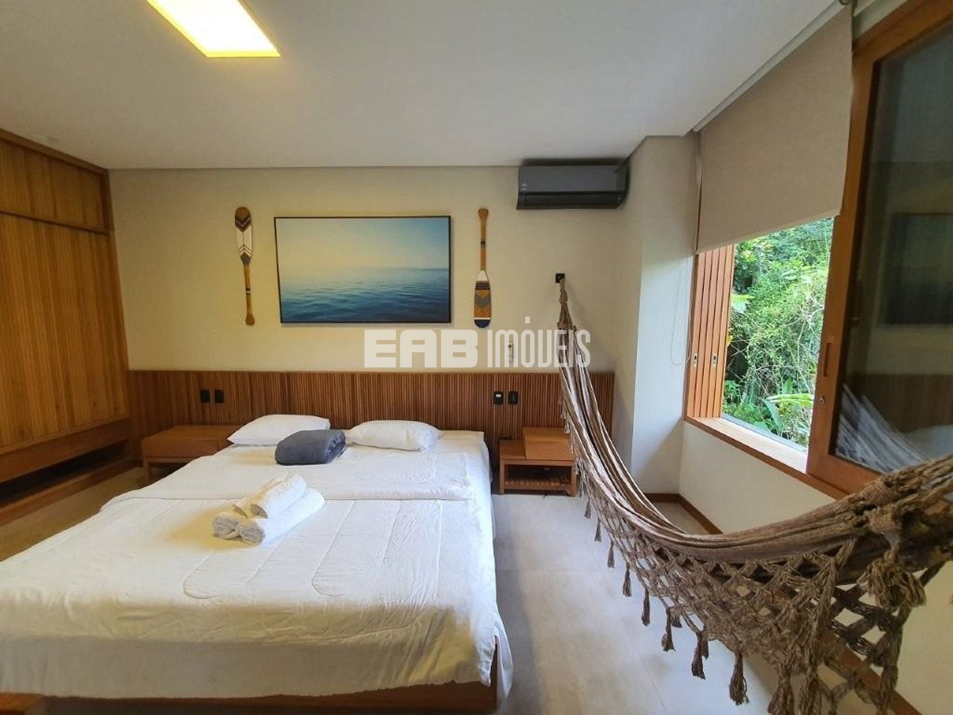 Quarto 2 (suíte): 2 camas de solteiro (opção de transformar em 1 cama de casal king), 1 cama auxiliar de solteiro, ar condicionado