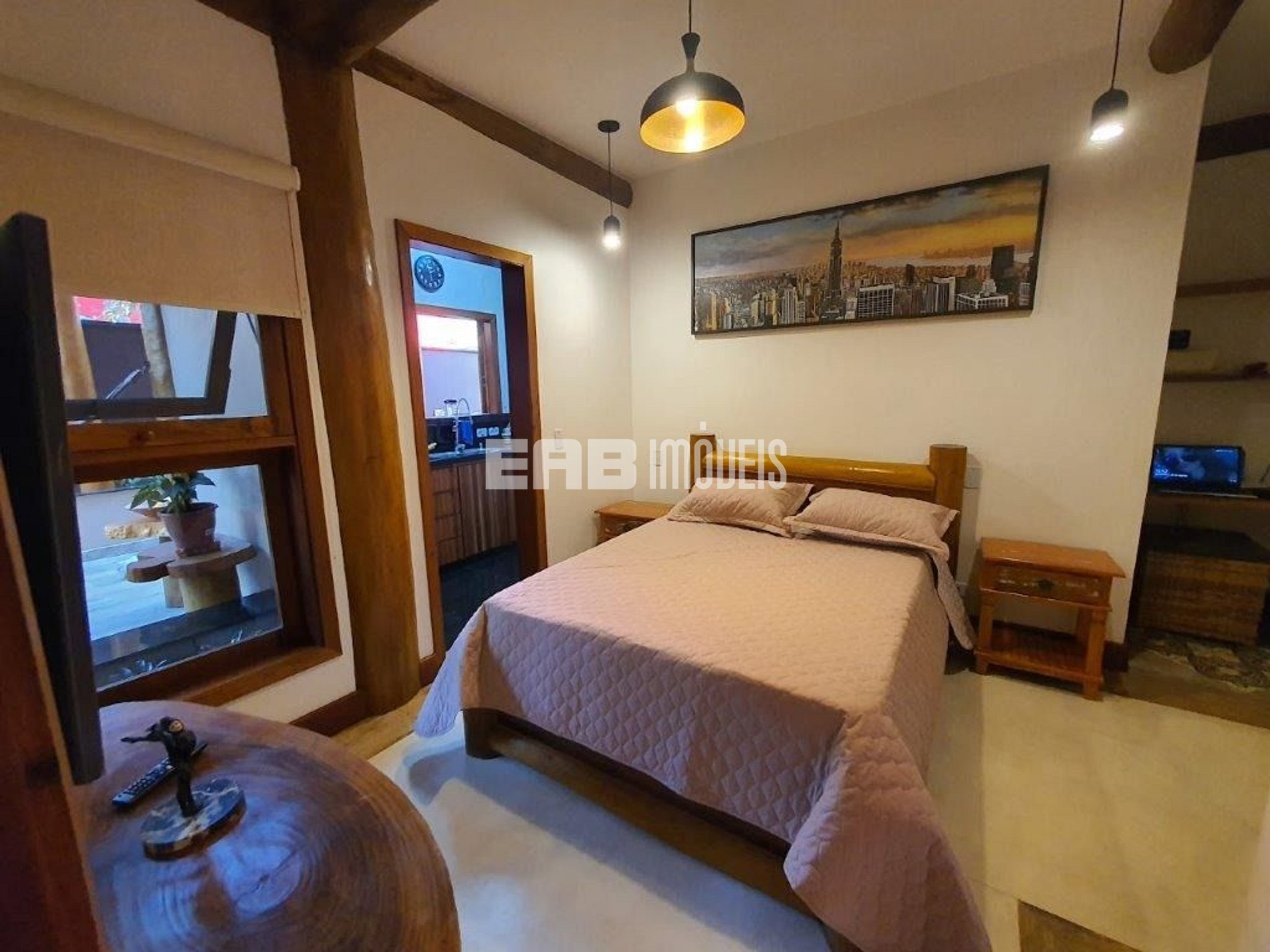 Suíte com cama de casal e ar condicionado na praia de Itamambuca