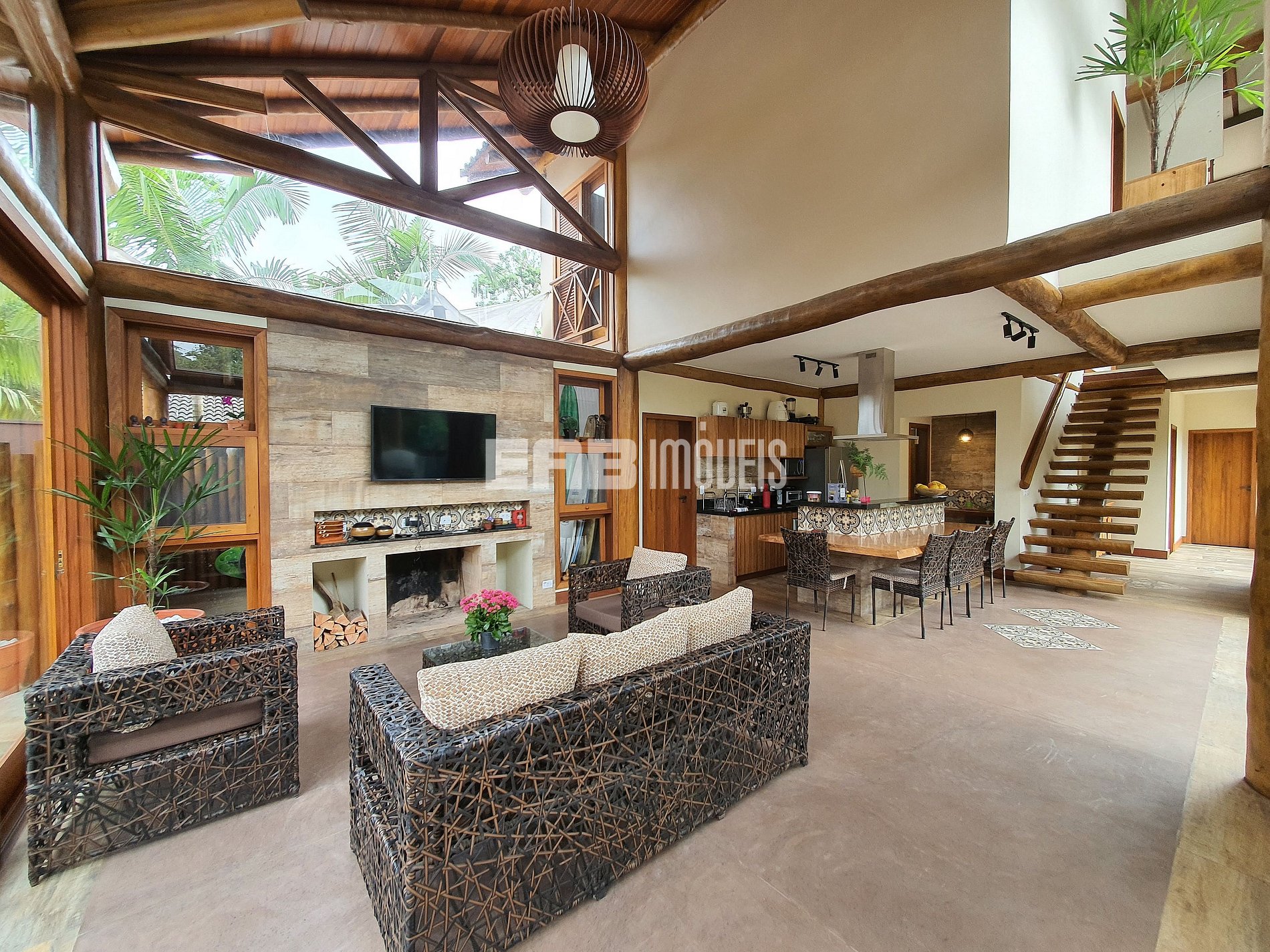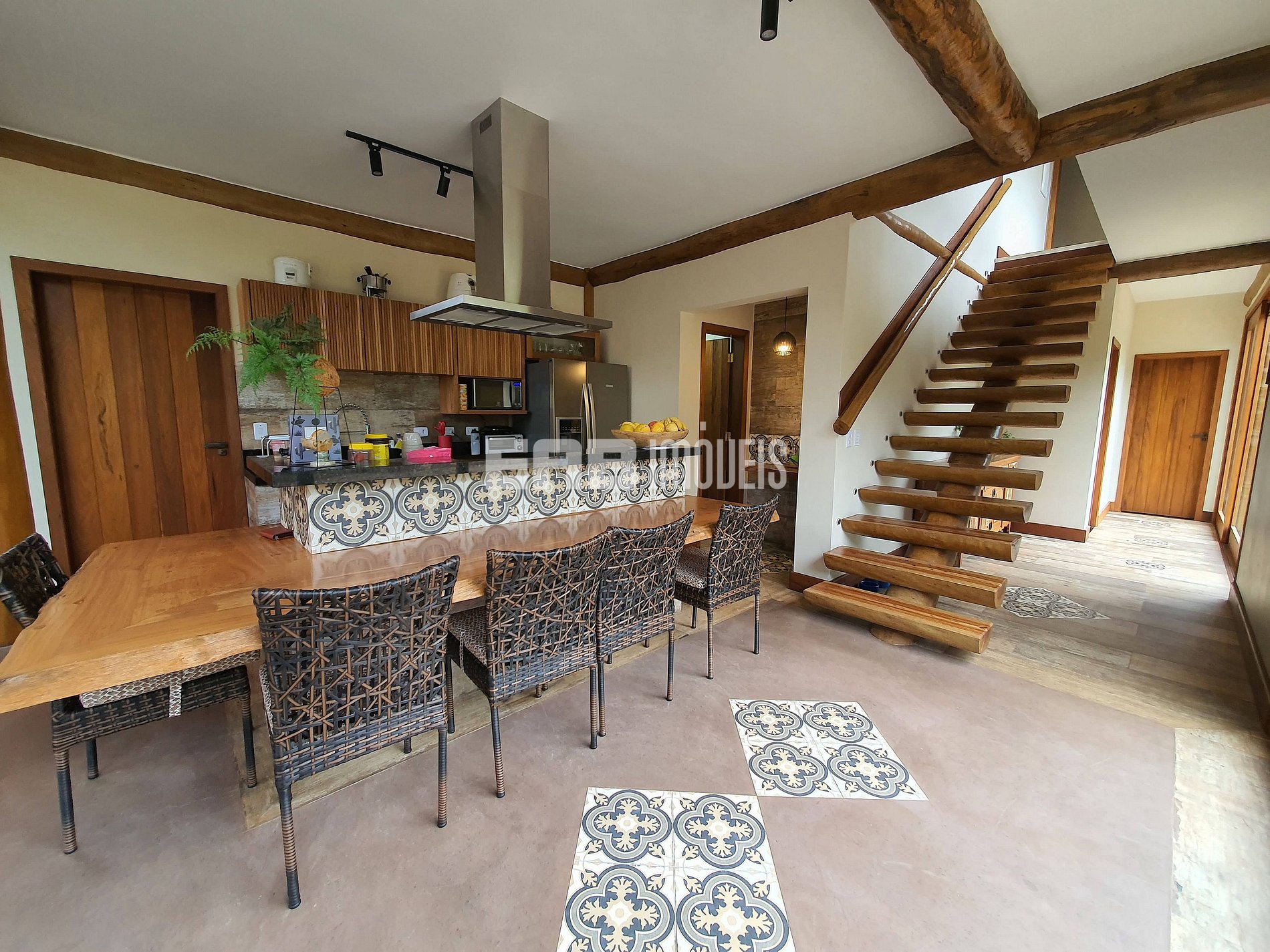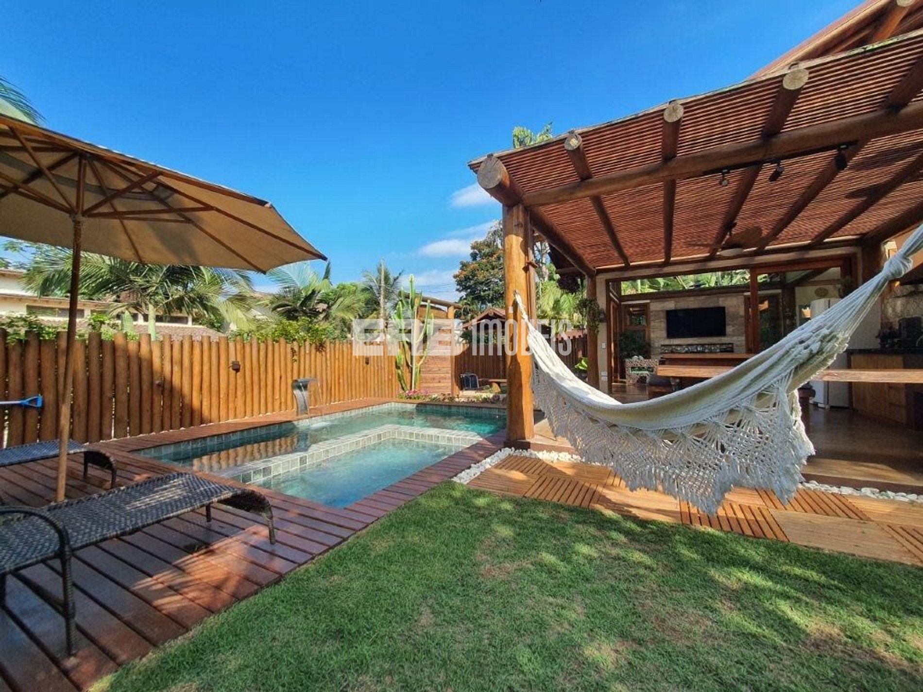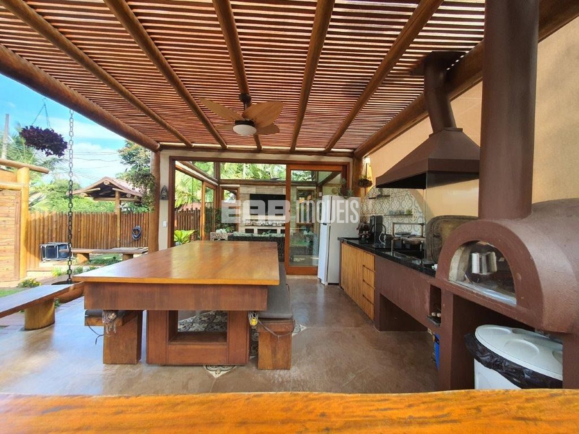 Esta casa reúne o moderno e o rústico em perfeita harmonia e bom gosto. A área de lazer conta com churrasqueira, forno de pizza, espaço luau e quadra de areia para vôlei e beach tenis. Todos os espaços são generosos, em especial as suítes, garantindo extremo conforto.