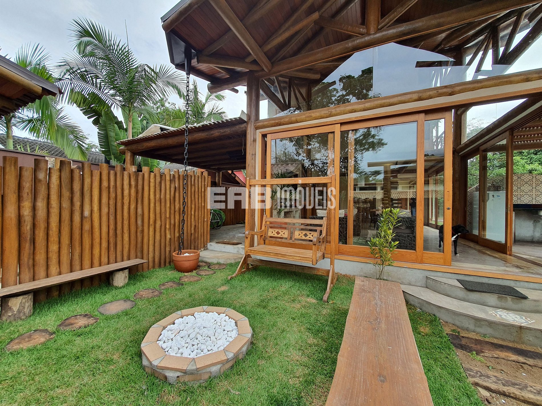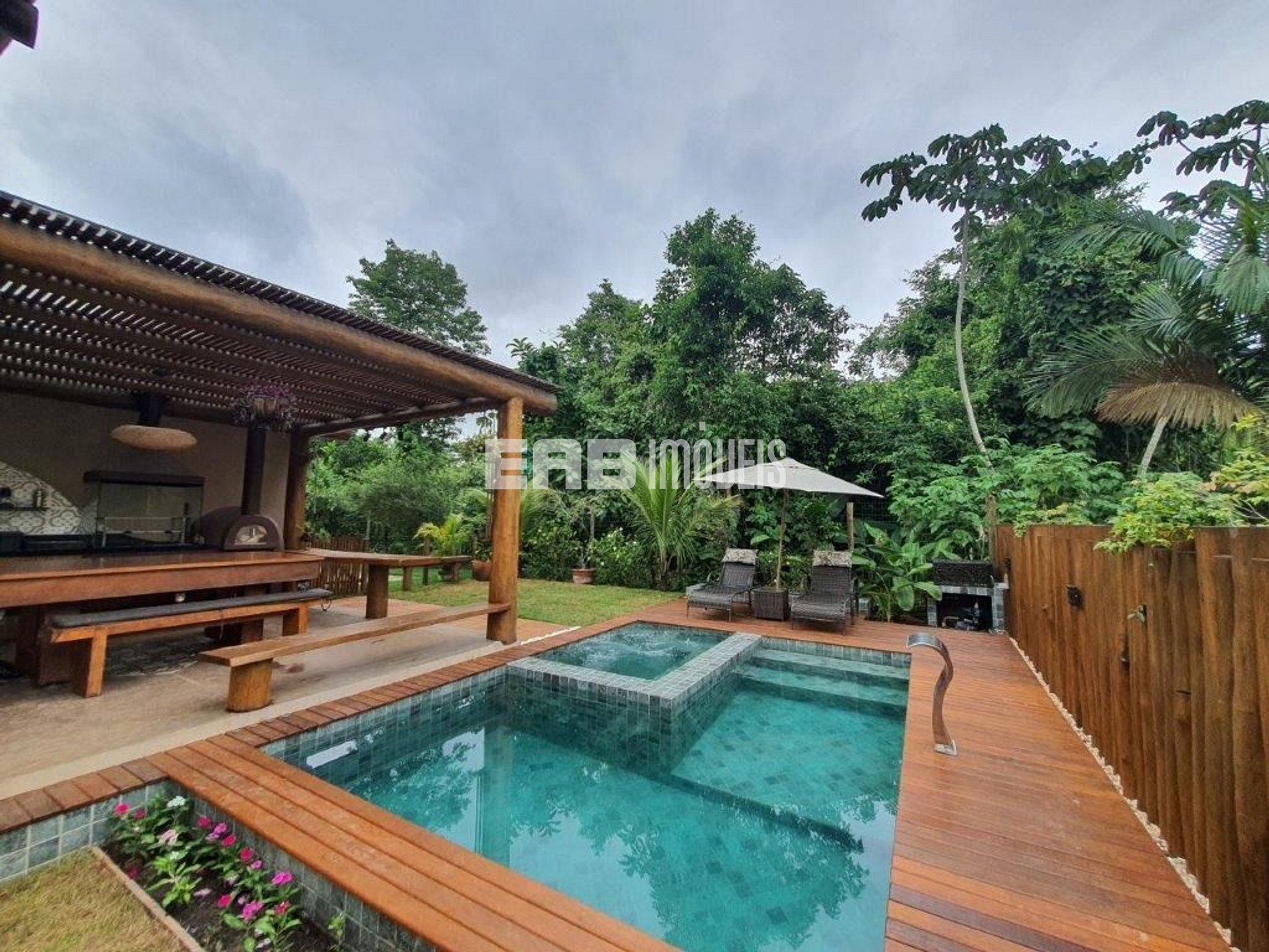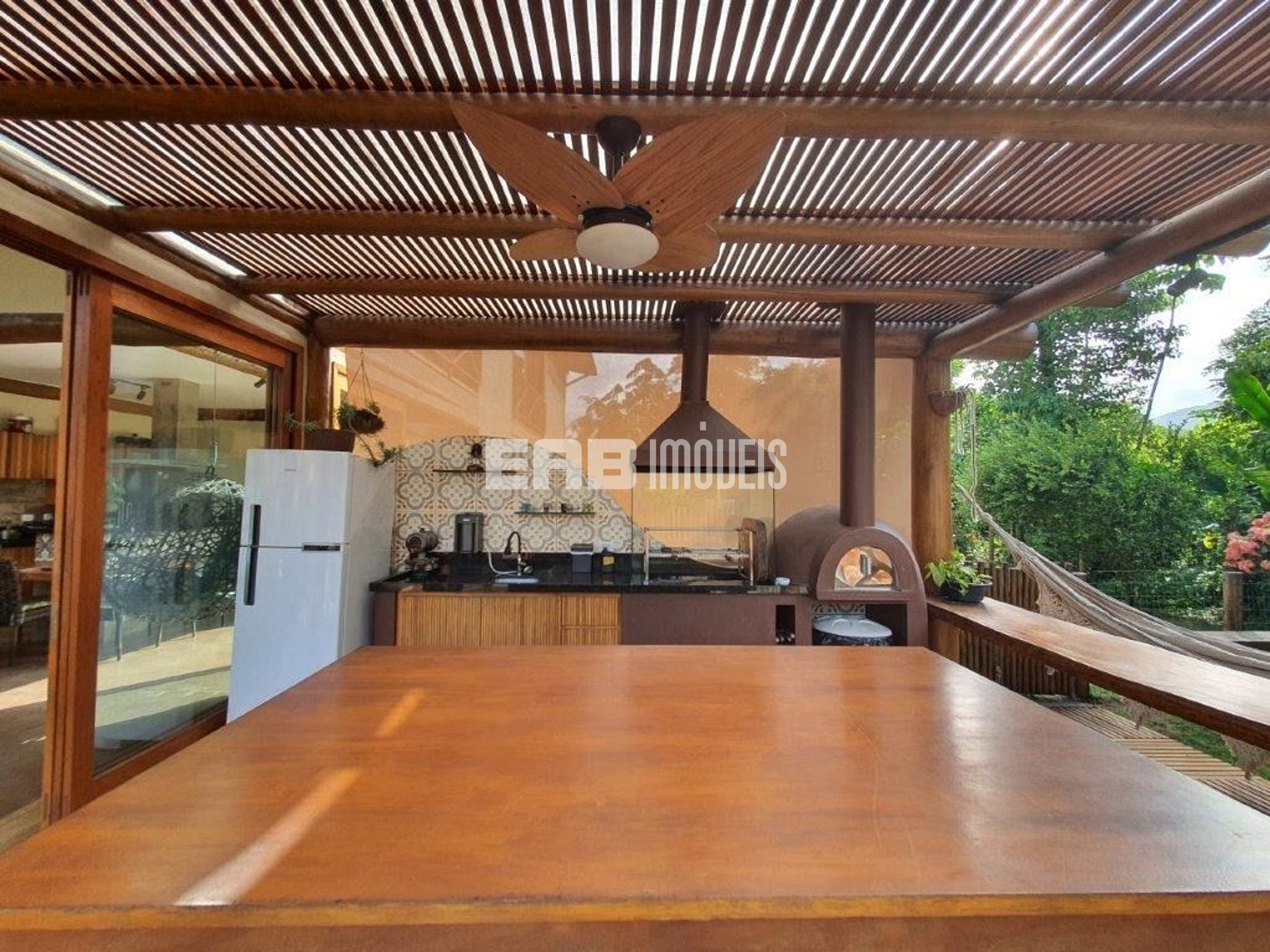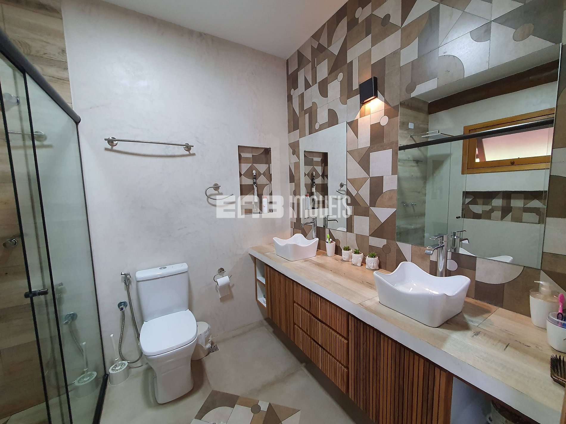 Esta casa reúne o moderno e o rústico em perfeita harmonia e bom gosto. A área de lazer conta com churrasqueira, forno de pizza, espaço luau e quadra de areia para vôlei e beach tenis. Todos os espaços são generosos, em especial as suítes, garantindo extremo conforto.