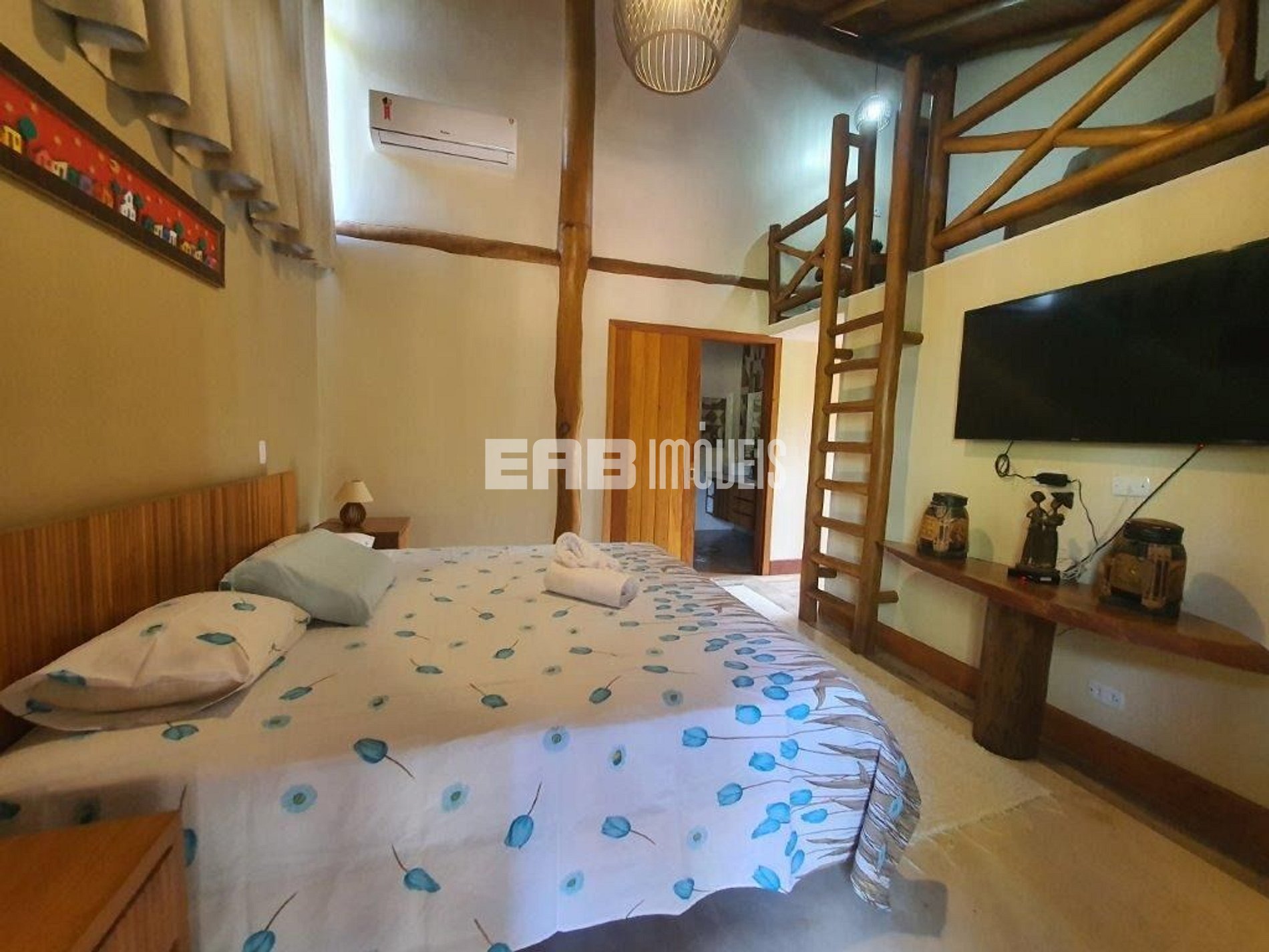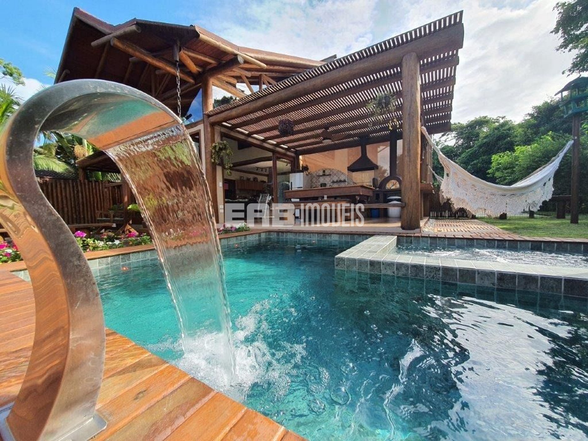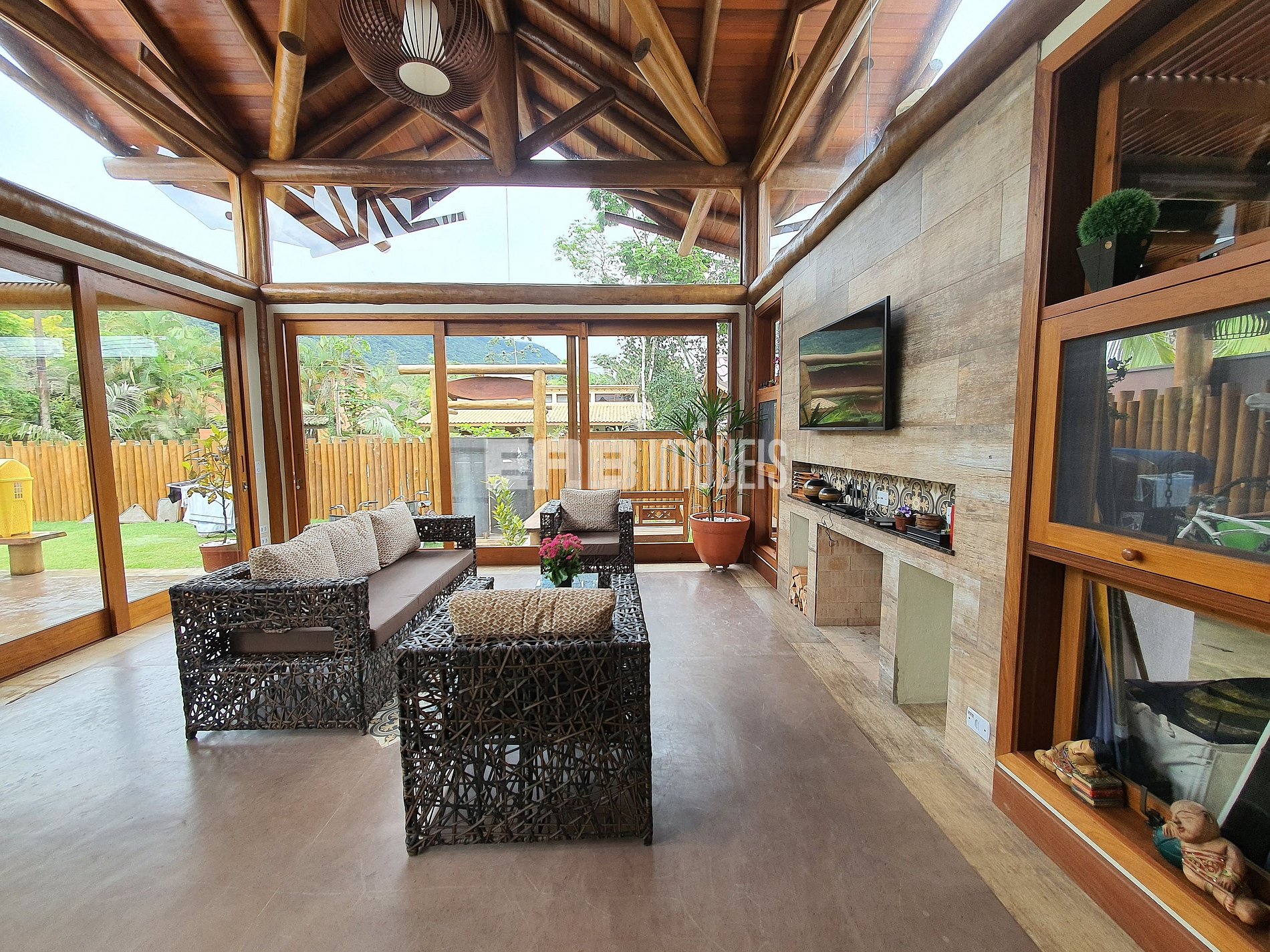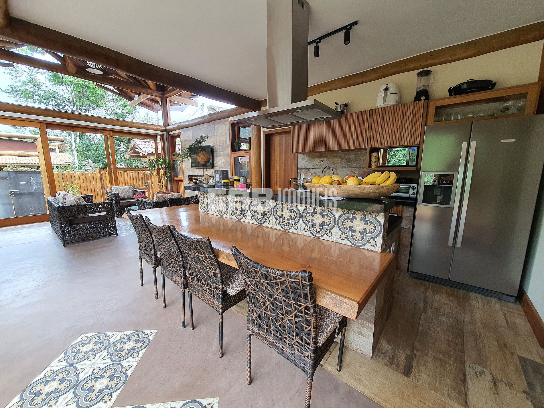 Esta casa reúne o moderno e o rústico em perfeita harmonia e bom gosto. A área de lazer conta com churrasqueira, forno de pizza, espaço luau e quadra de areia para vôlei e beach tenis. Todos os espaços são generosos, em especial as suítes, garantindo extremo conforto.
