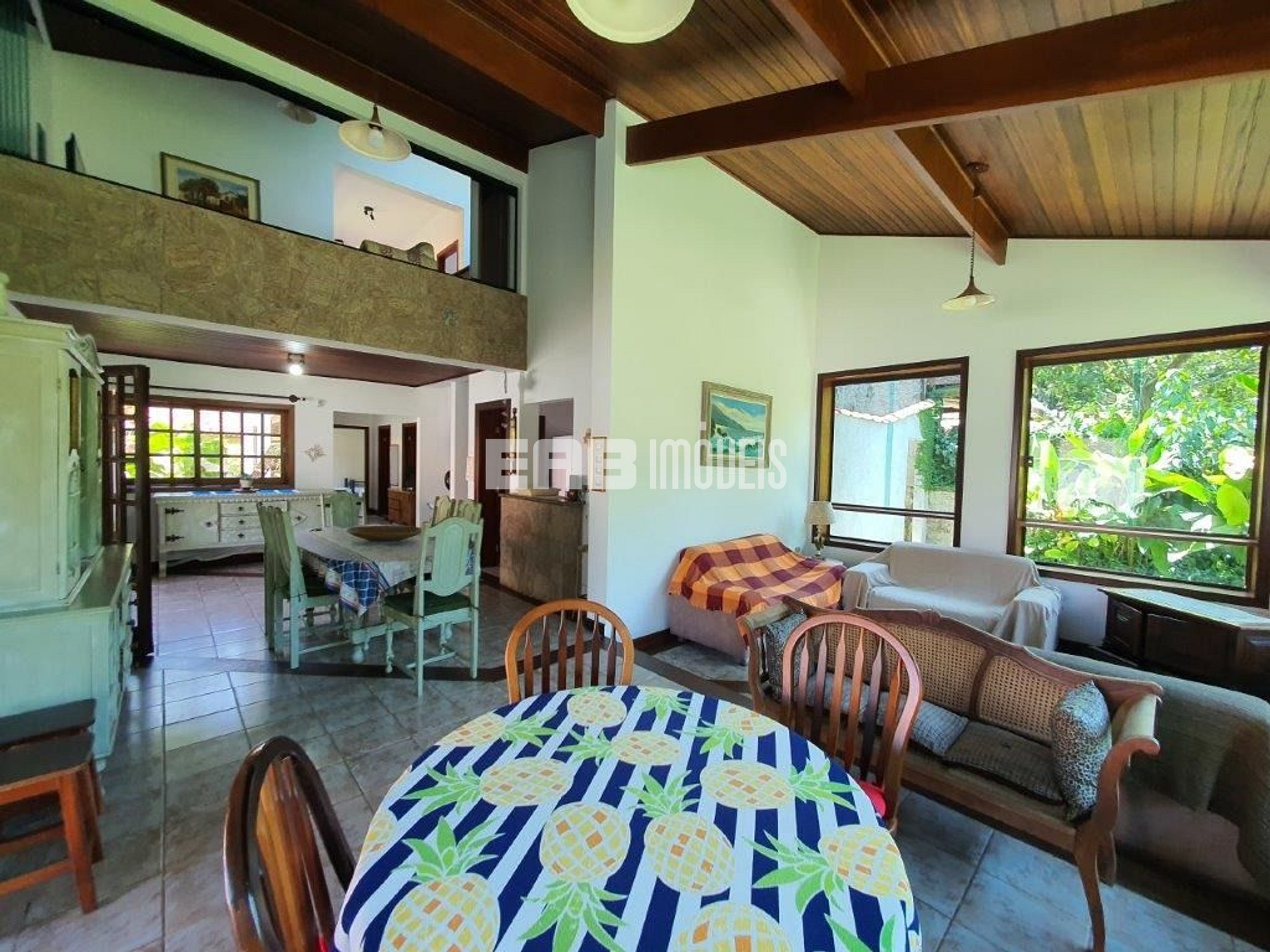 Casa ampla com 4 dormitórios, sendo 2 suítes. Sala com 2 ambientes, bem espaçosa. Cozinha equipada. Casa bem iluminada, com muito vidro e esquadrias de madeira.