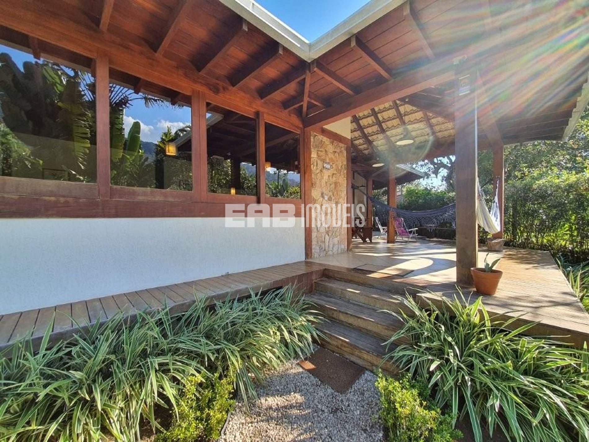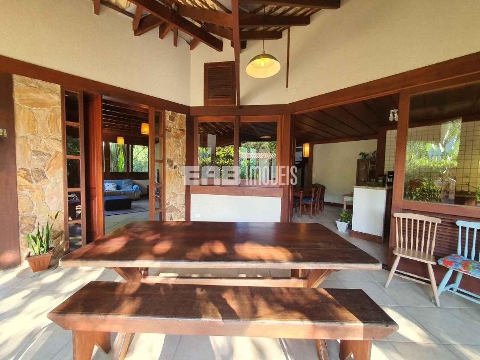 Casa de extremo bom gosto e bem projetada, com total integração da área social e muita privacidade na ala íntima. Suíte espaçosa no mezanino, com direito a agradável visual das árvores. Sala de estar, sala de jantar, cozinha e varanda conjugam-se e ampliam o uso dos espaços. Grandes janelas e portas-balcão de vidro iluminam a residência e trazem o verde do jardim para dentro.