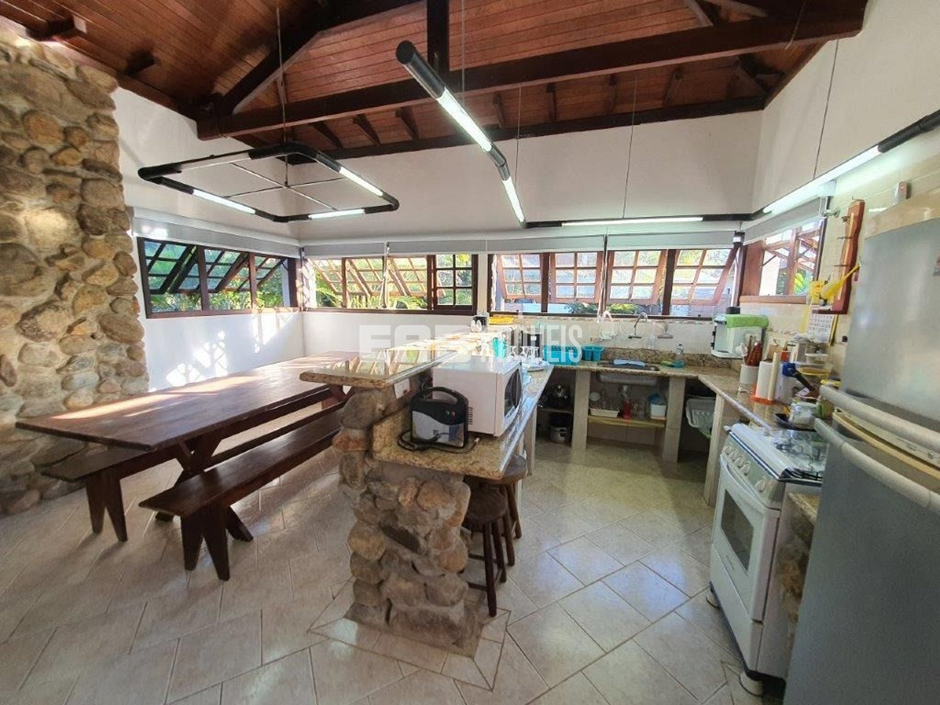 A apenas 260m da praia de Itamambuca, em frente à área verde. Conforto e descontração são as marcas dessa residência. O extenso gramado que rodeia a casa amplia a visão. Ar condicionado e ventilador de teto nos quartos garantem o bem-estar.