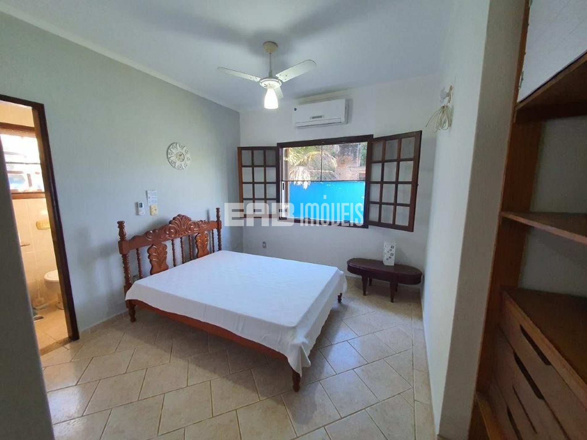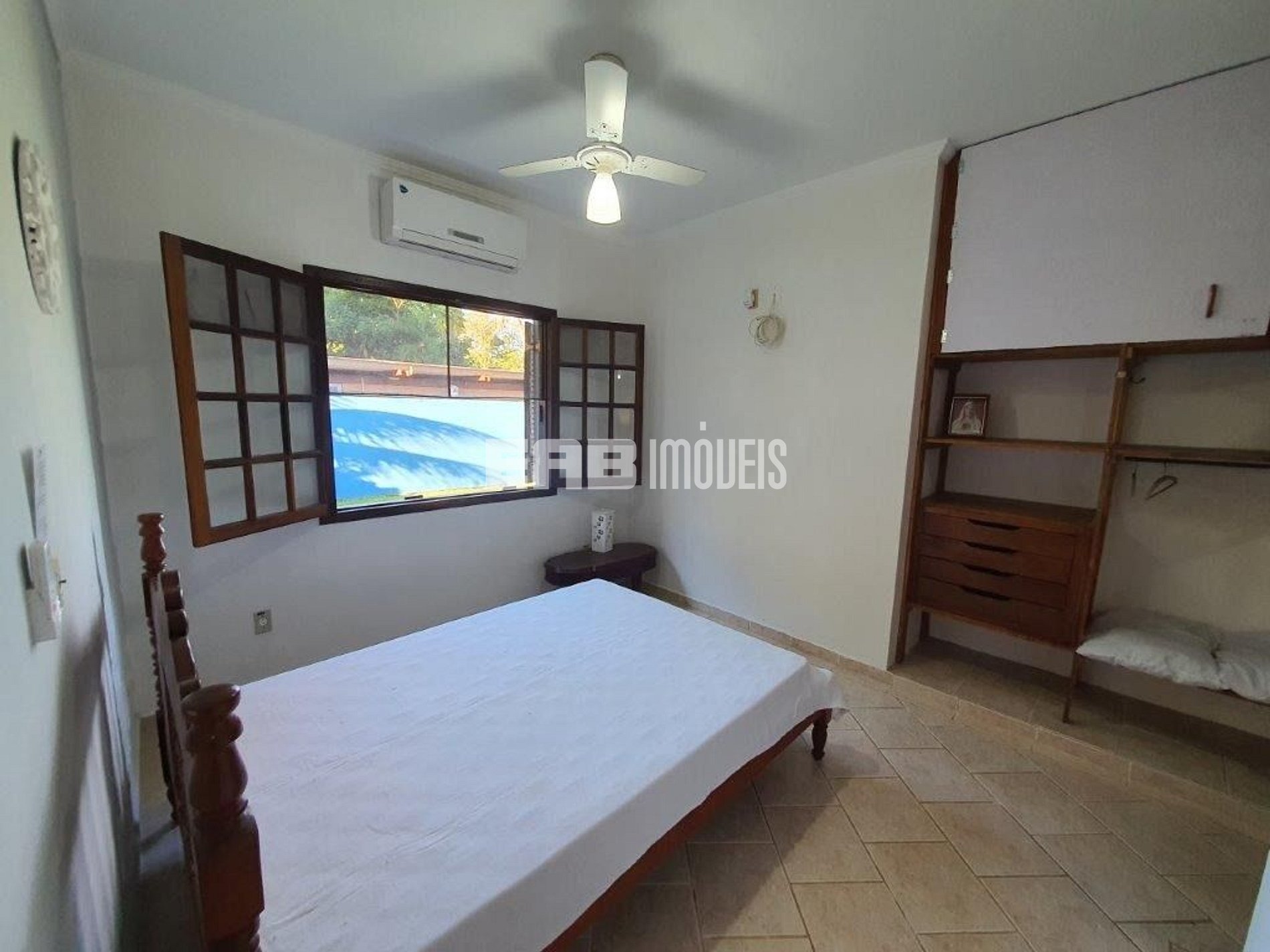 Quarto 1 (suíte): 1 cama de casal, ar condicionado, ventilador de teto