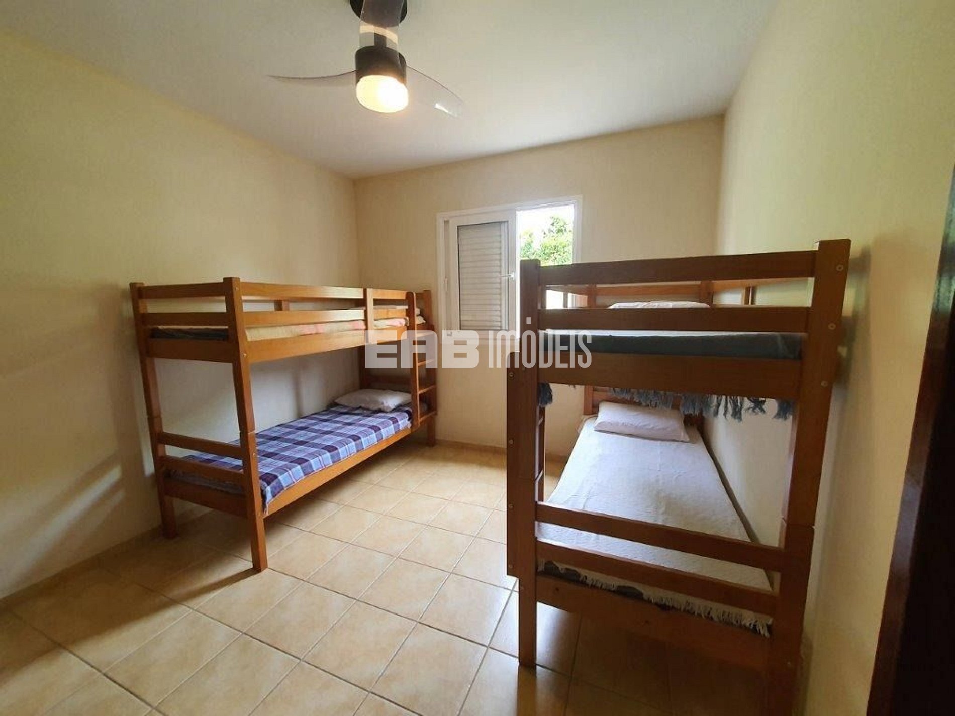 Quarto 1 (suíte americana): 2 beliches, ventilador de teto