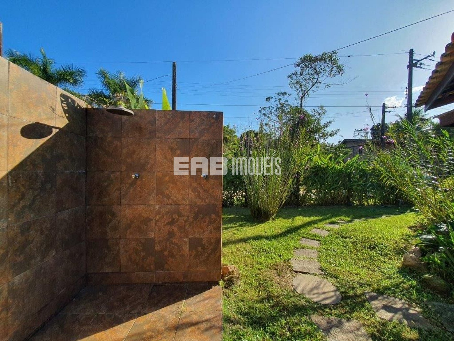 Casa próxima à praia e em frente à área verde. Cozinha integrada à sala. Varanda com redes, churrasqueira, fogão e forno a lenha. Jardim com paisagismo