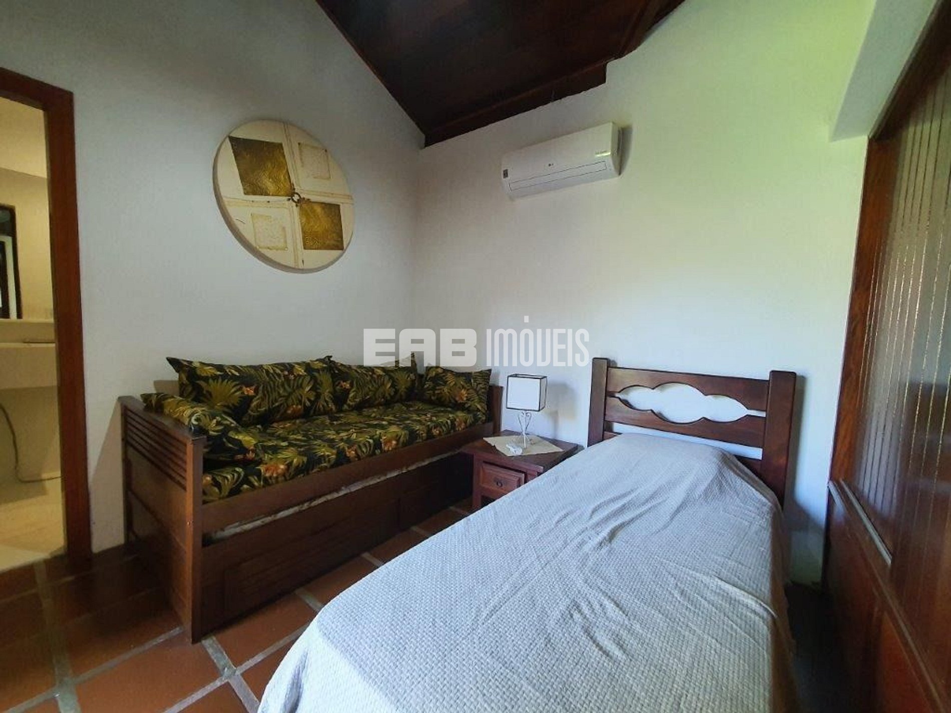 Quarto 2 (suíte): 2 camas de solteiro, 1 cama auxiliar de solteiro, ar condicionado