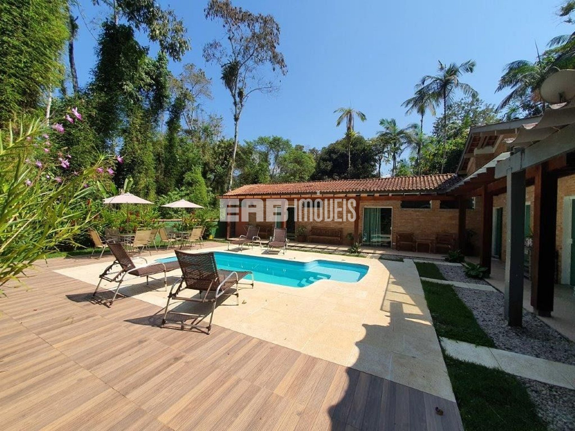 A mata ao redor é o grande destaque desta casa super bem decorada, iluminada, ampla, com piscina, muito conforto e tranquilidade. Localizada a cerca de 730m da praia de Itamambuca, dentro do condomínio, é rodeada por mata atlântica nativa, o que confere ainda mais charme a este recanto.