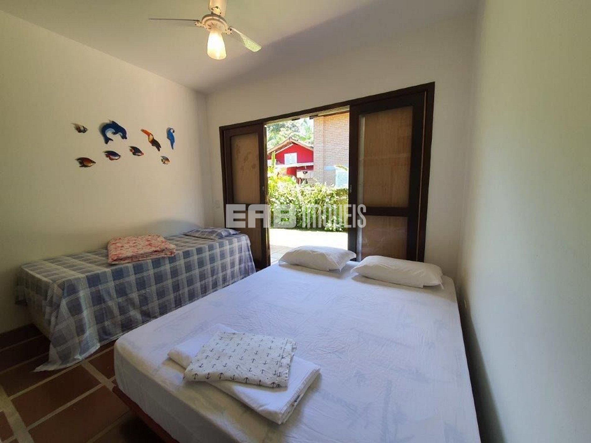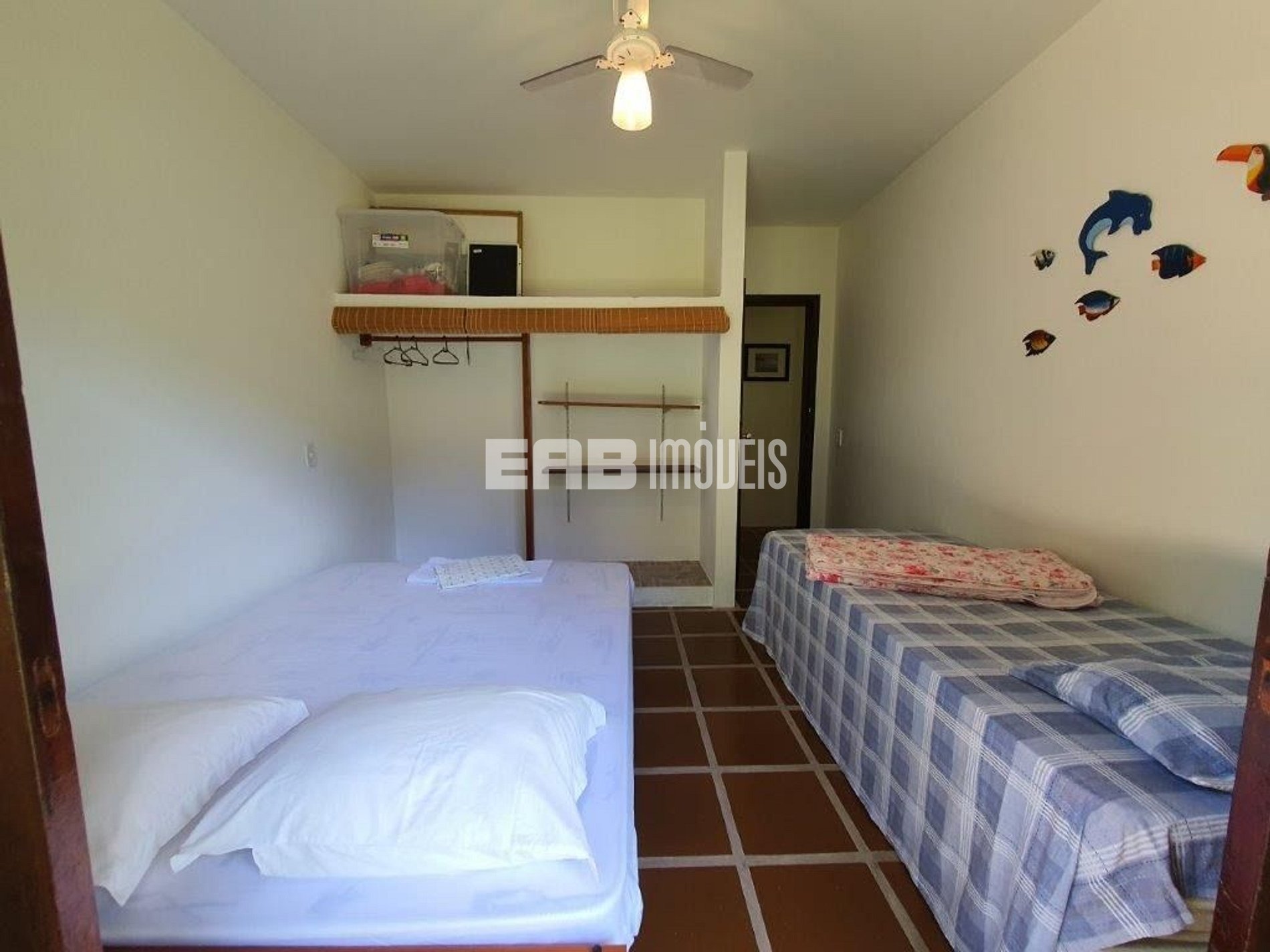 Quarto 3: 1 cama de casal, 1 cama de solteiro, ventilador de teto