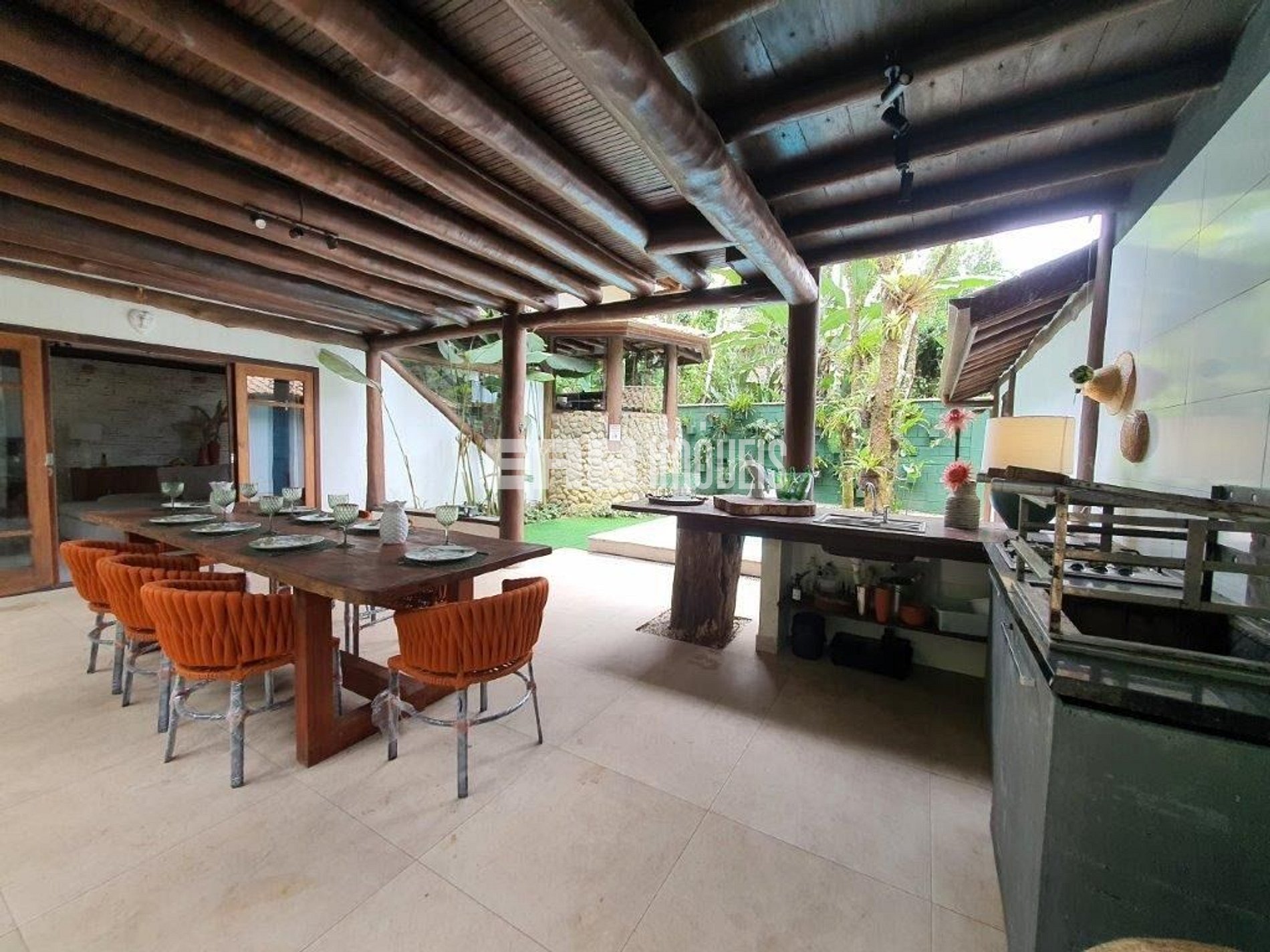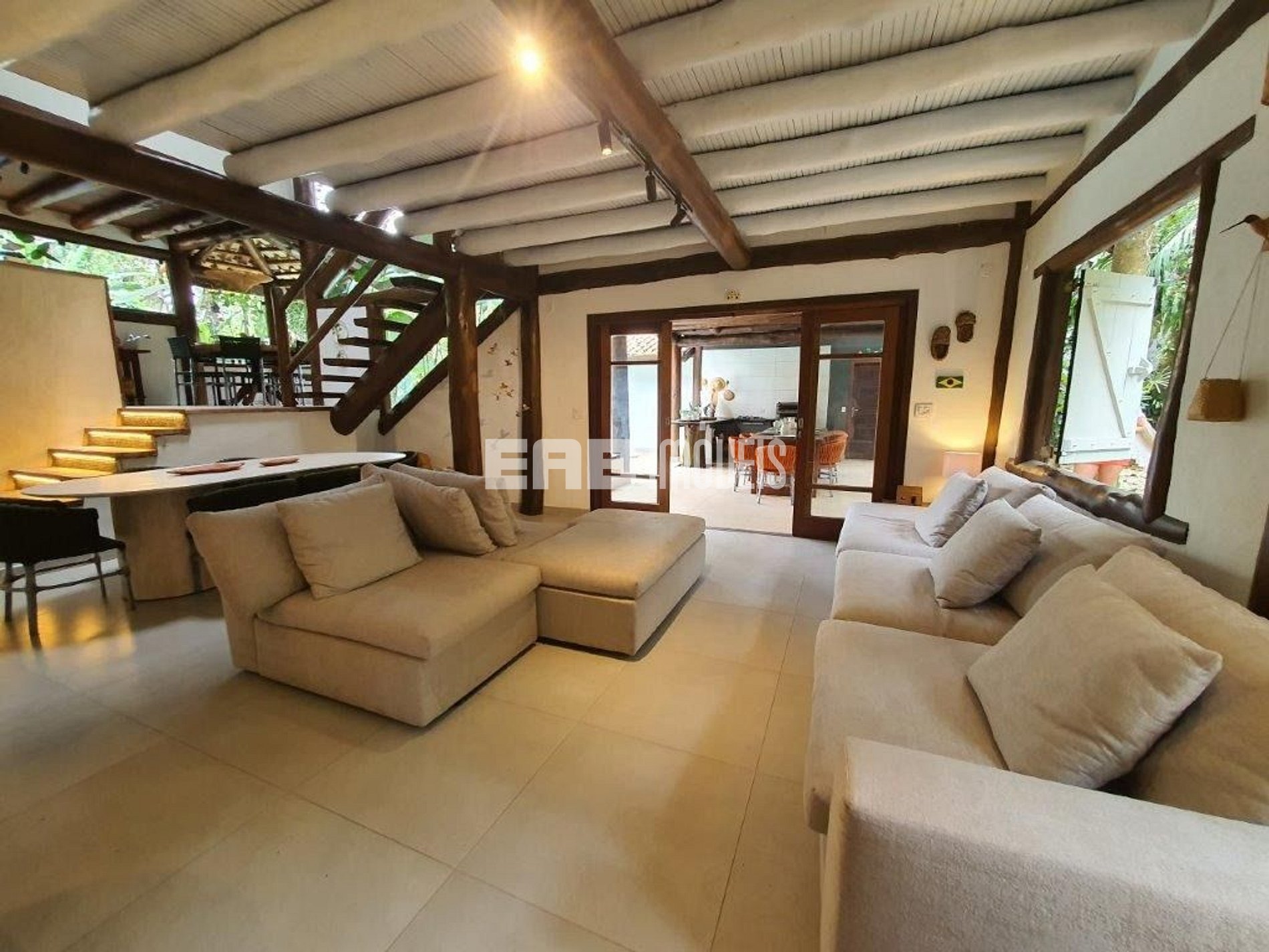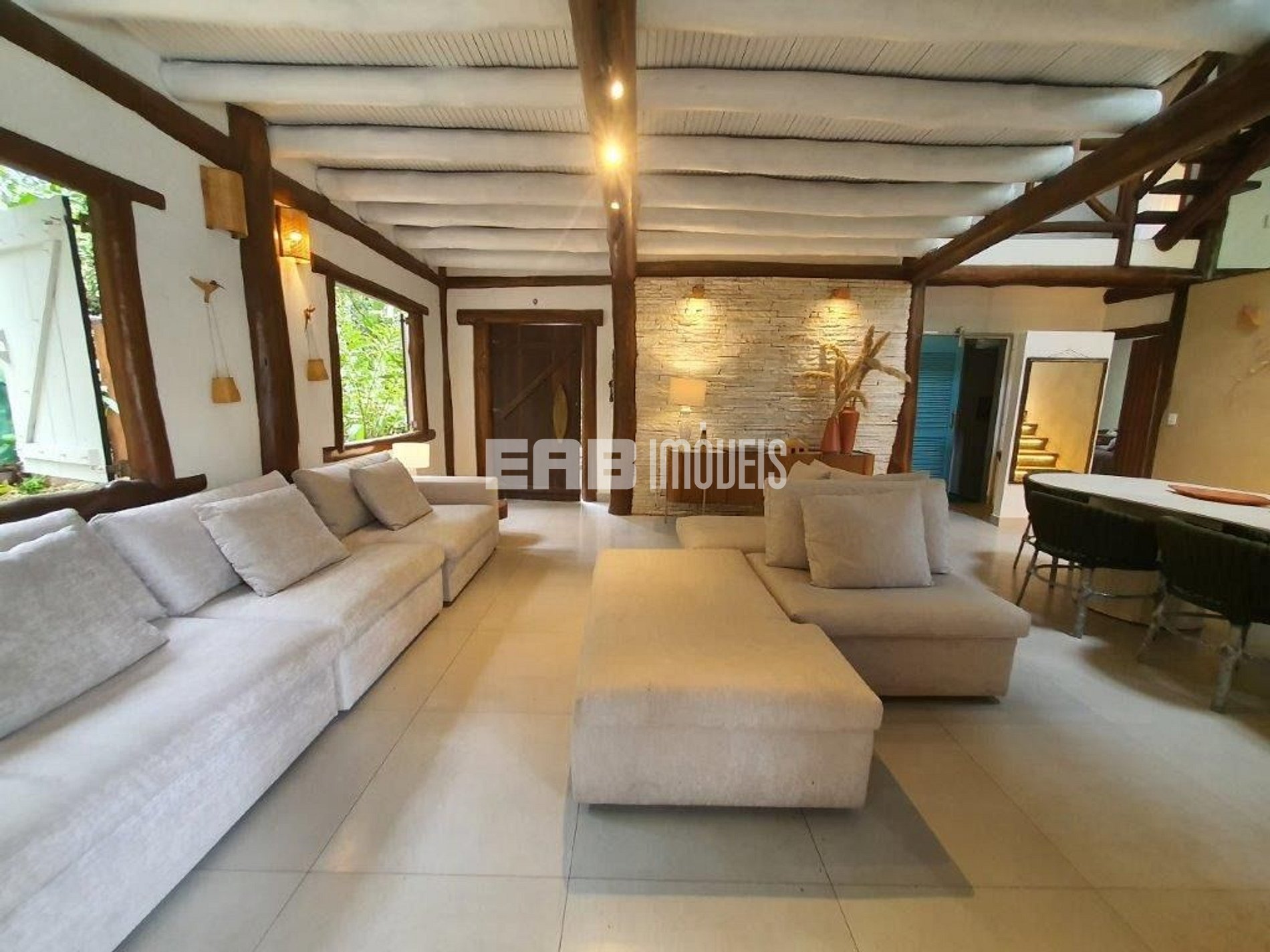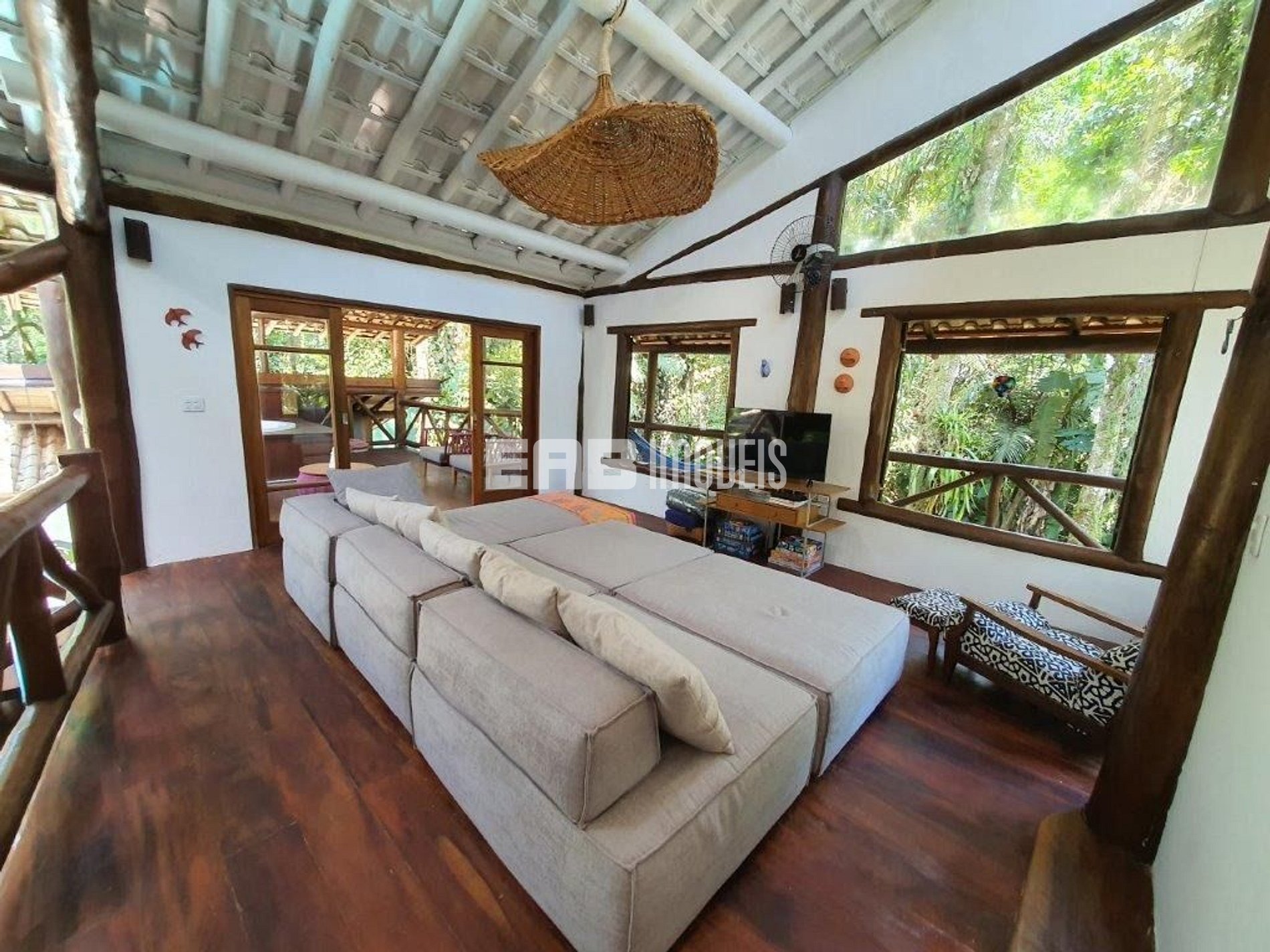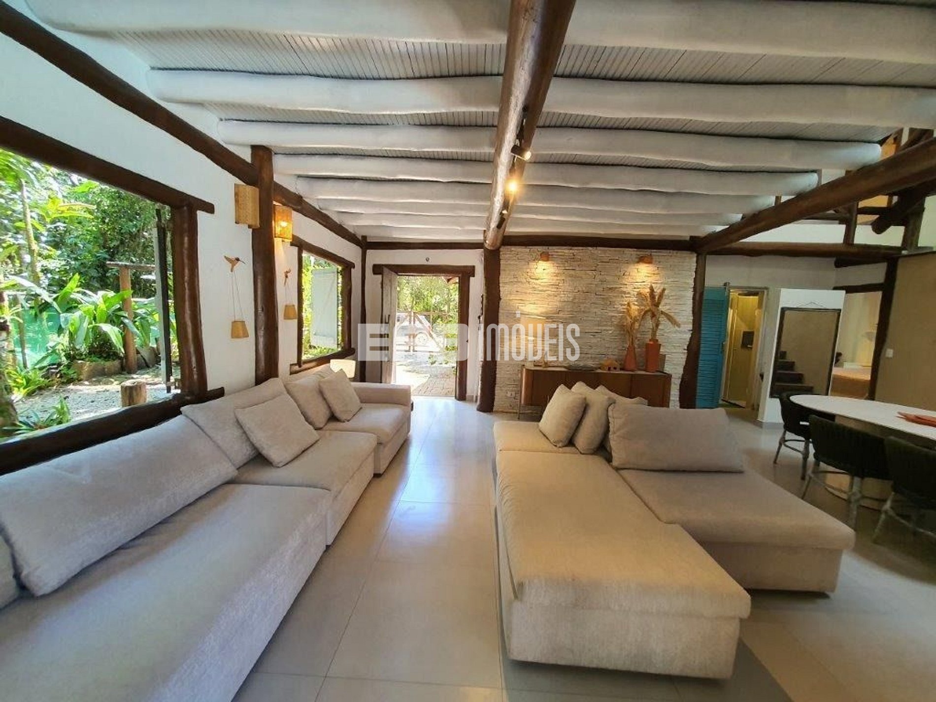 Casa em rua par, na Praia de Itamambuca, cercada de muito verde, ideal para quem busca conforto e sossego. São 6 dormitórios, sendo 3 suítes e 2 suítes americana (dois quartos dividem um banheiro), além de banheiro social completo.