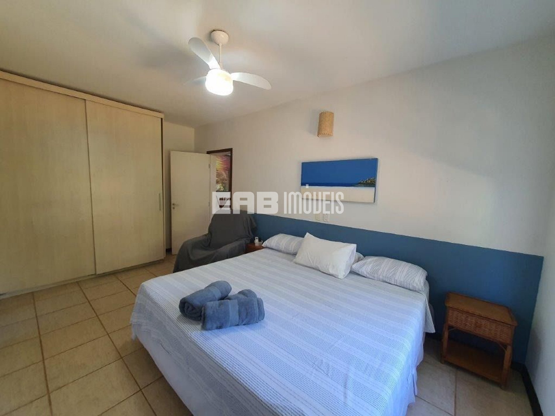 Quarto 1 (suíte): 1 cama de casal king, ventilador de teto, ar condicionado