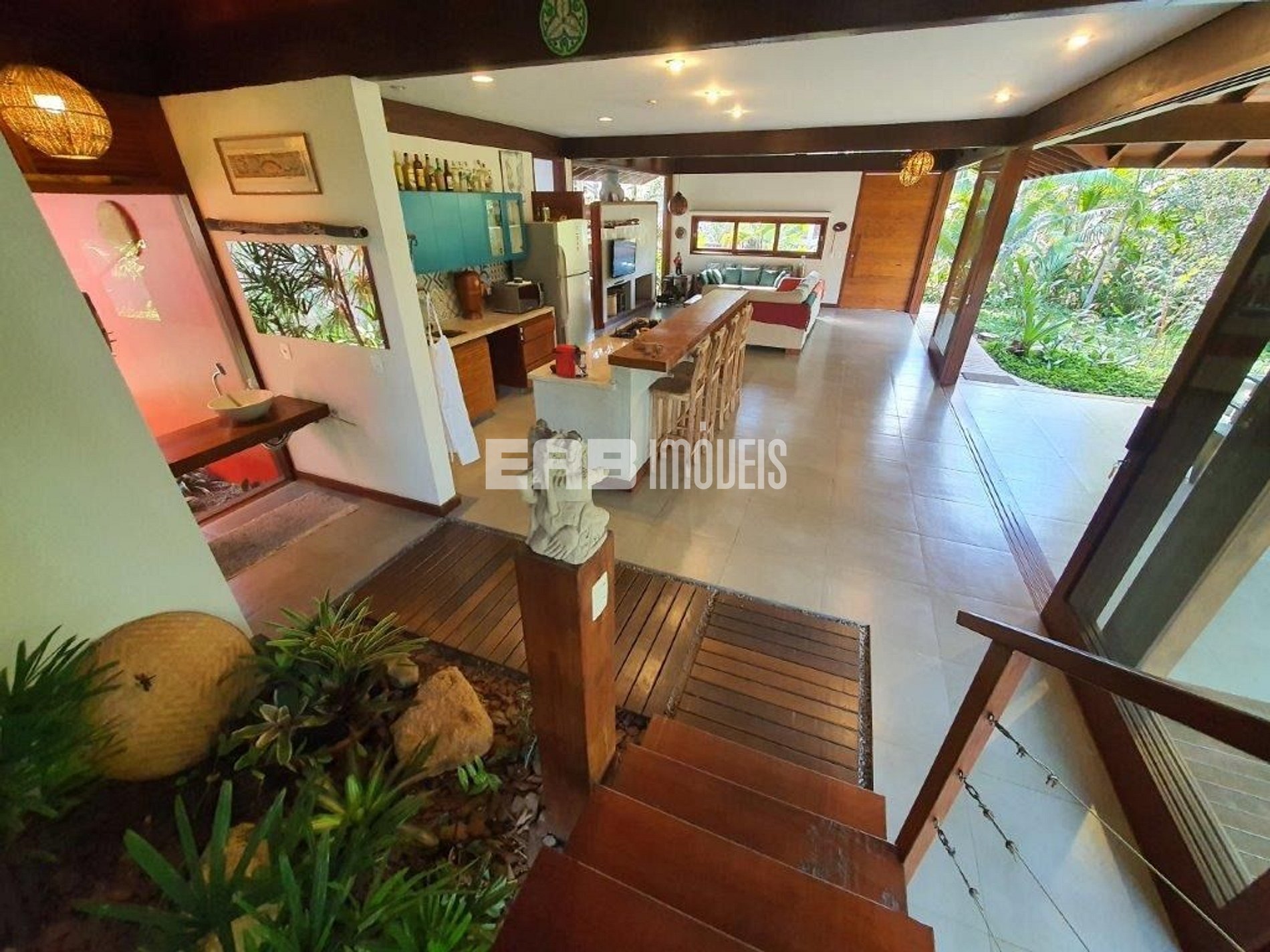 A casa é linda, decorada com bom gosto, muito confortável. O projeto preocupa-se em integrar as áreas sociais e manter resguardada a ala íntima. Sala, cozinha de estilo americano e espaço gourmet formam um só corpo. Basta recolher as amplas esquadrias de madeira e vidro para poder abrir a casa por inteiro. O jardim está sempre presente.