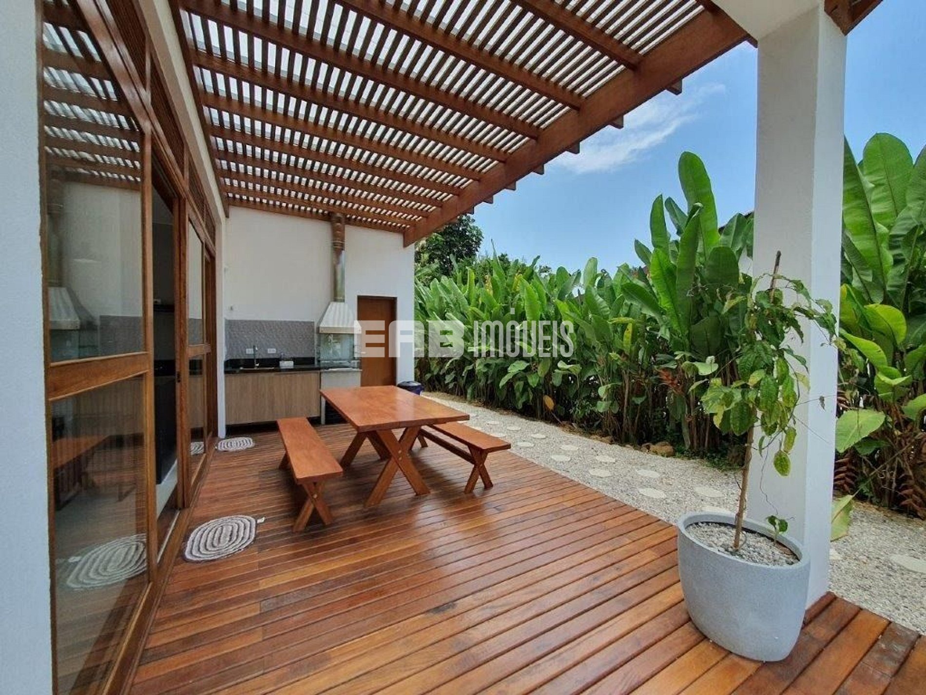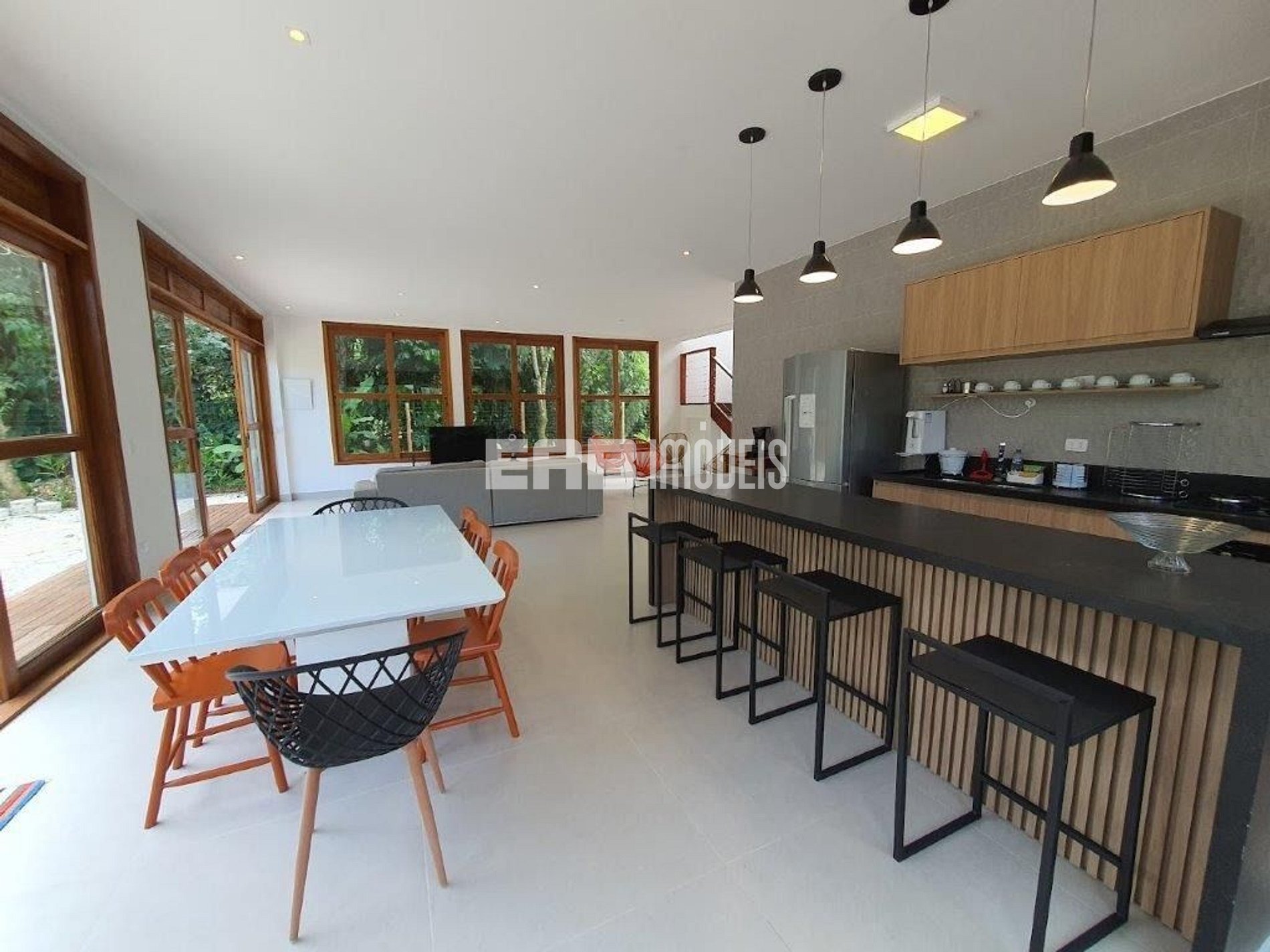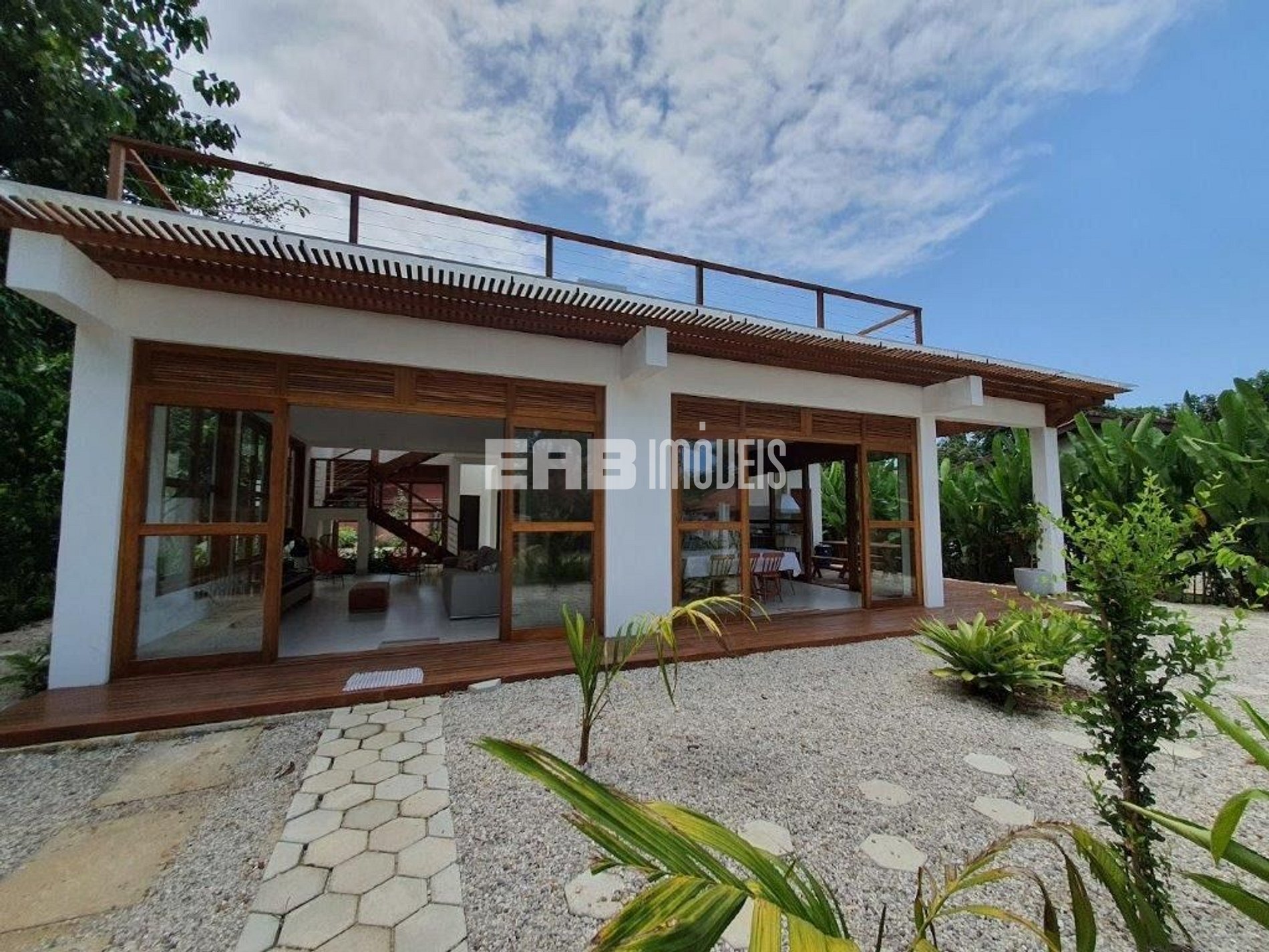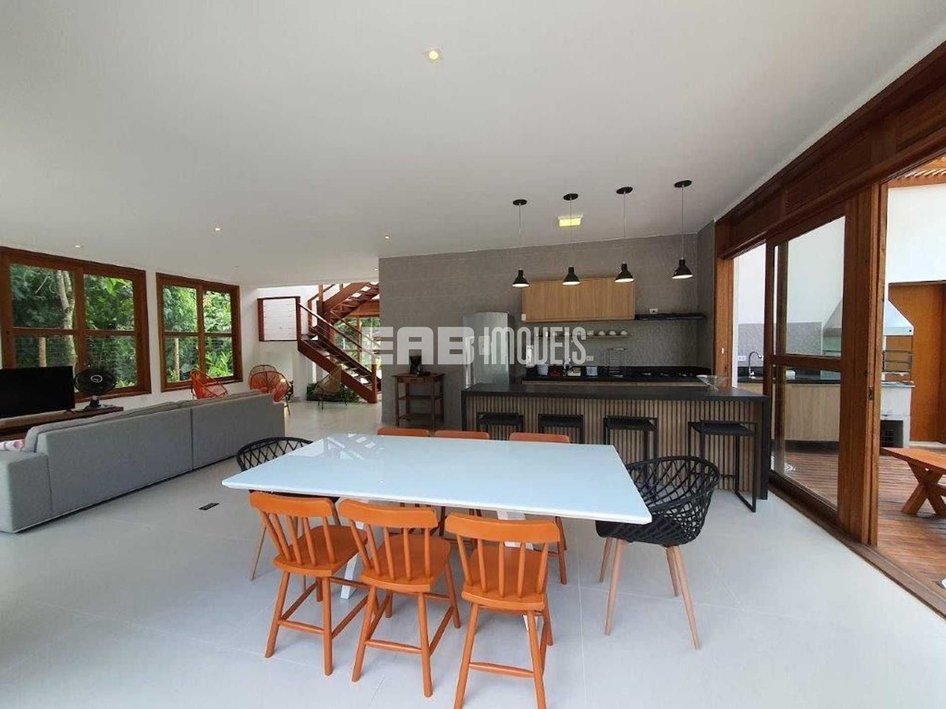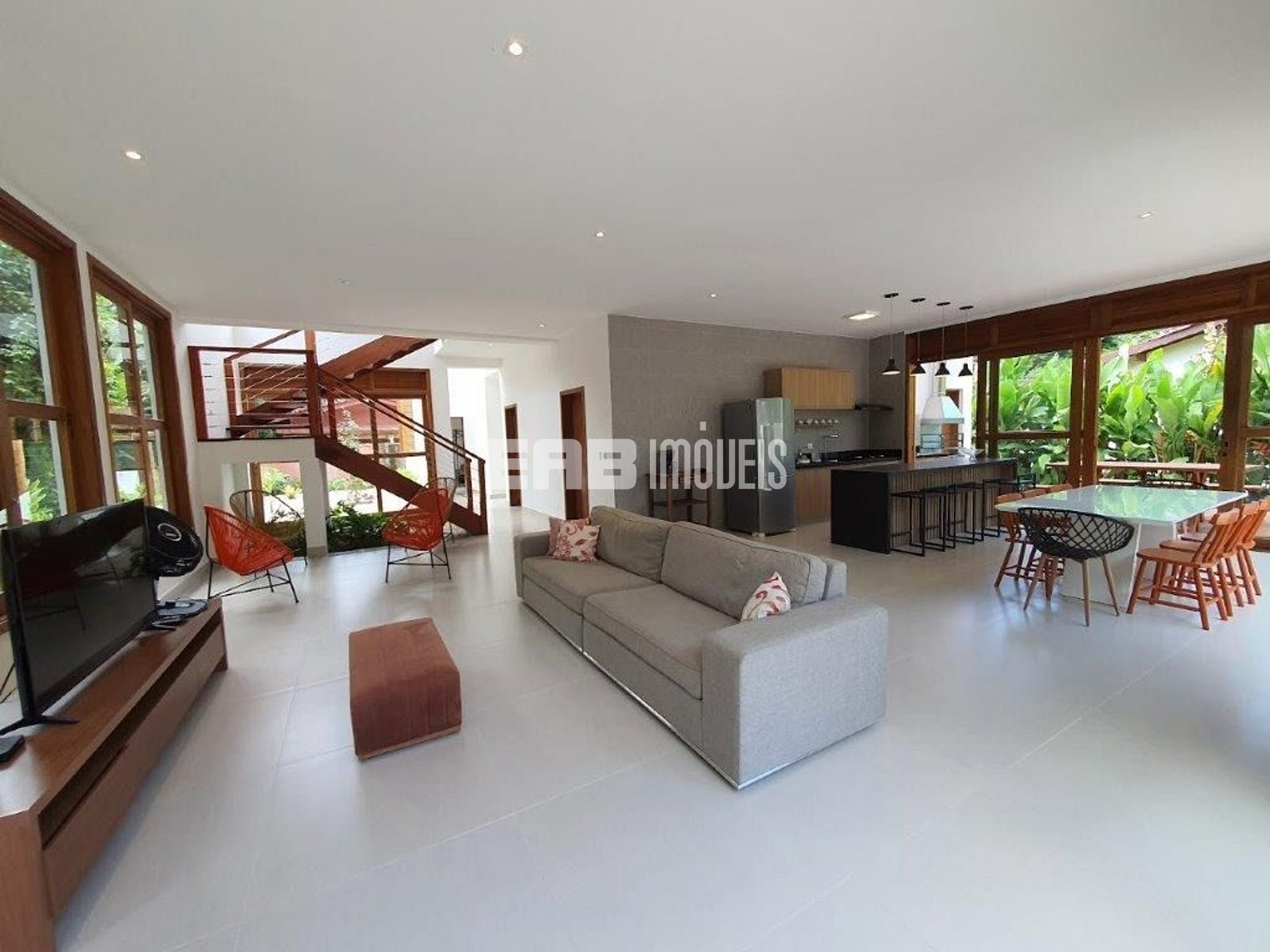 Casa a cerca de 400m da praia de Itamambuca, com 4 suítes, muita luz natural e total integração.