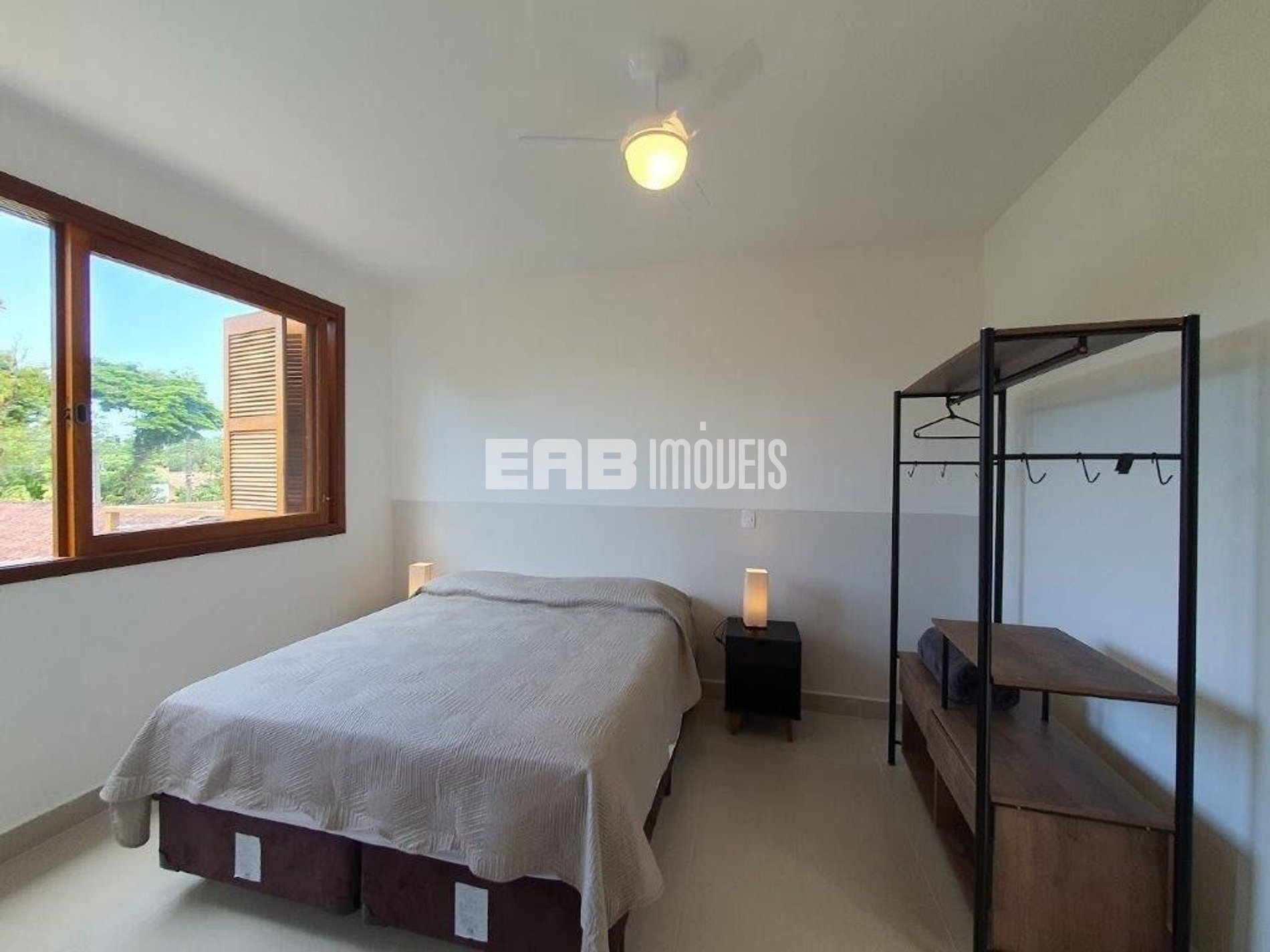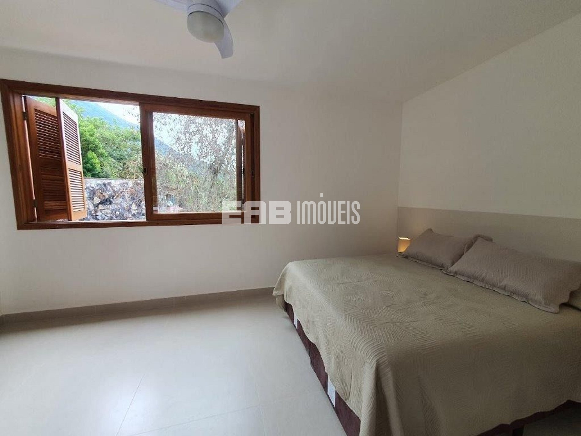 Quarto 2 (suíte): 1 cama de casal padrão, ventilador de teto