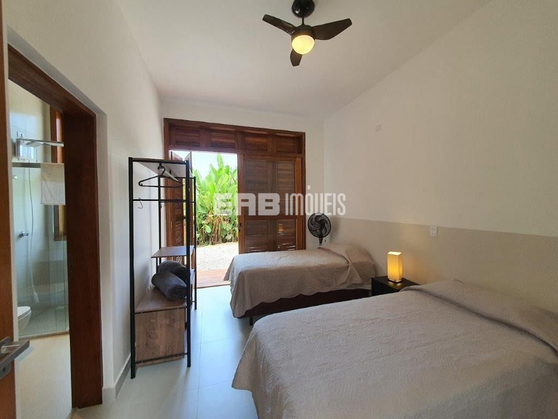 Quarto 3 (suíte): 2 camas de solteiro, ventilador de teto