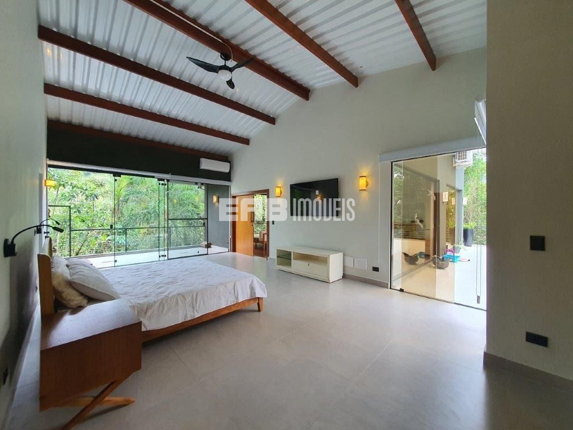 Quarto 3 (suíte): 1 cama de casal king, ventilador de teto, ar condicionado