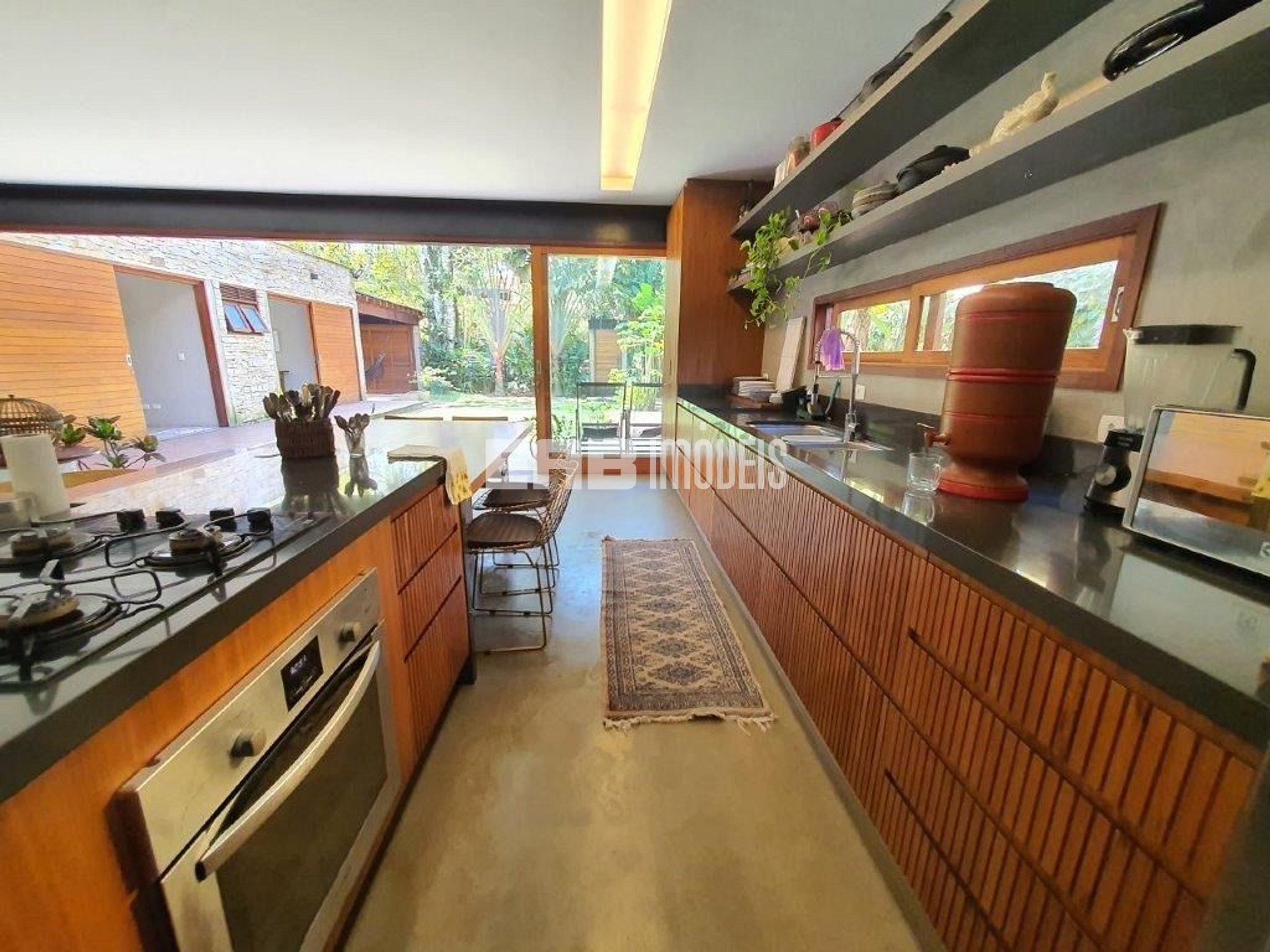 Casa absolutamente contemporânea, com amplos espaços e grandes vãos, que integram os ambientes, trazem luz e ventilação naturais e permitem a contemplação do jardim de onde quer que se esteja.