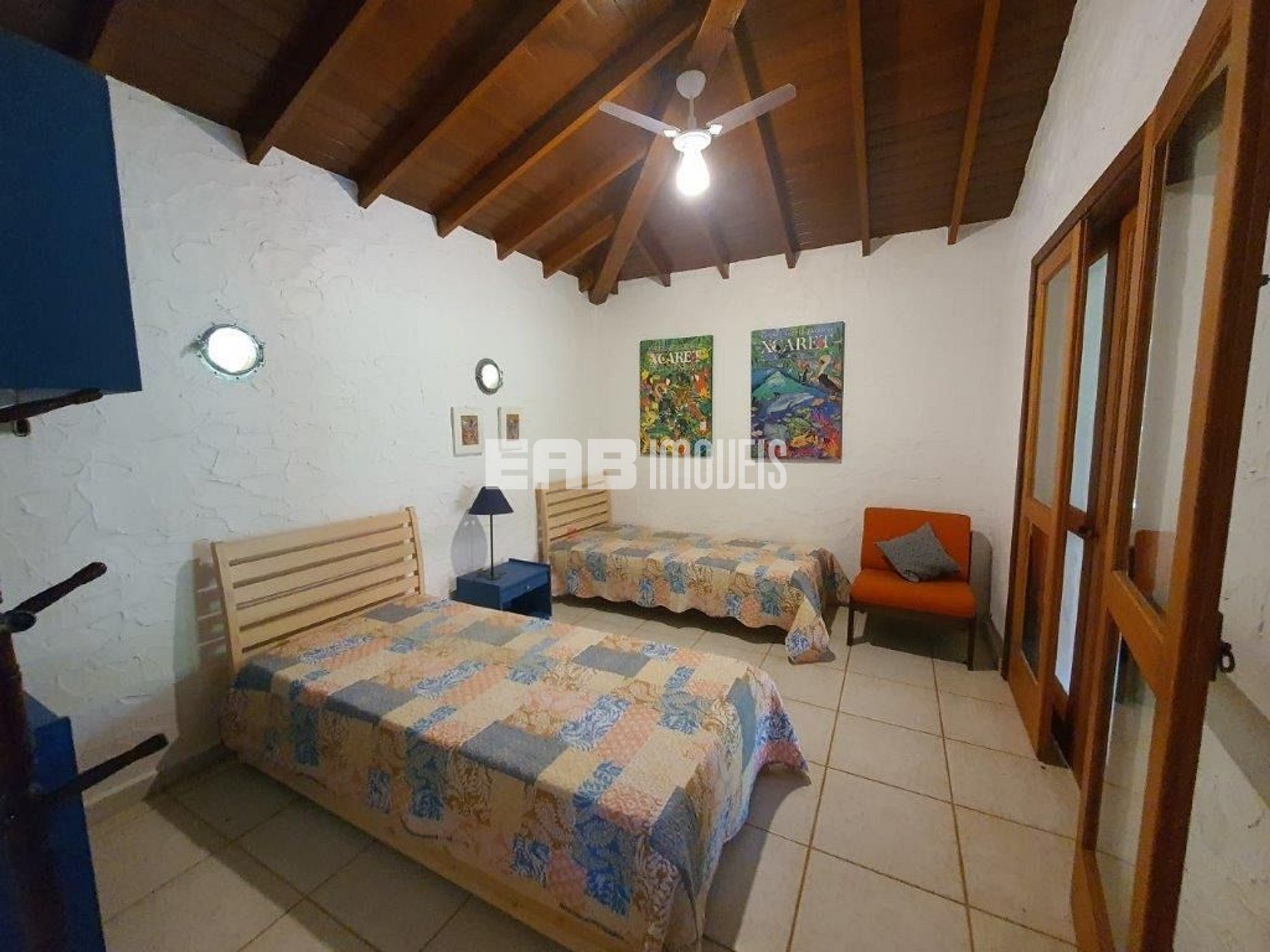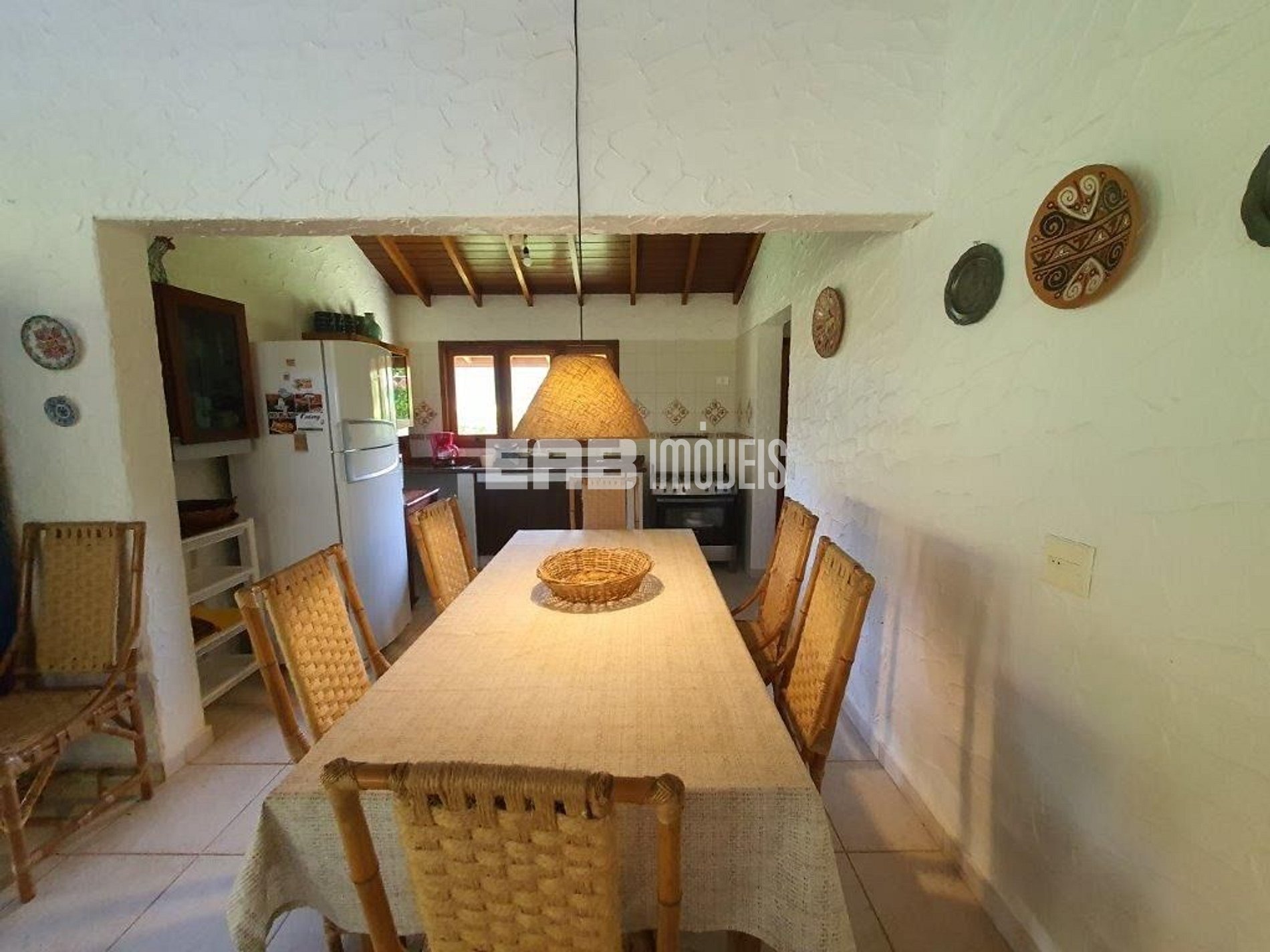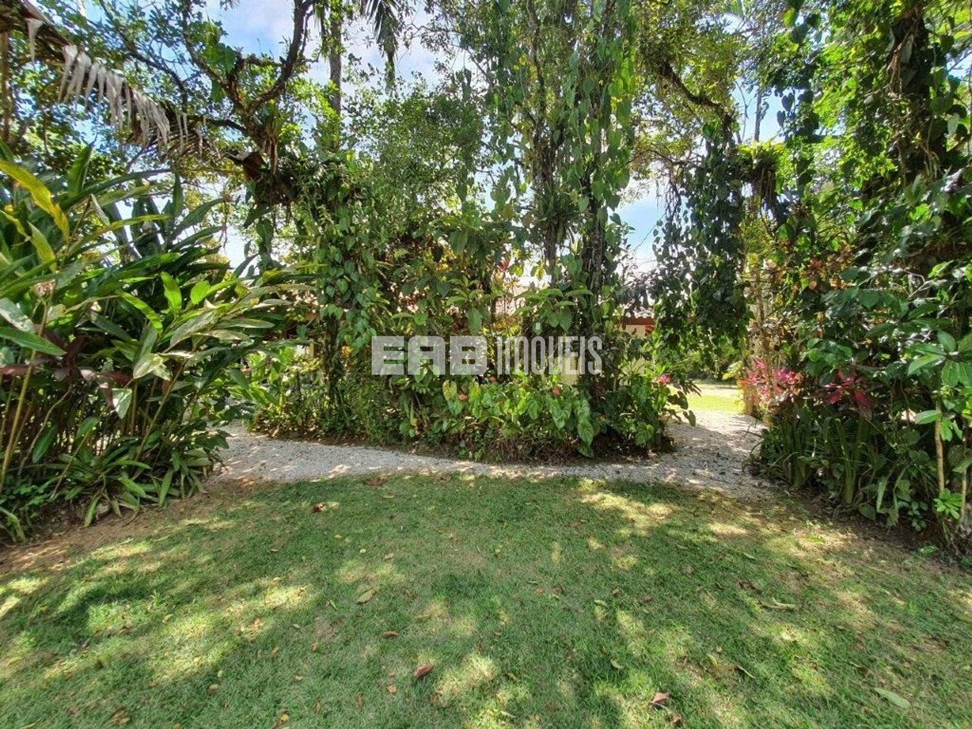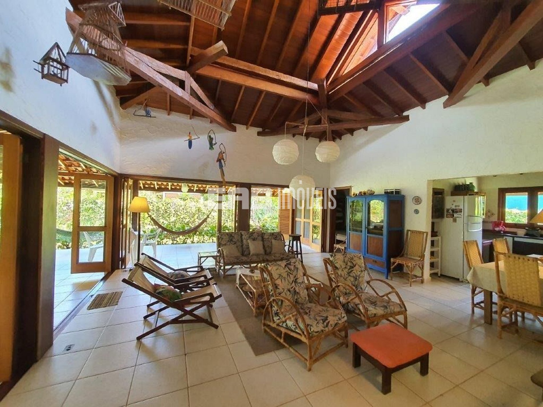 Agradável casa de praia, em frente à área verde, com ampla varanda, aberta para o jardim. Projeto arquitetônico integrado à vegetação.