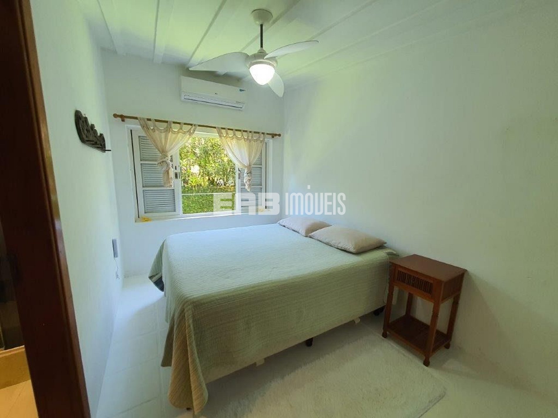 Quarto 2 (suíte): 1 cama de casal queen, ventilador de teto, ar condicionado