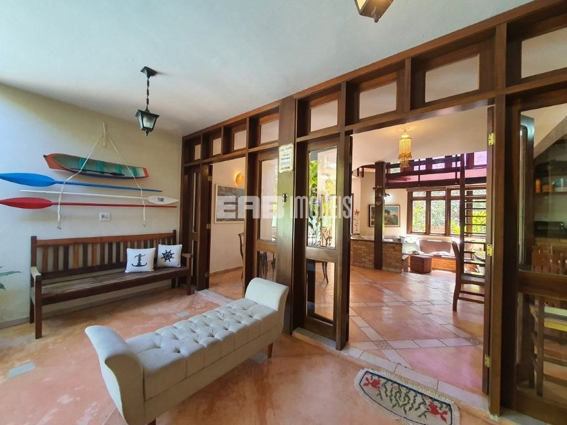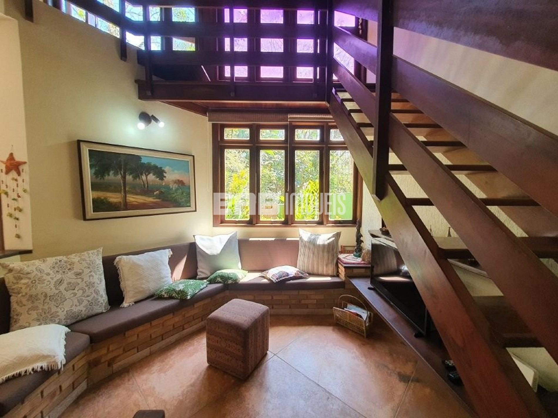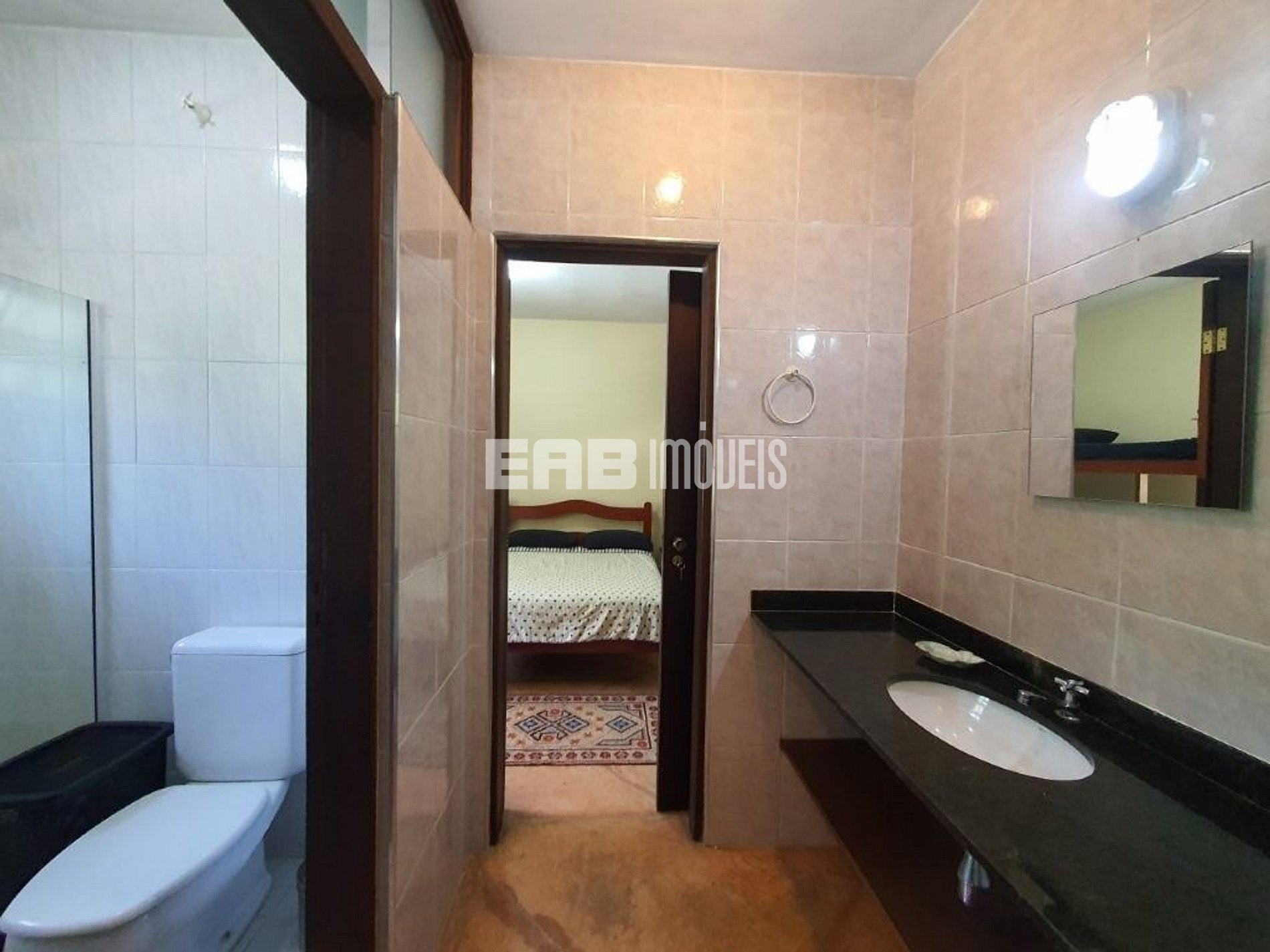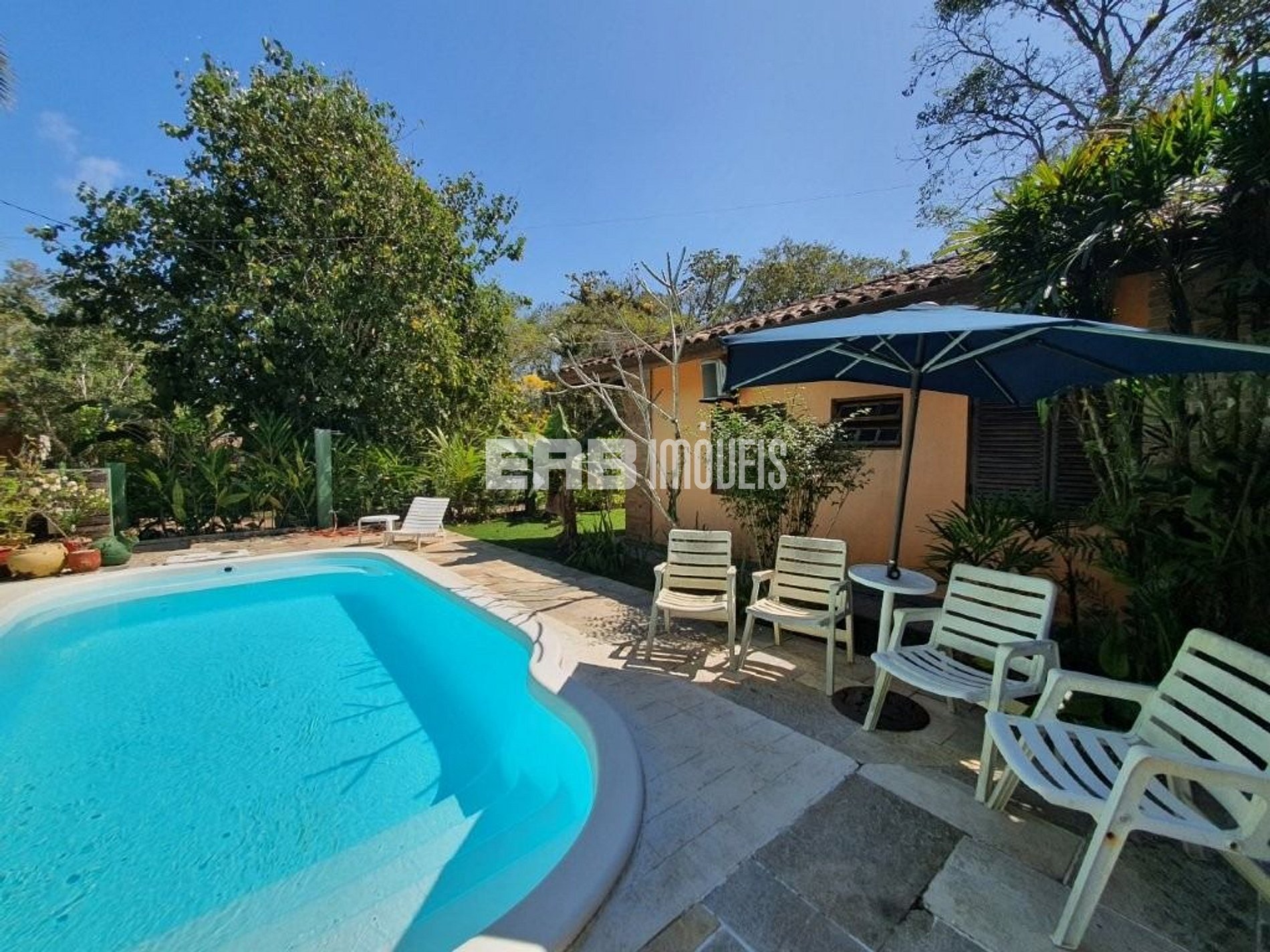 Casa com cinco dormitórios, sendo 1 suíte e 2 suítes americanas, piscina, área gourmet com churrasqueira e forno de pizza, mezanino com mesas de bilhar e ping-pong, além de um agradável e colorido jardim.