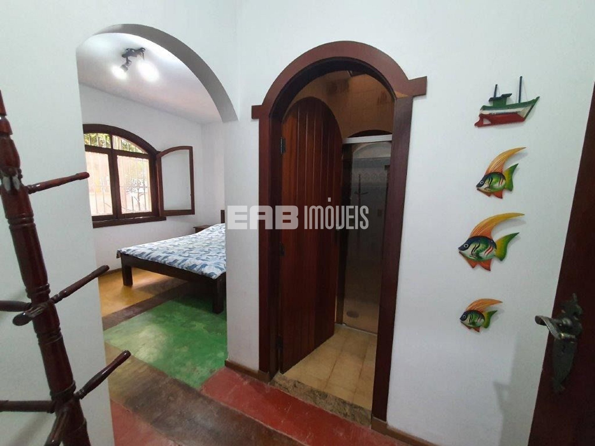 Quarto 4 (Suíte): 1 cama de casal padrão, 1 ventilador de teto