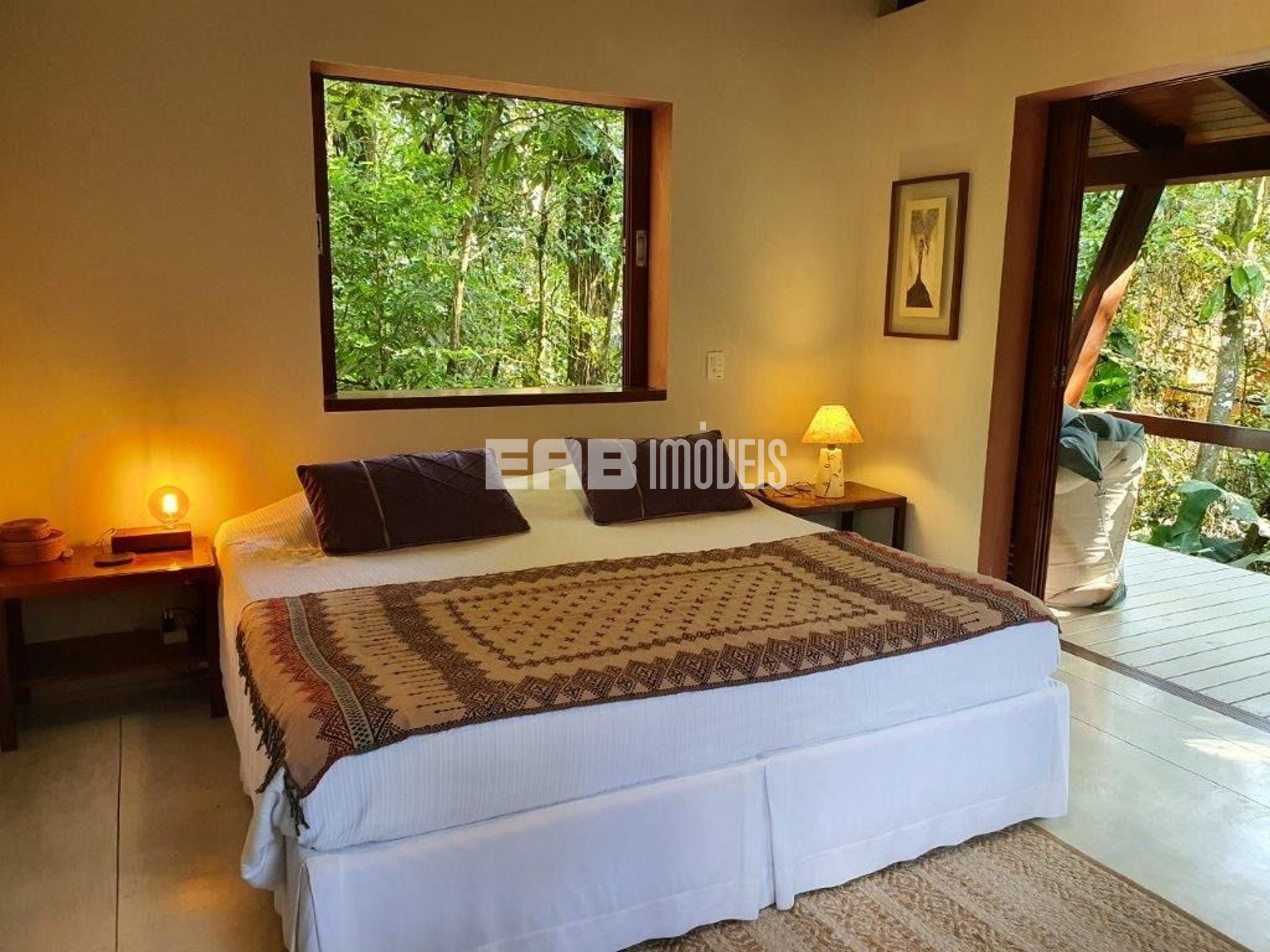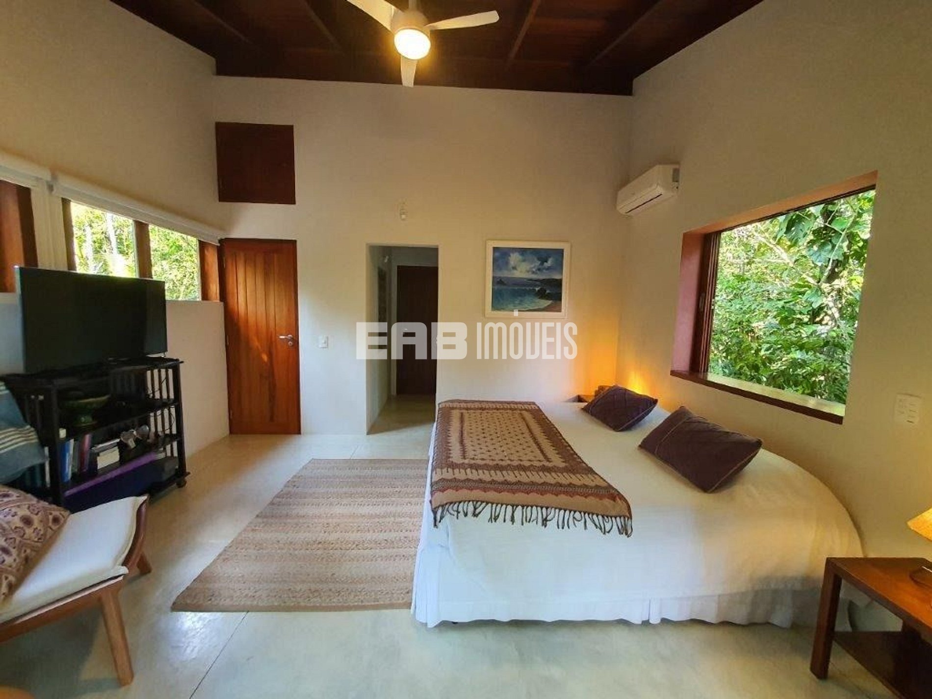 Quarto 1 (suíte): 1 cama de casal king, ventilador de teto, ar condicionado.