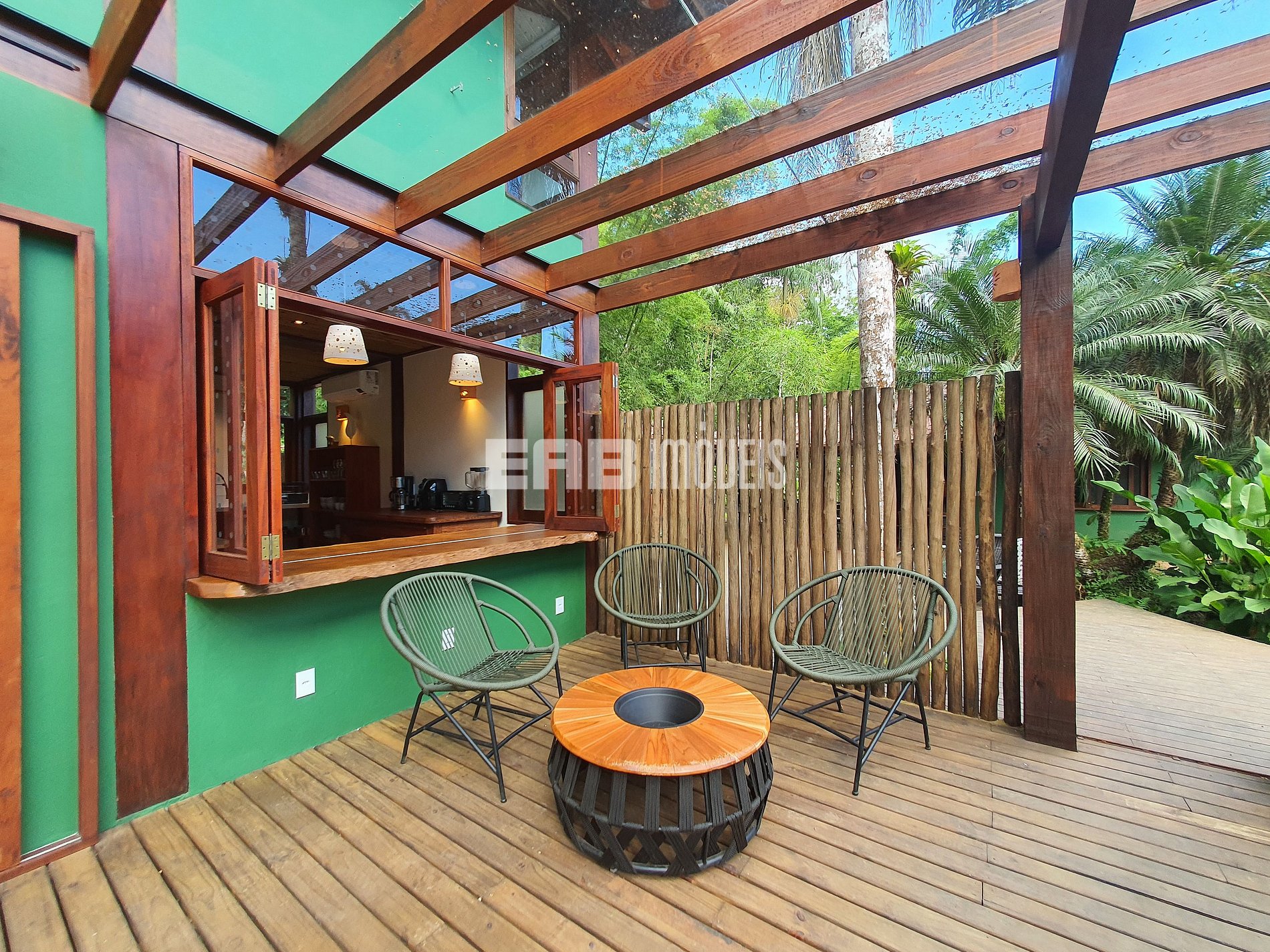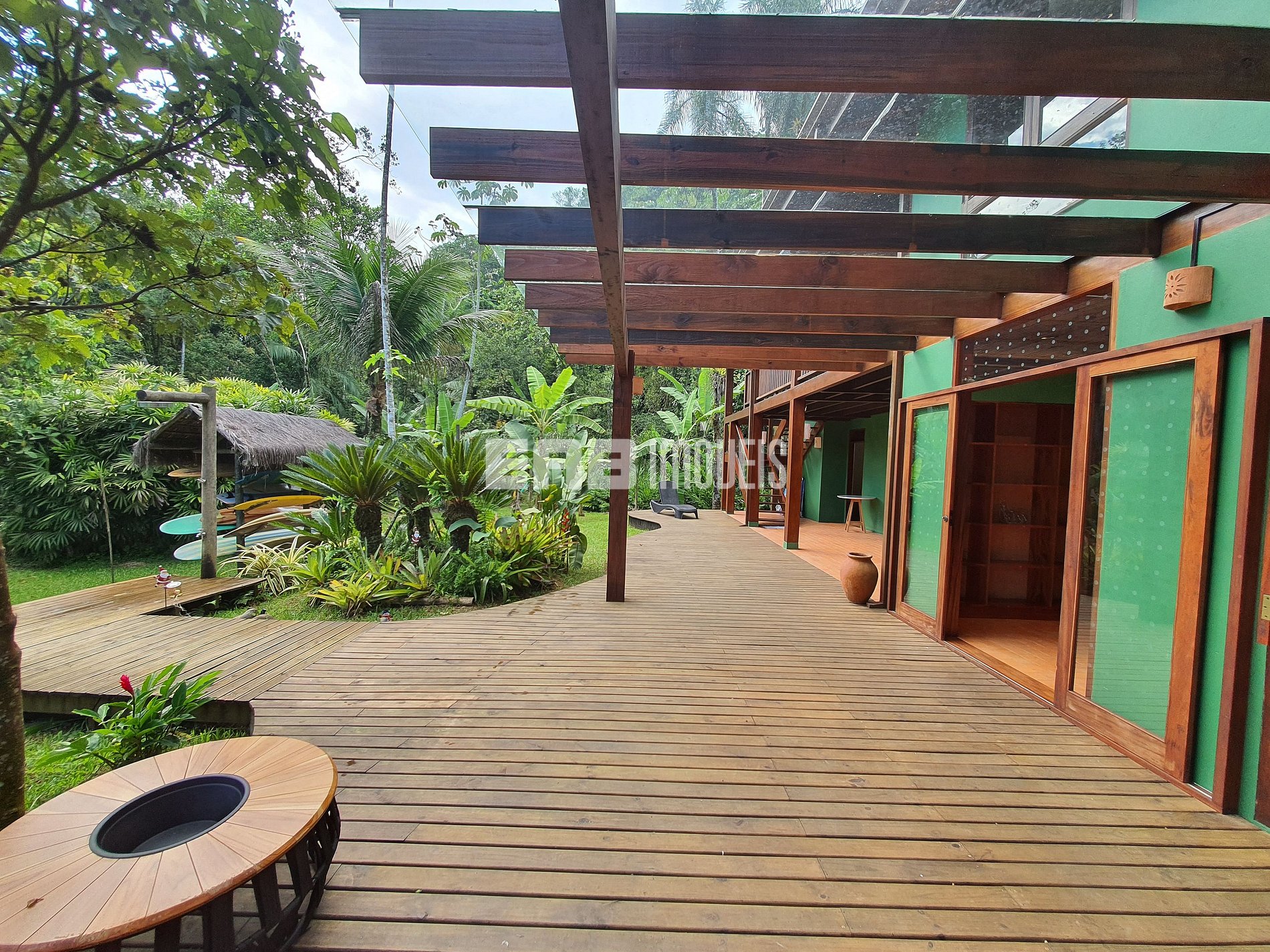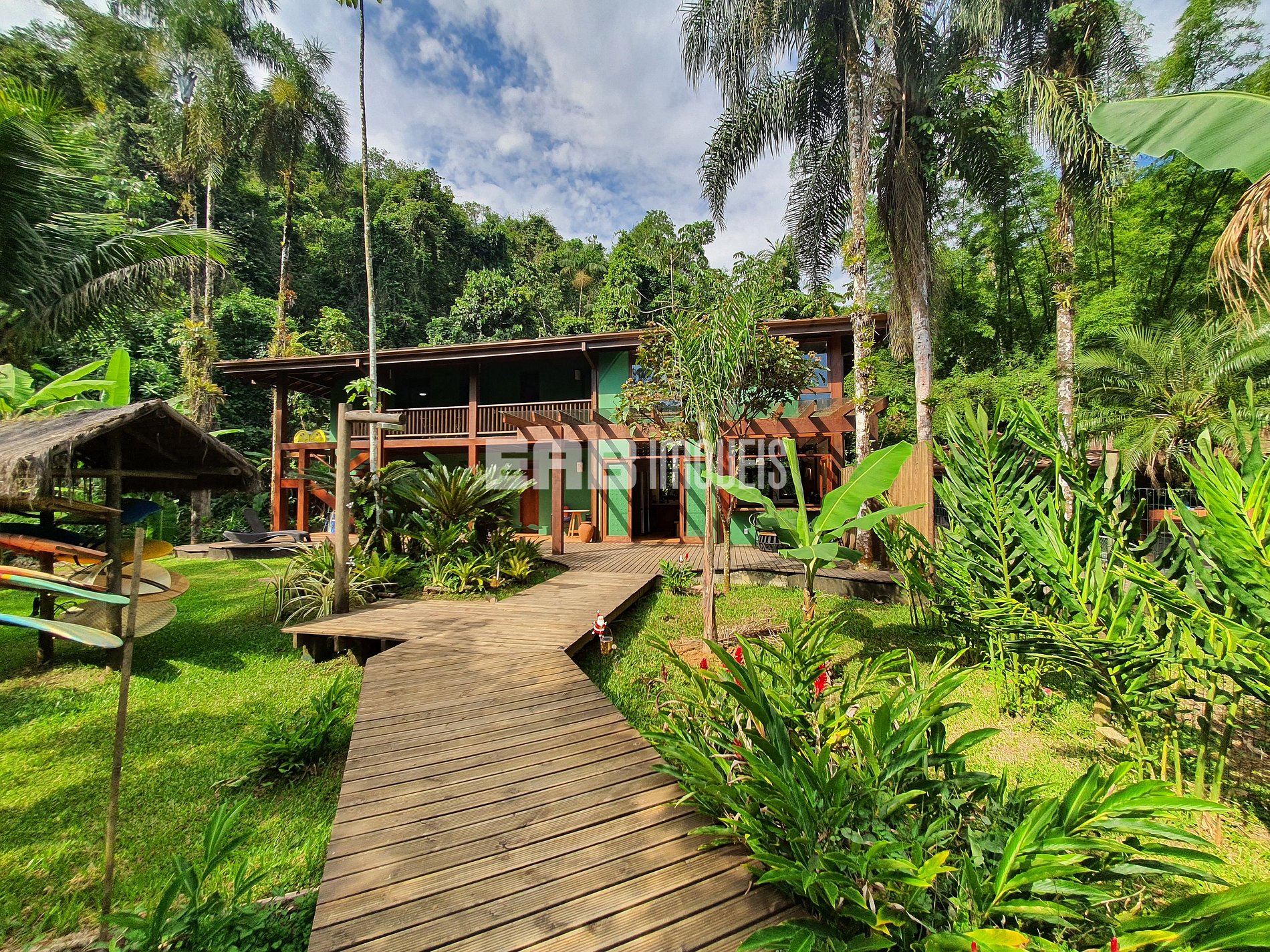 Em um verdadeiro refúgio de Itamambuca, esta casa garante o sossego em meio à natureza. O espaço conta com 5 suítes com ar condicionado, cozinha, sala de estar, churrasqueira compartilhada e um amplo terreno com trilhas levando à cachoeira. Aqui o vizinho é a exuberante Serra do Mar!