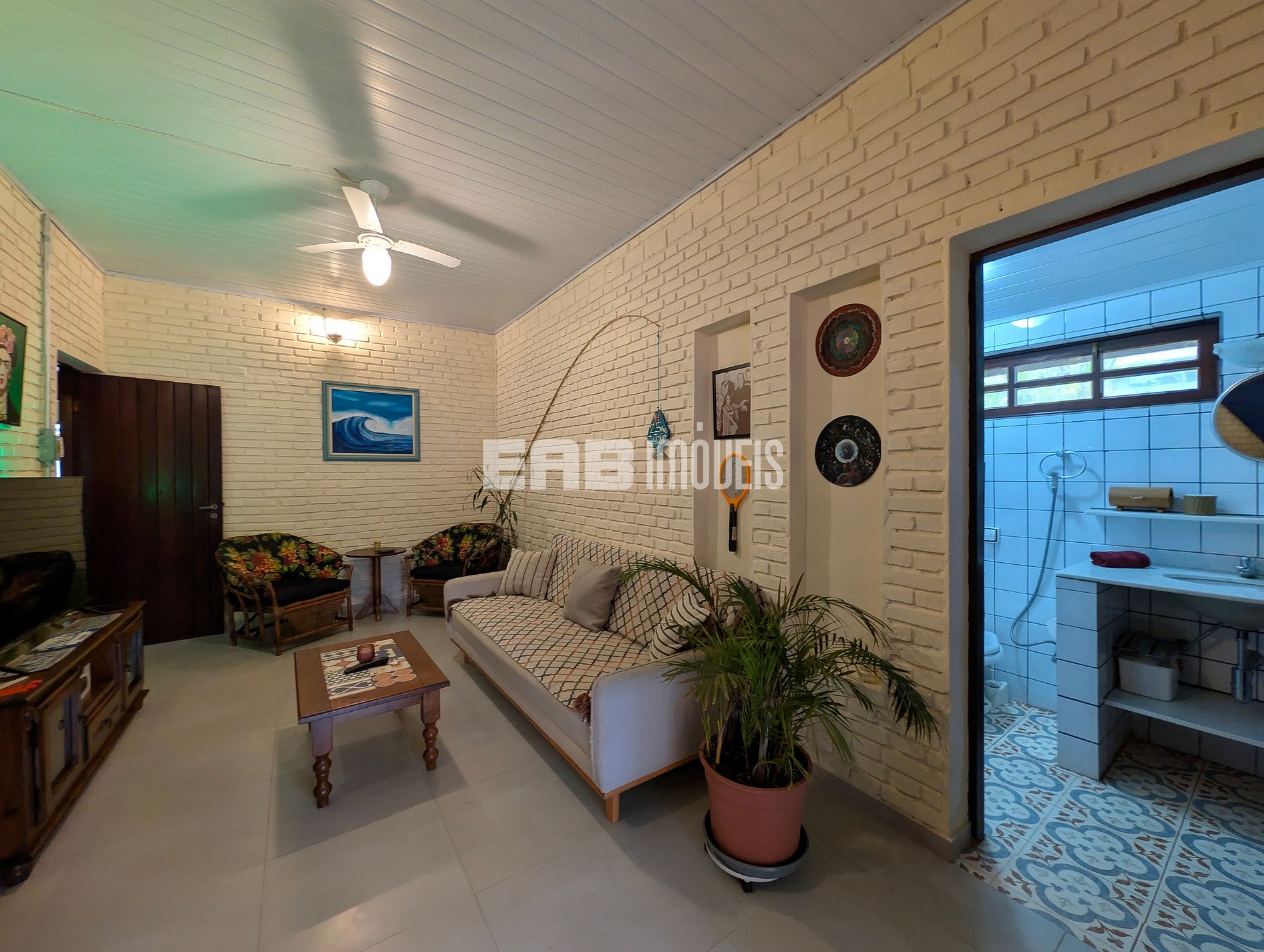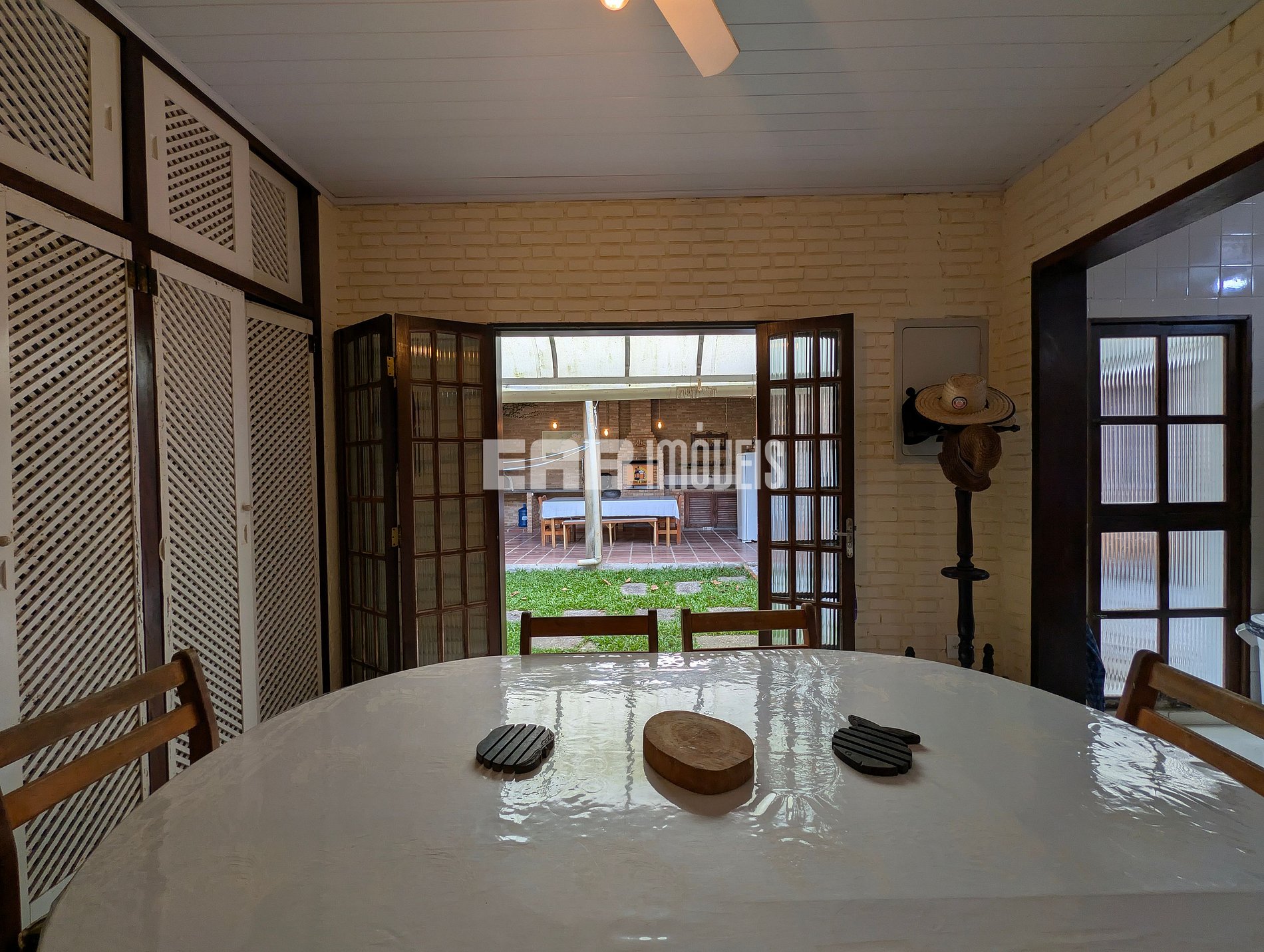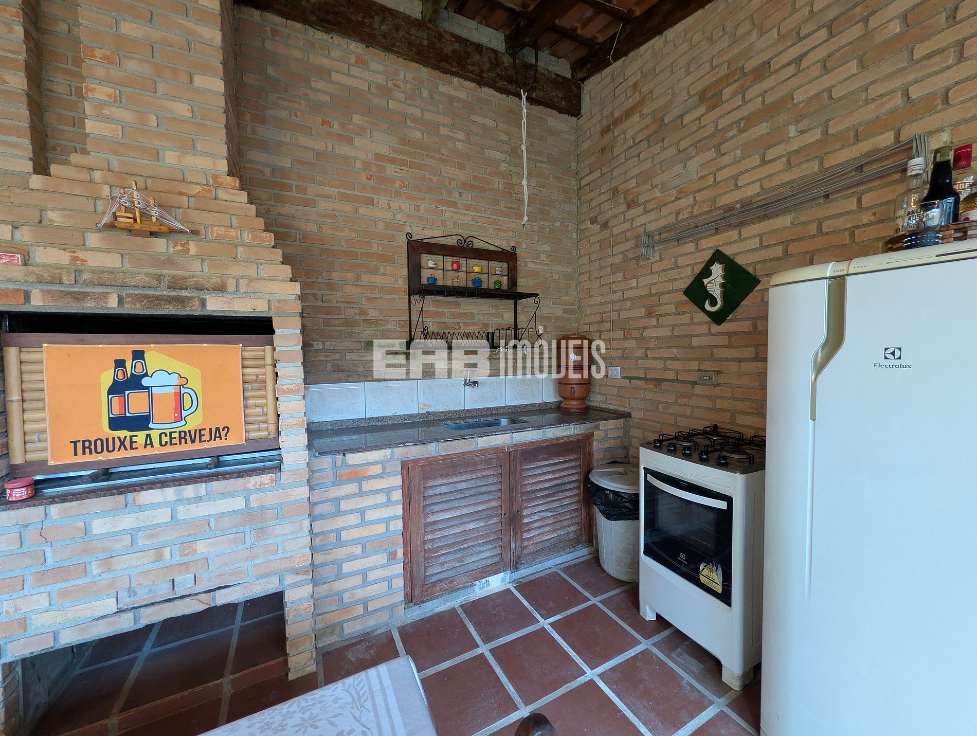 A casa conta com 3 dormitórios, sendo 2 suítes, a cozinha é equipada e a área gourmet convida para bons momentos, com churrasqueira e forno de pizza. Ideal para reunir todos após um dia de praia.